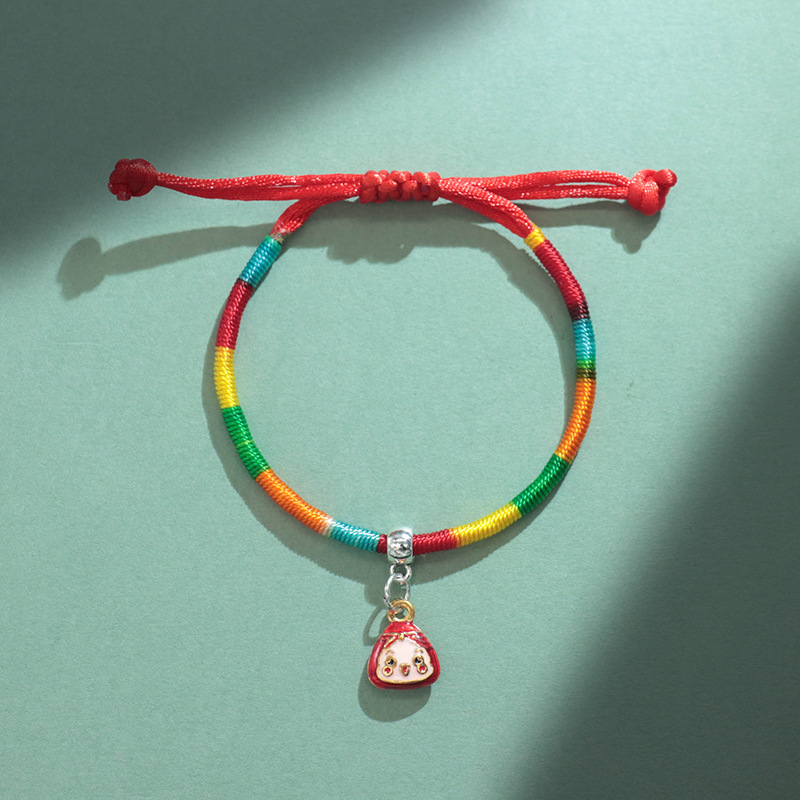 端午节五彩绳手链成人批发手工编织儿童宝宝老虎头小粽子五彩手绳