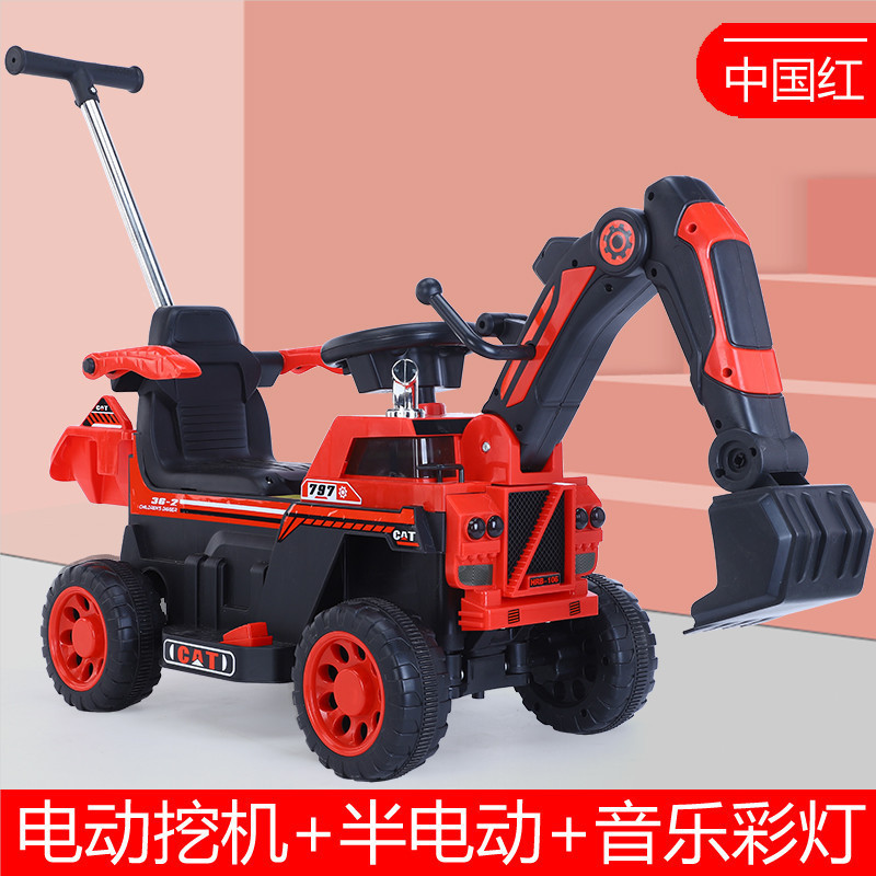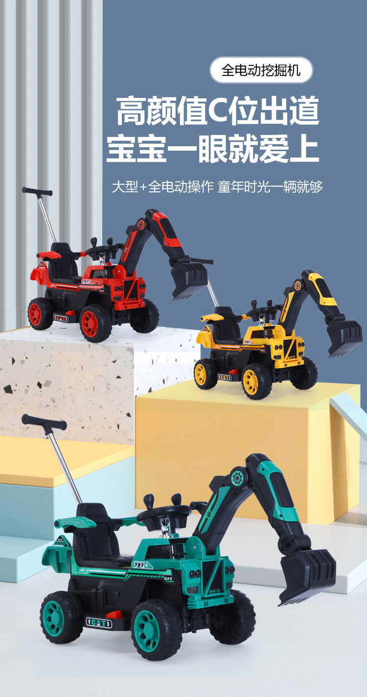 卡酷玩大号儿童电动挖掘机可坐人男孩遥控挖土机工程车充电玩具车