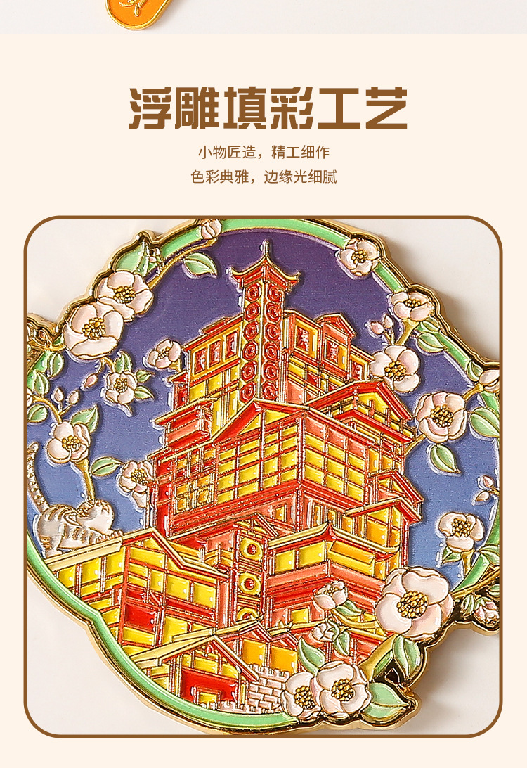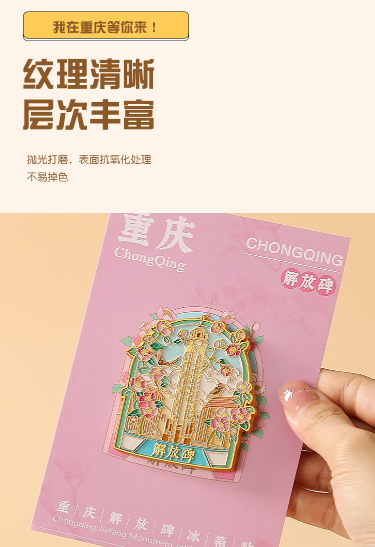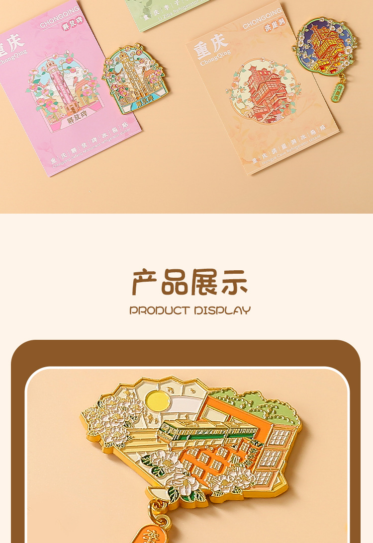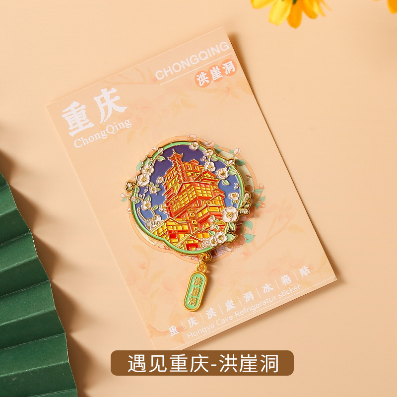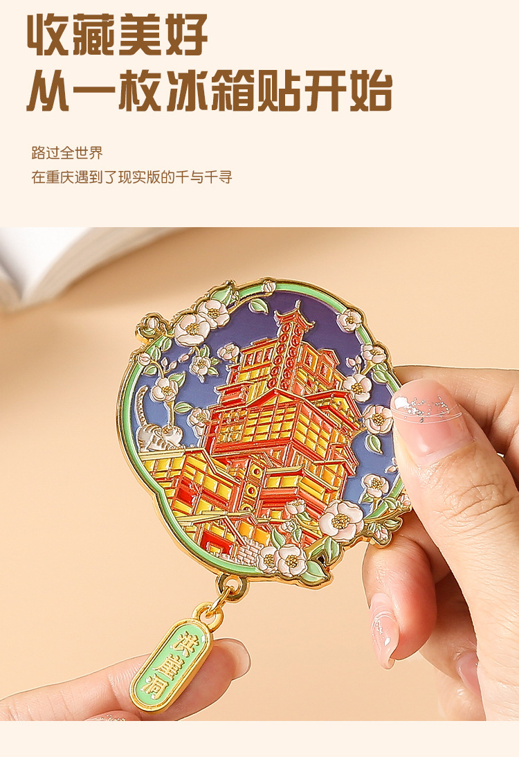 重庆金属冰箱贴国潮旅游文创纪念品重庆地标景区烤漆珐琅彩冰箱贴