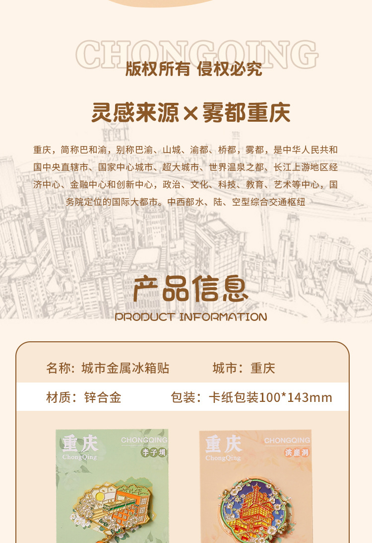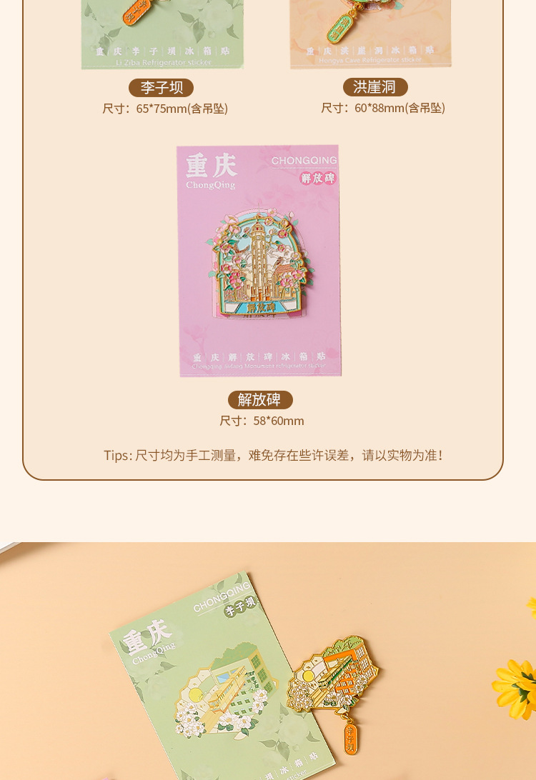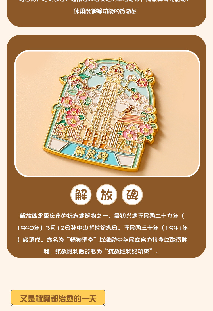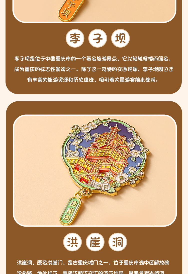 重庆金属冰箱贴国潮旅游文创纪念品重庆地标景区烤漆珐琅彩冰箱贴