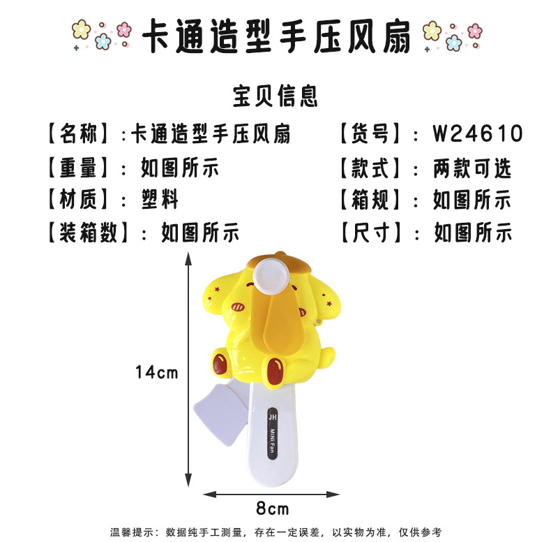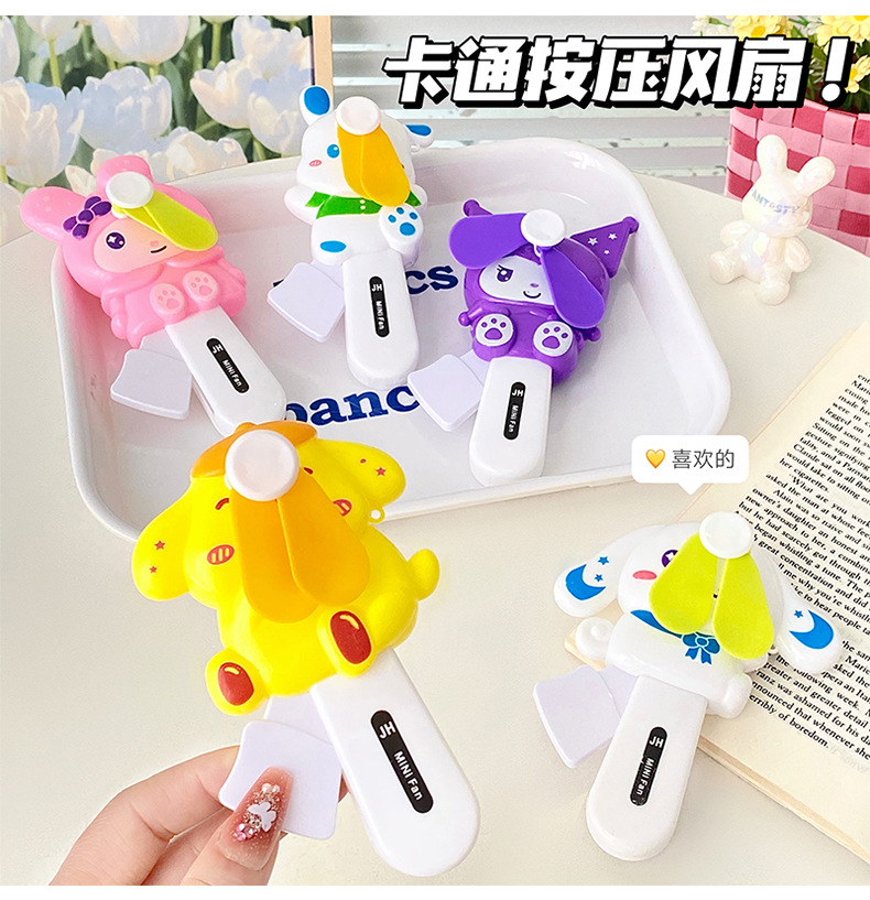 新款卡通手压风扇 夏季便携小风扇地推热销款卡通迷你小风扇批发