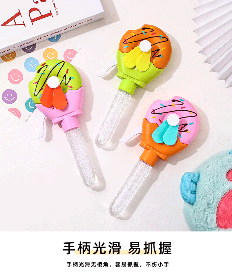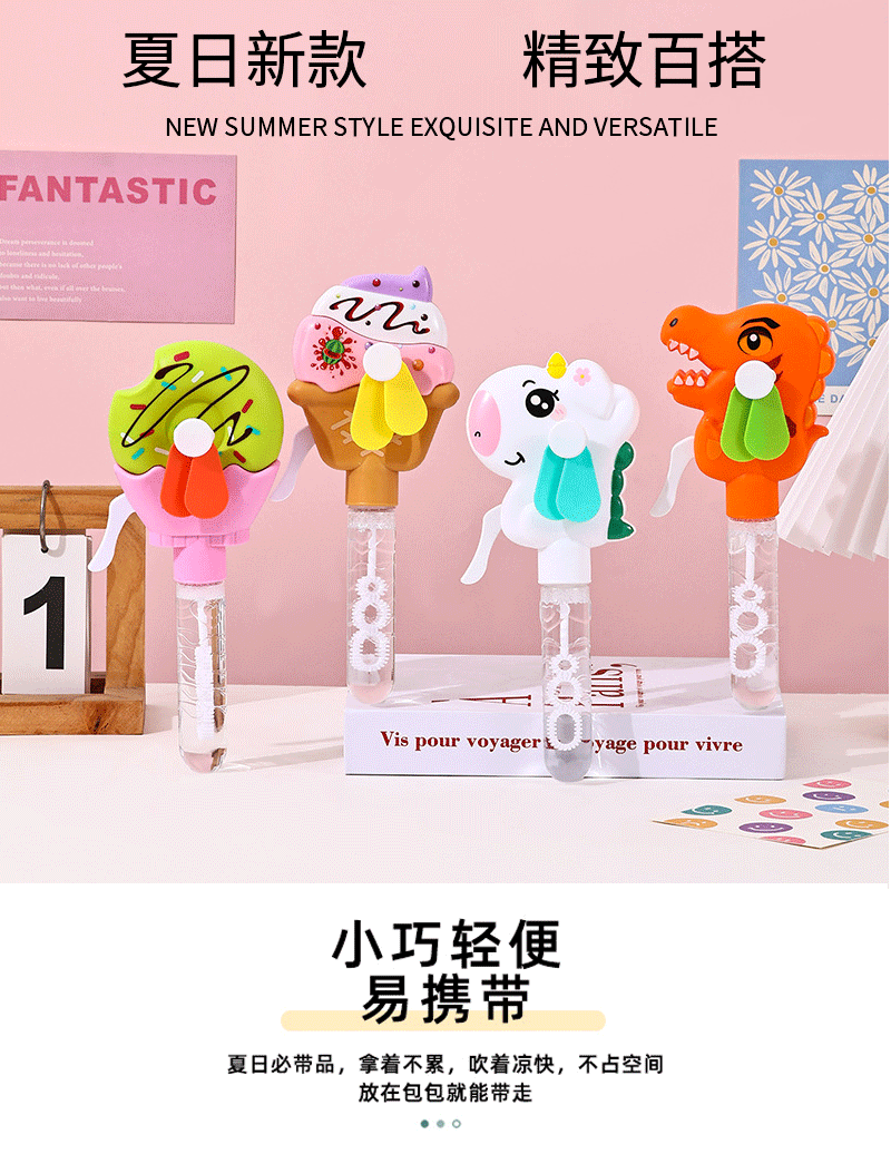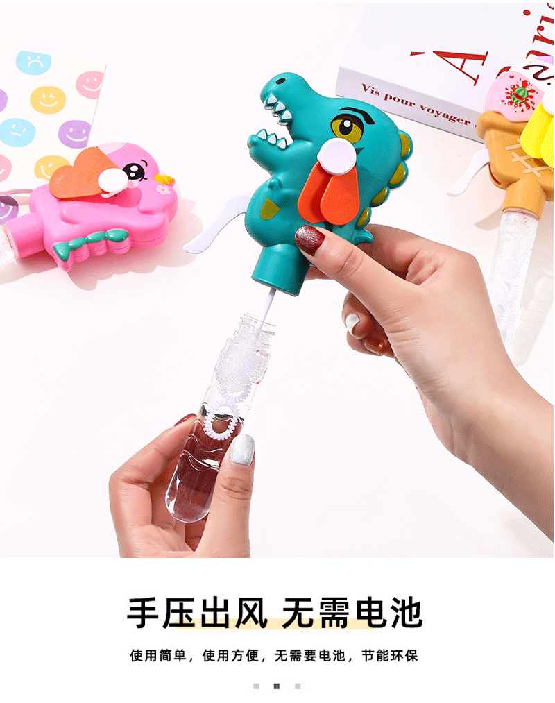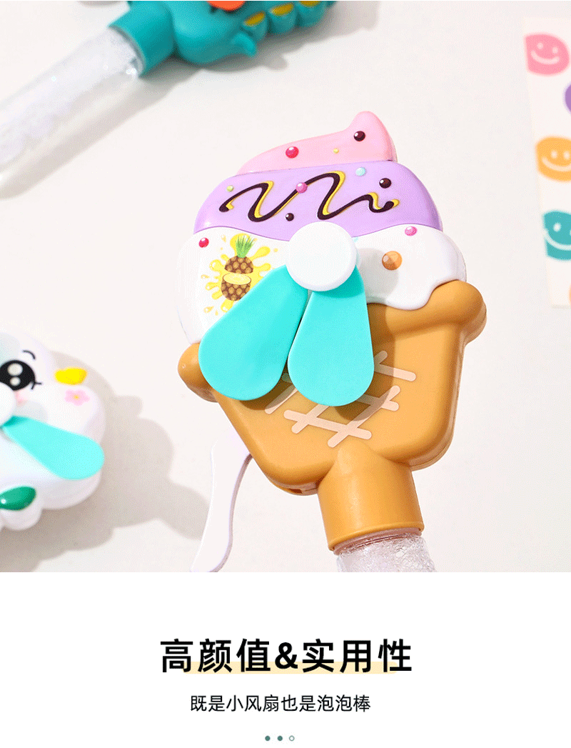 夏季卡通手压风扇泡泡玩具大号可爱动物冰激凌泡泡棒风扇礼品批发