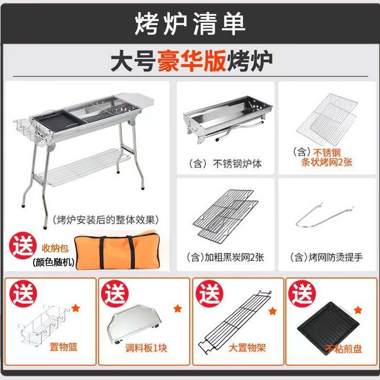 野外露营烧烤架折叠烧烤炉不锈钢烤肉炉子淄博火炉bbq烧烤炉子