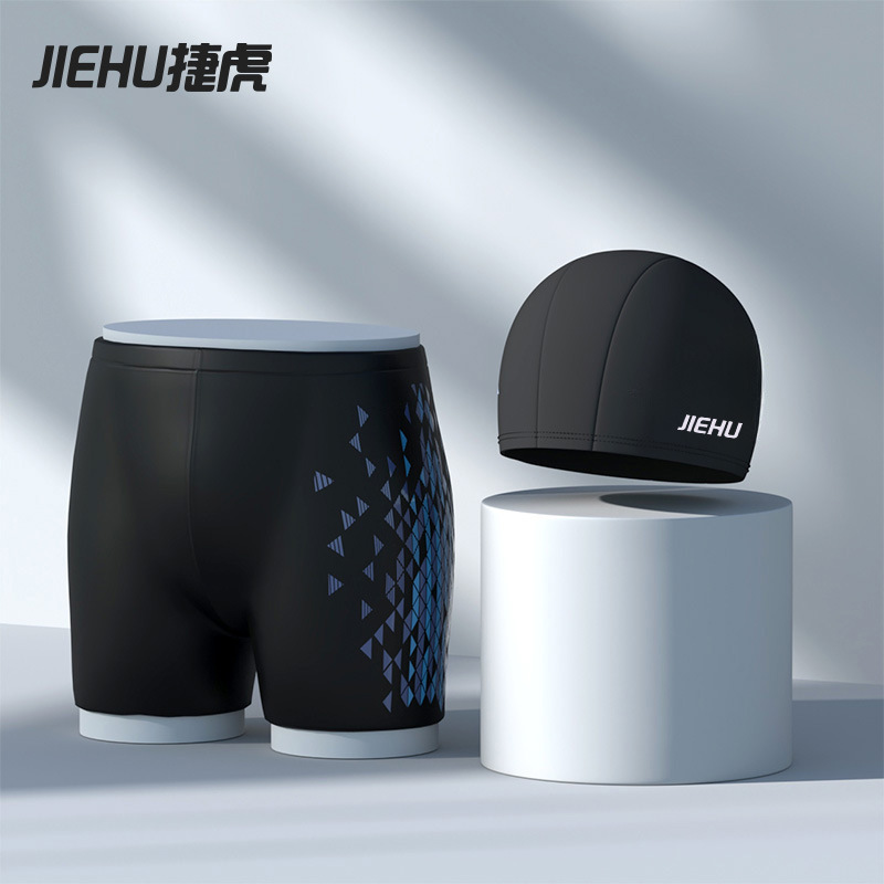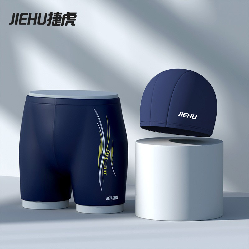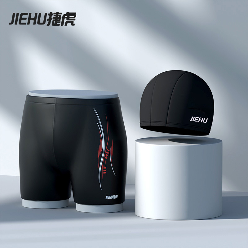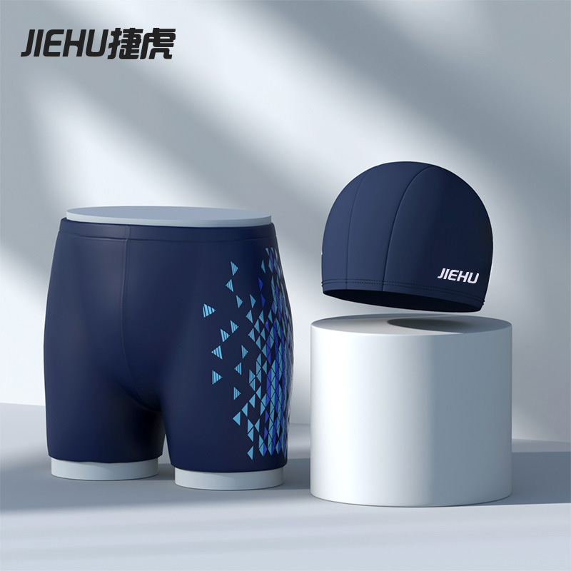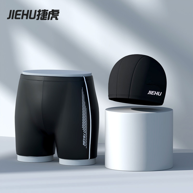 男士泳裤泳帽平角泳裤男防尴尬速干泳裤游泳裤两件套沙滩裤游泳帽