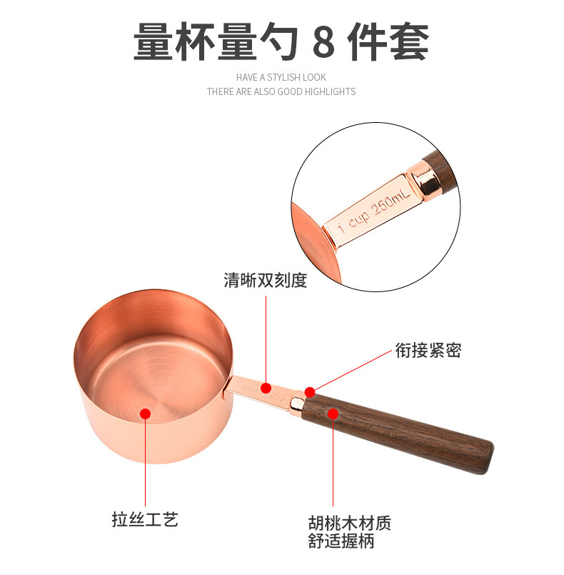 | rose gold measuring cup measuring spoon eight-piece set# b(玫瑰金量杯量勺八件套#B) | USD $9.96 | 900 piece available |