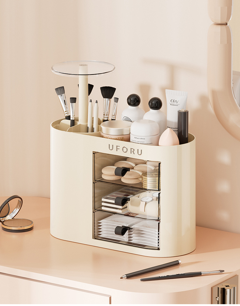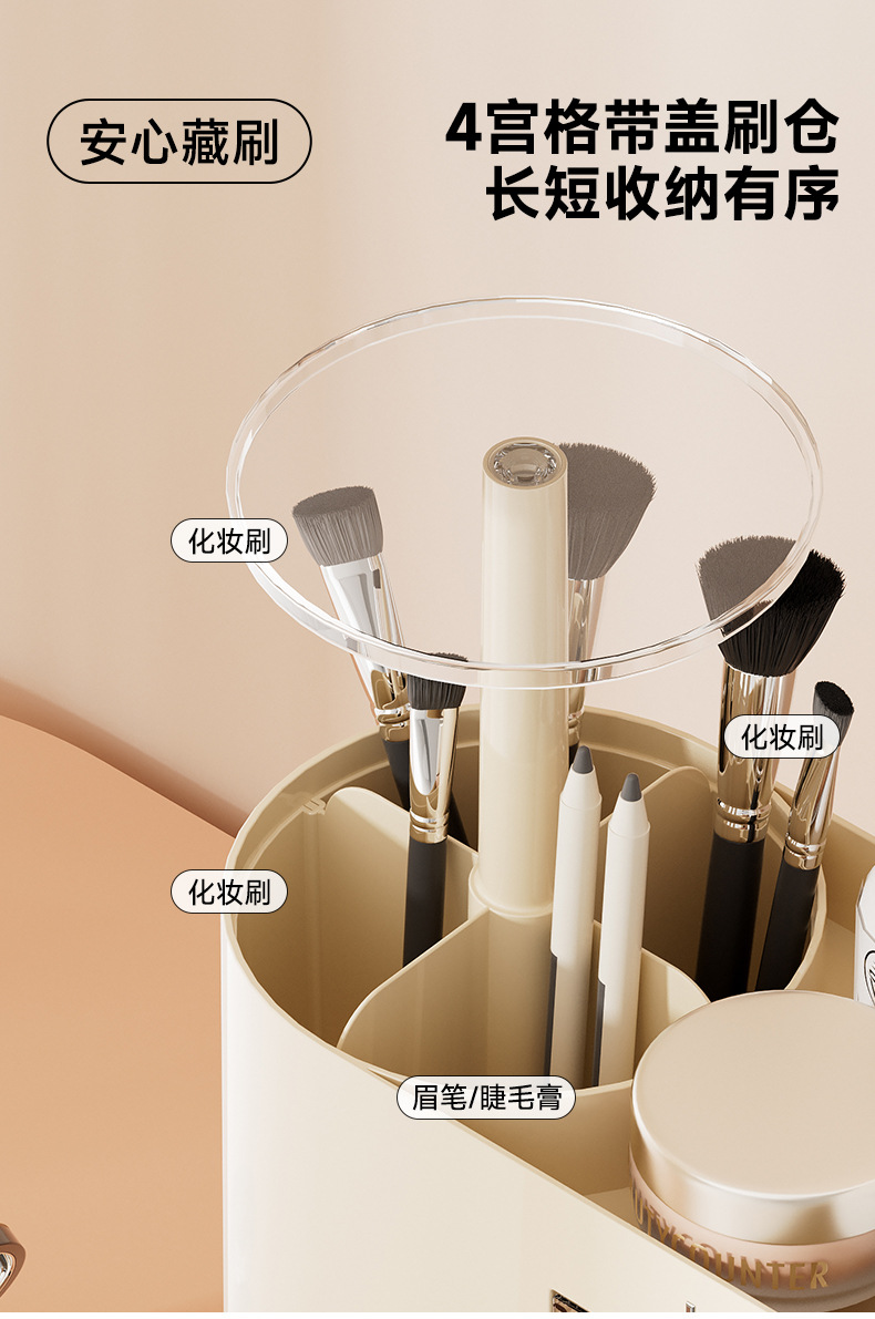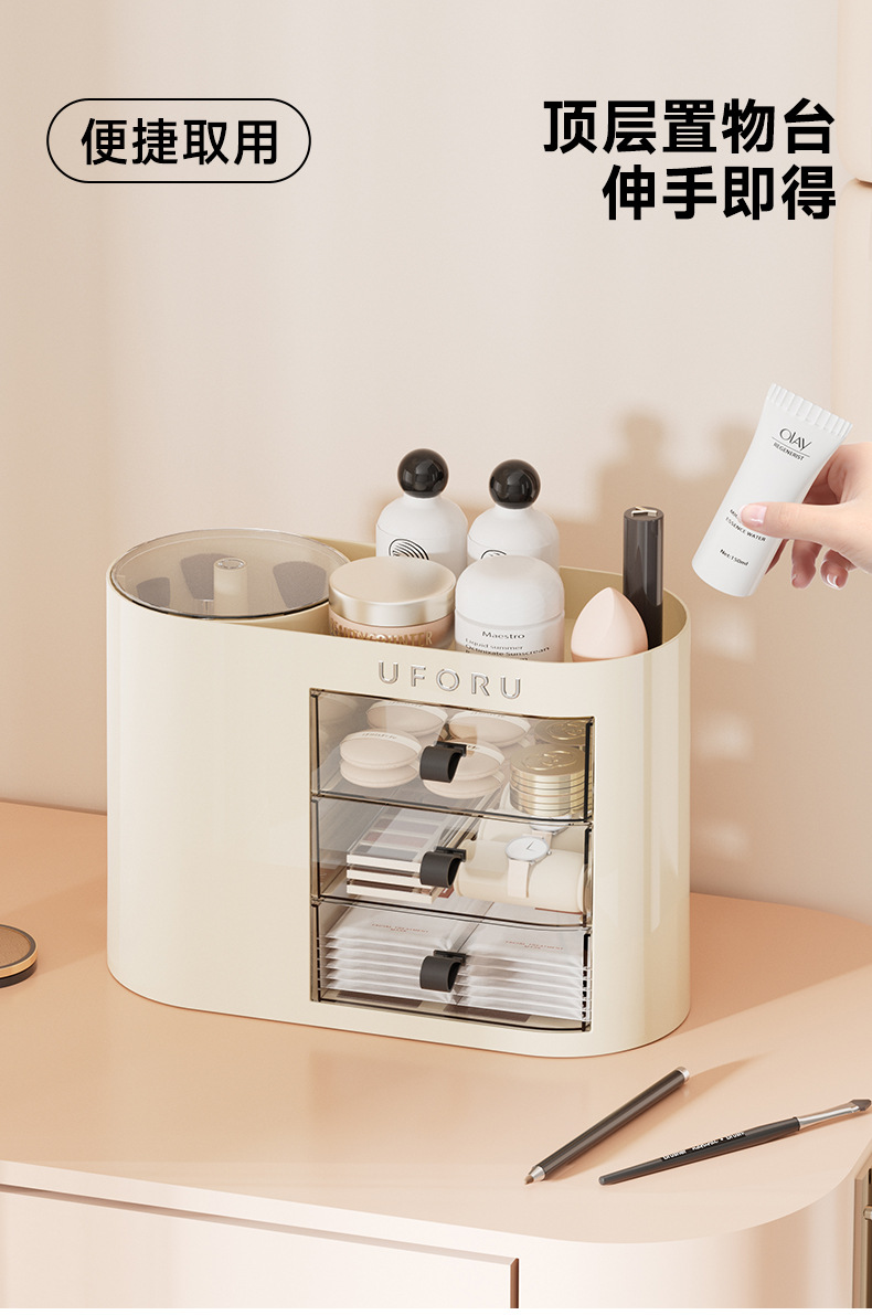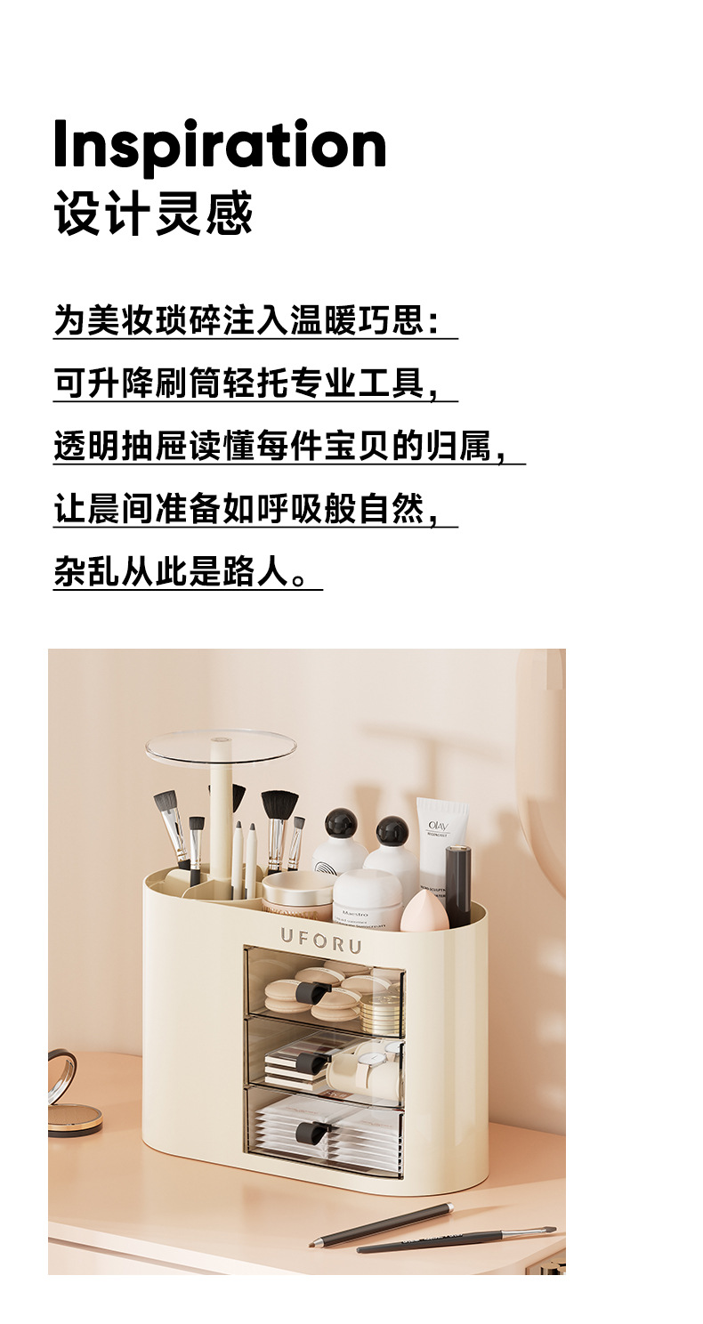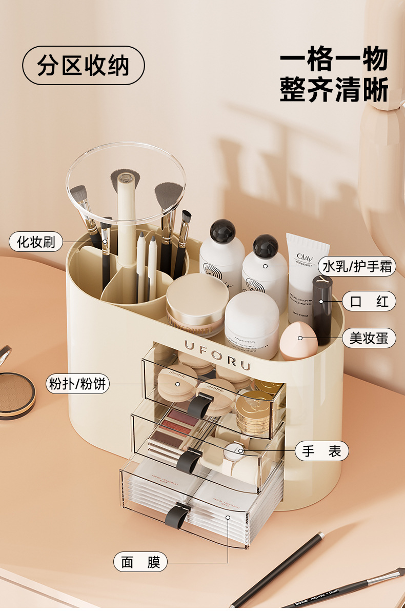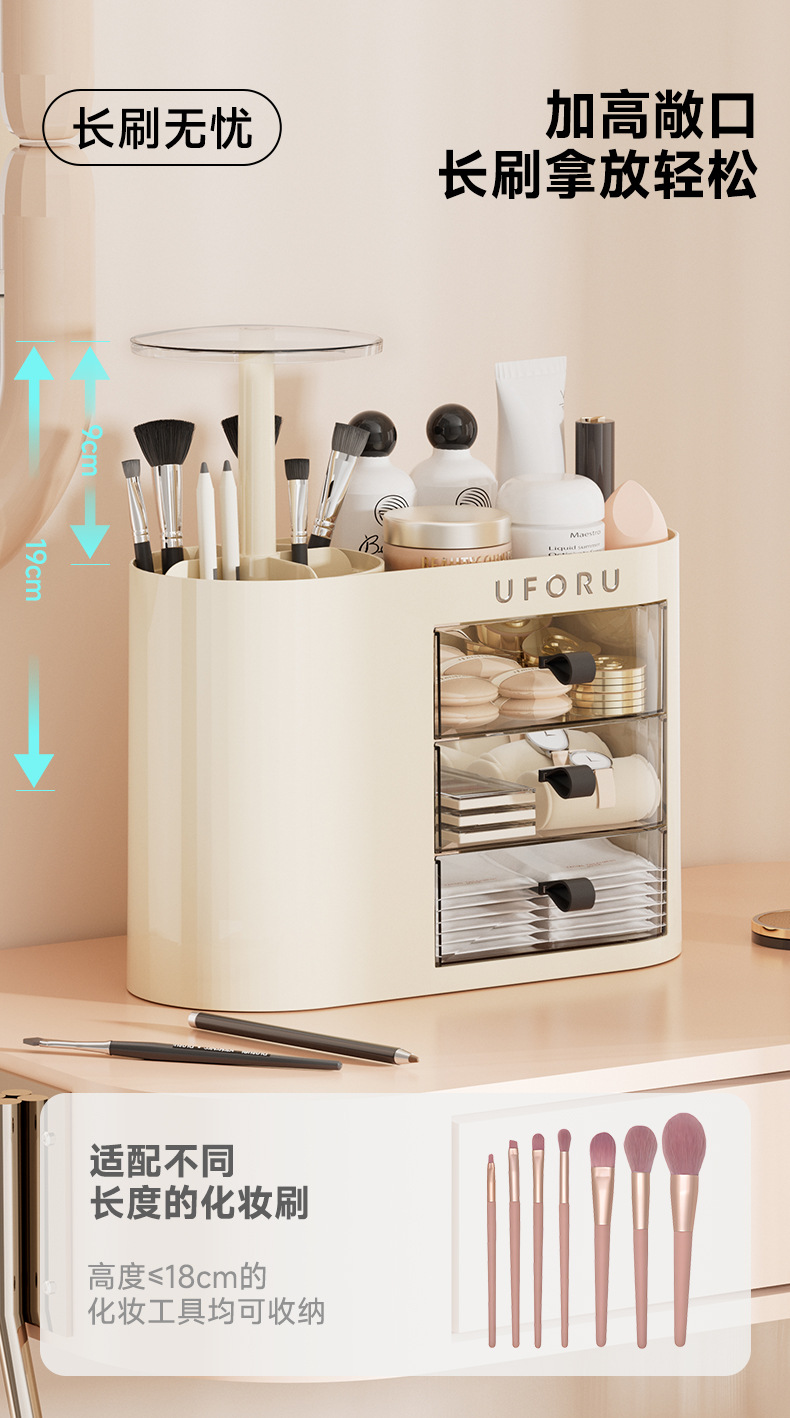 多功能化妆品收纳盒家用梳妆台高级感大容量按压升降化妆刷收纳桶