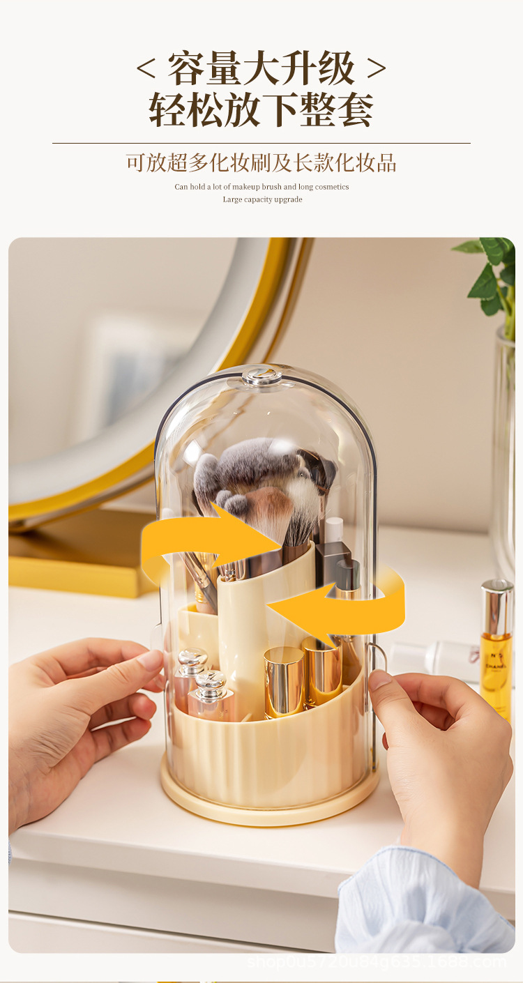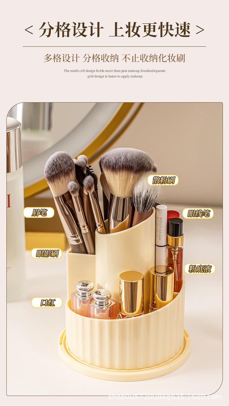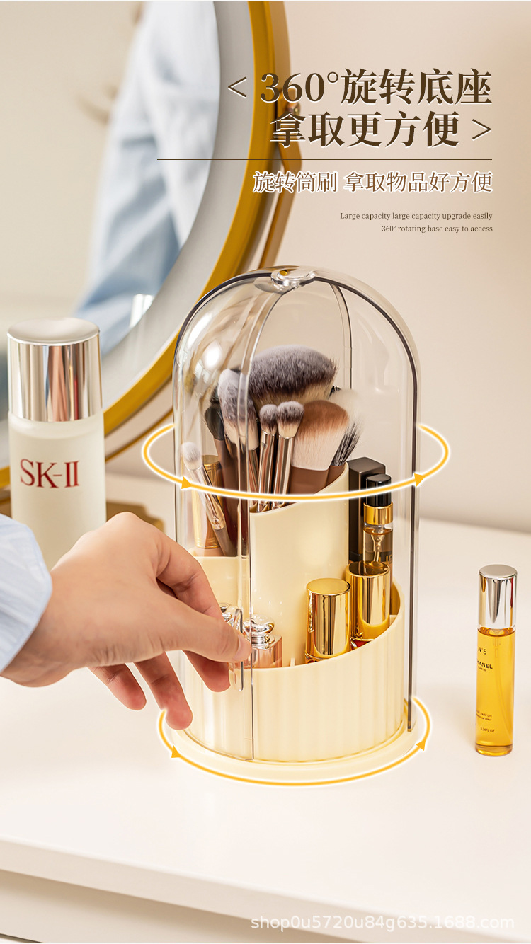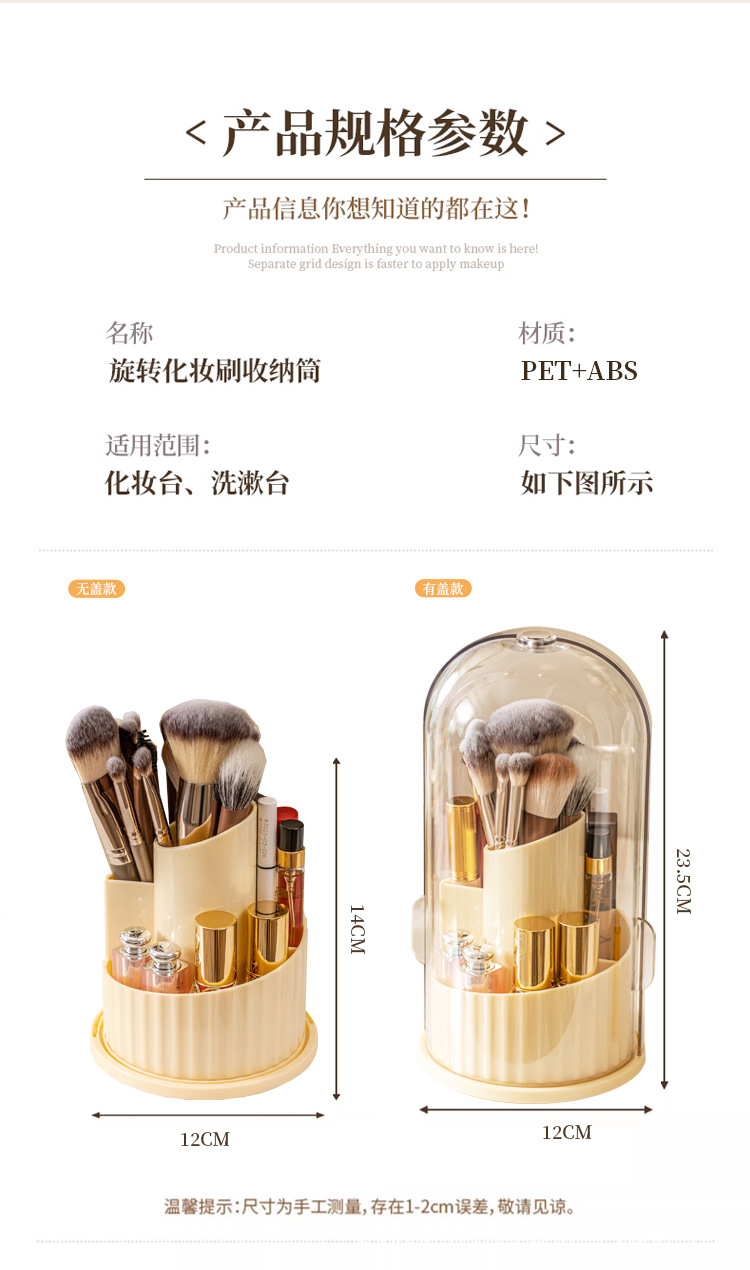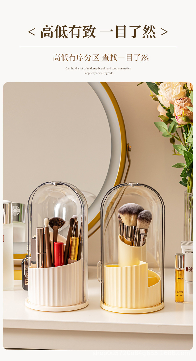 桌面收纳盒防尘口红眼影置物架笔筒旋转化妆品归纳盒收纳桶高级感