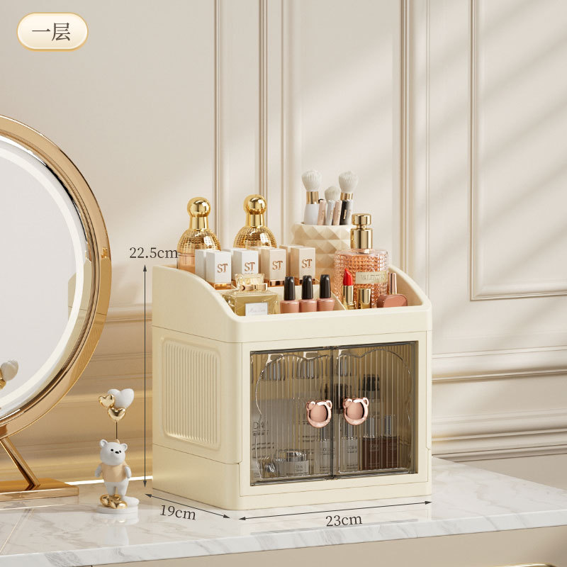 高级感桌面收纳盒折叠多层整理盒子口红化妆品收纳盒护肤品储物柜