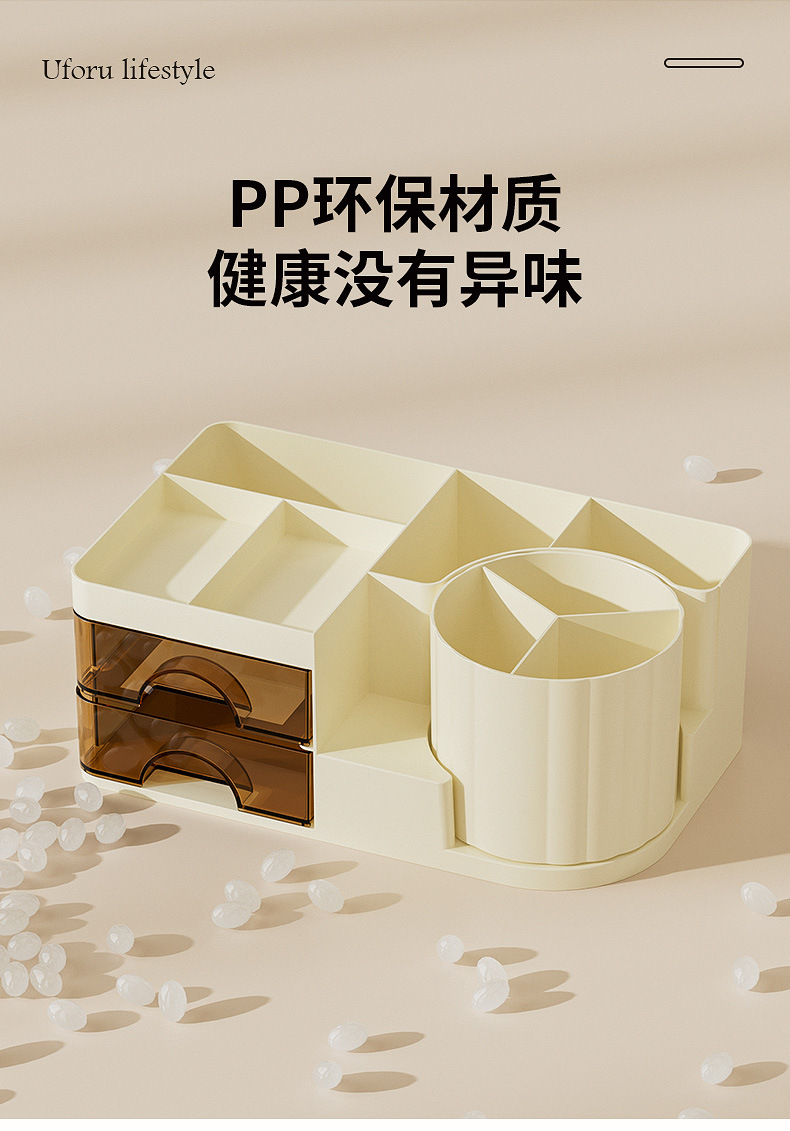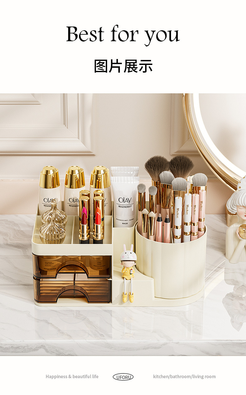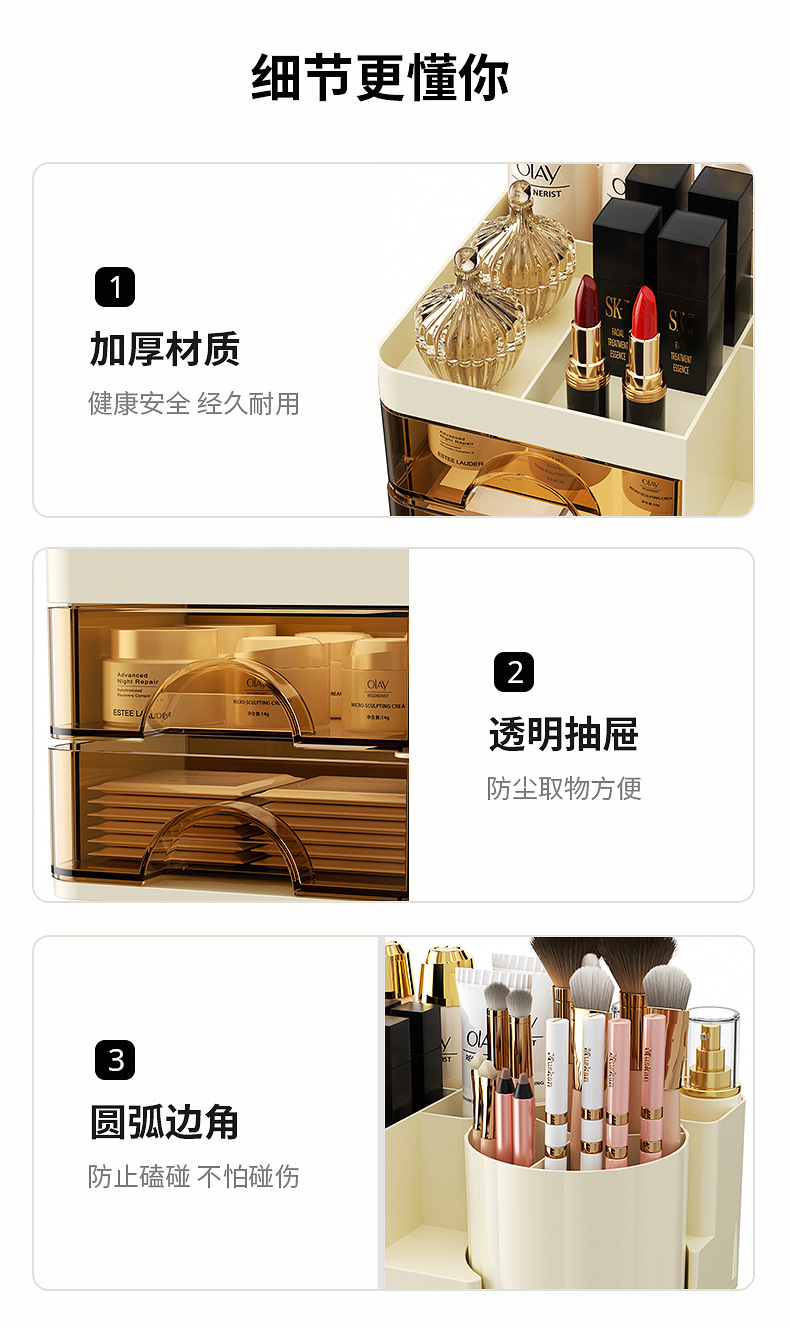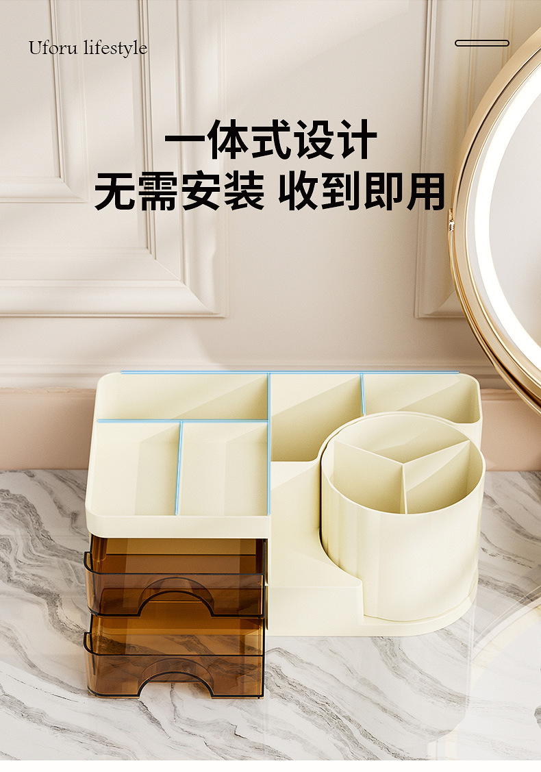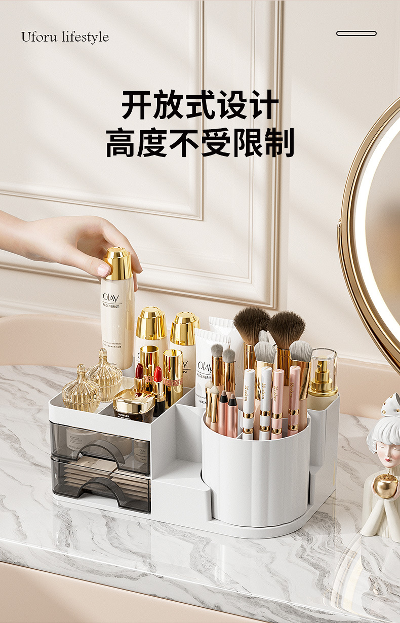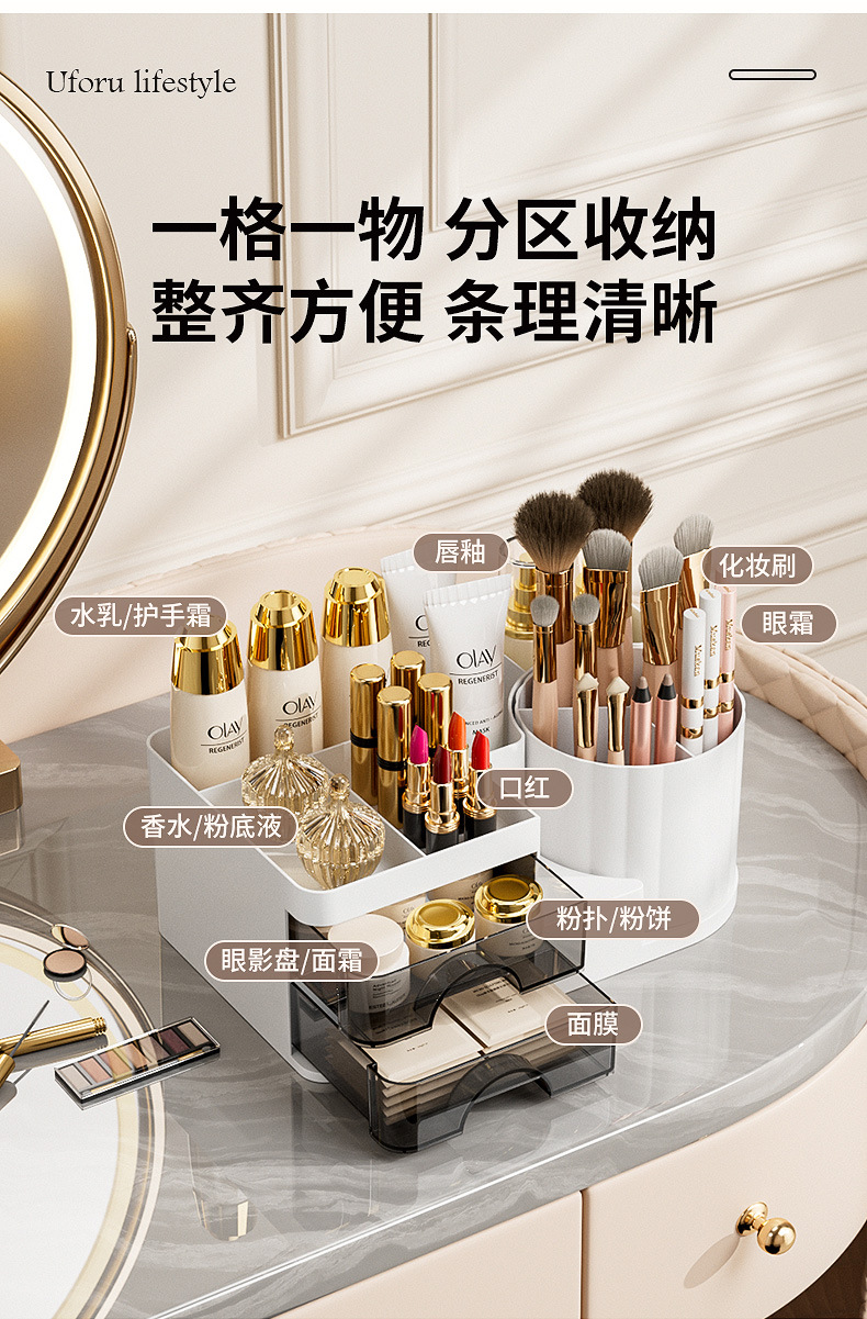妆品收纳盒桌面高级感ins风梳妆台眼影化妆刷桶口红置物架旋转