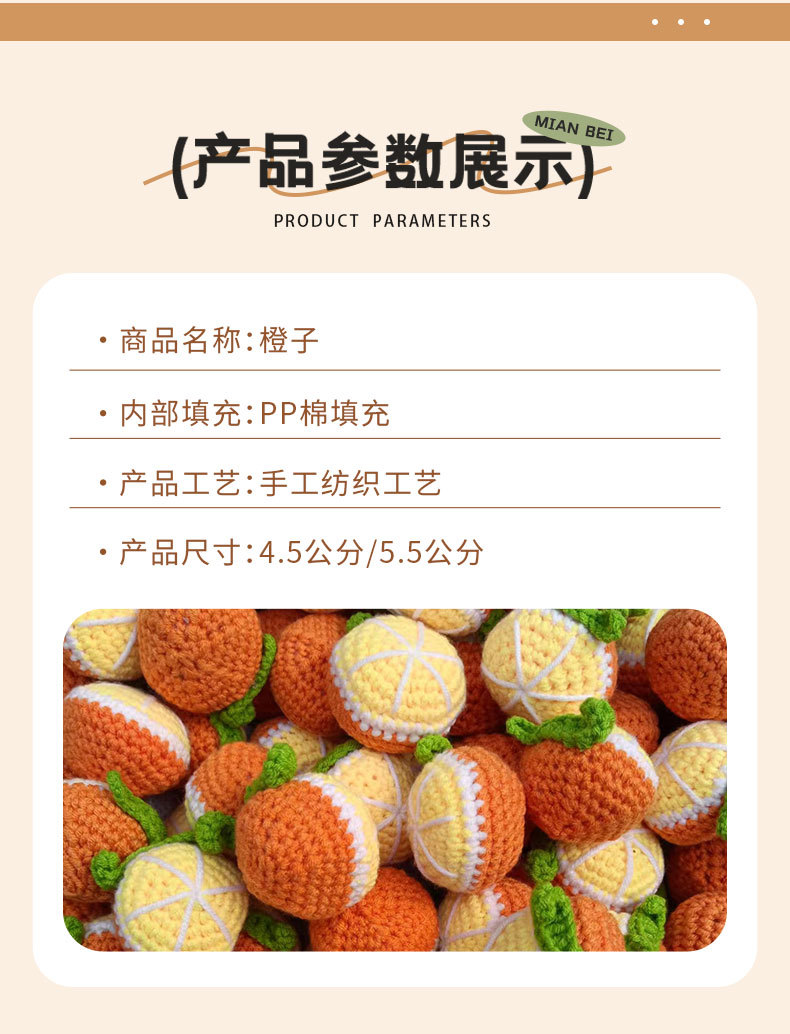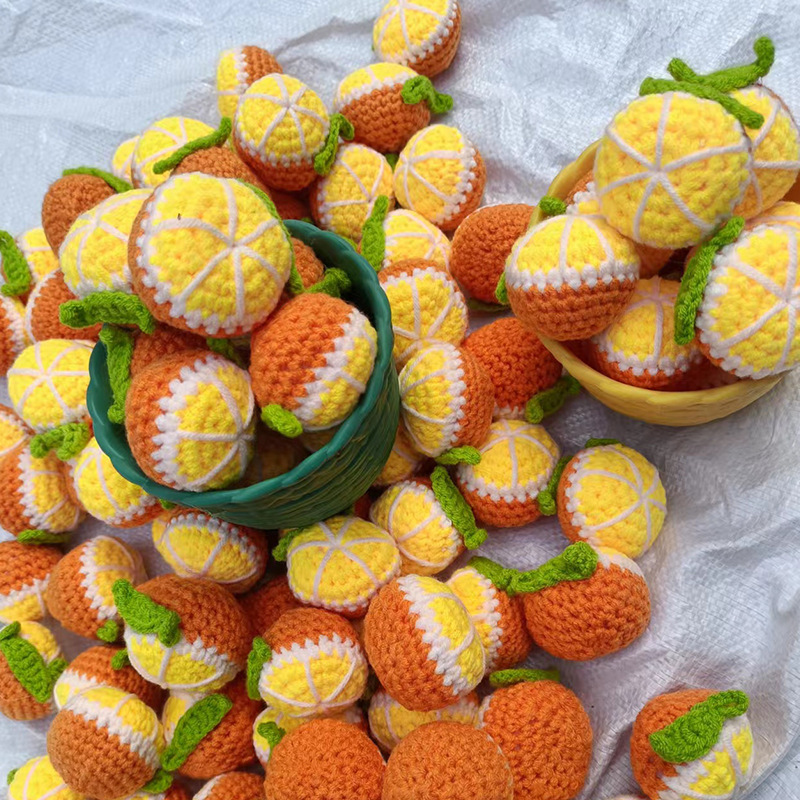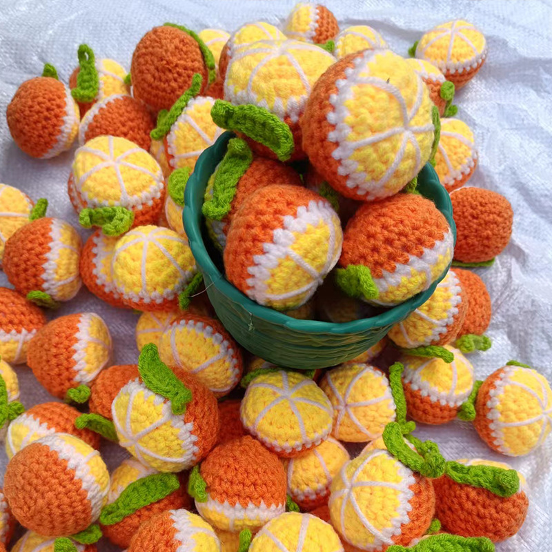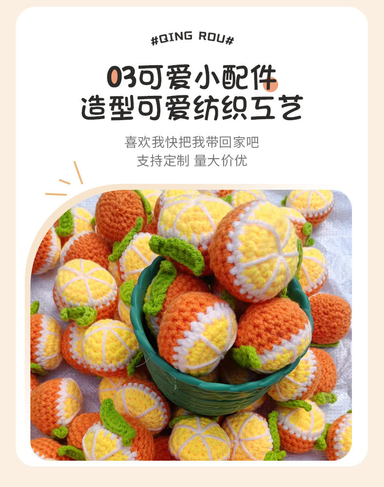 厂家手钩橙子毛线花橘子水果钩织花挂件花束包装 情人节闺蜜礼物