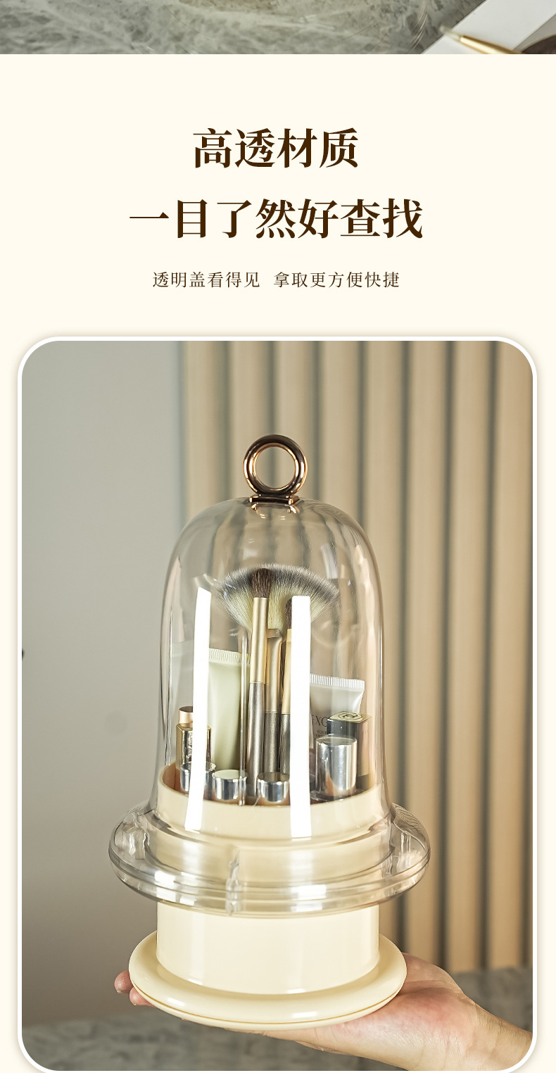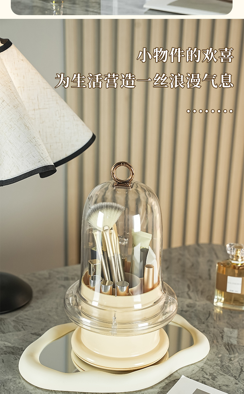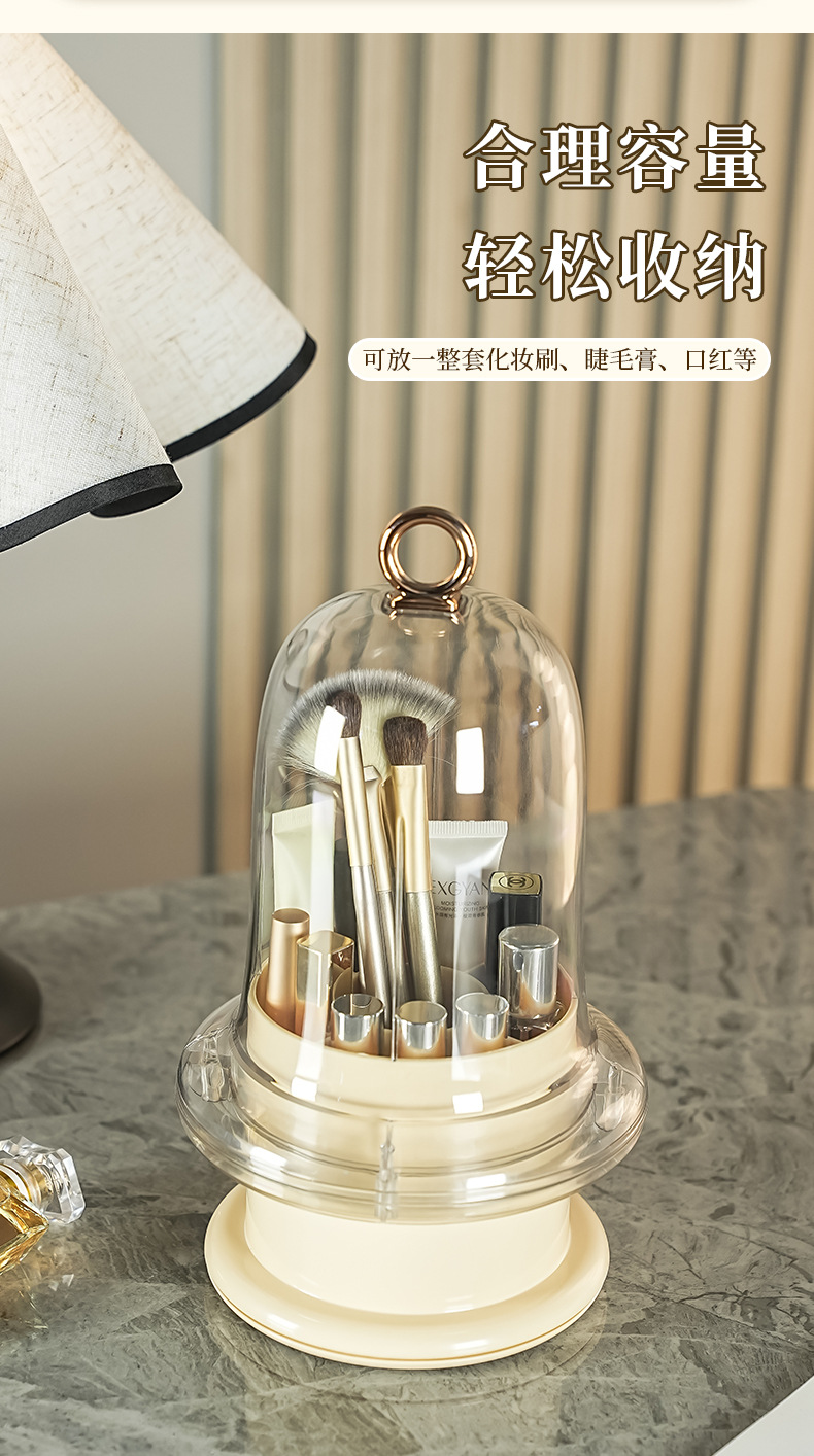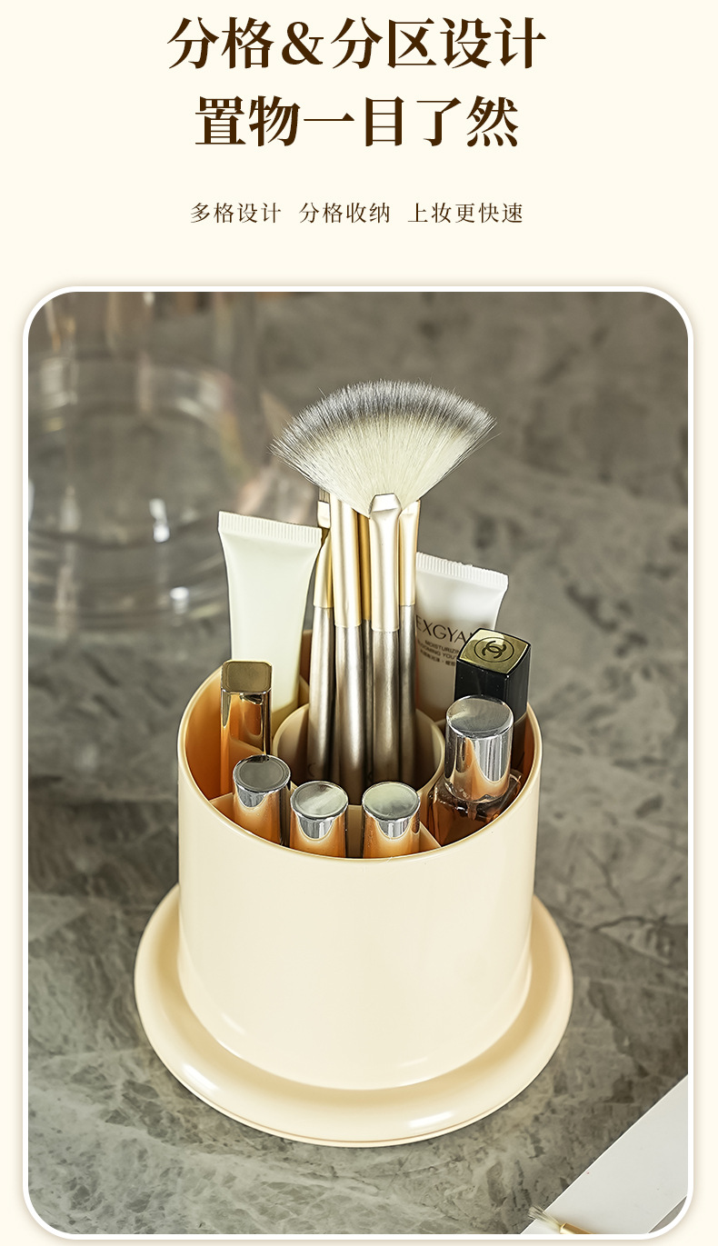 梳妆台口红置物架高级感化妆品收纳盒可旋转防尘桌面化妆刷收纳筒