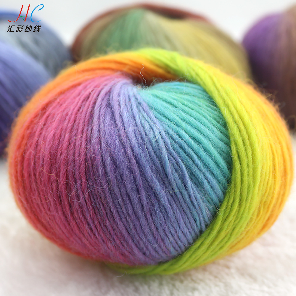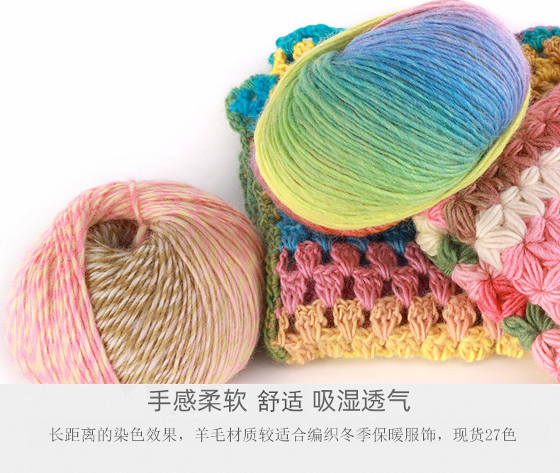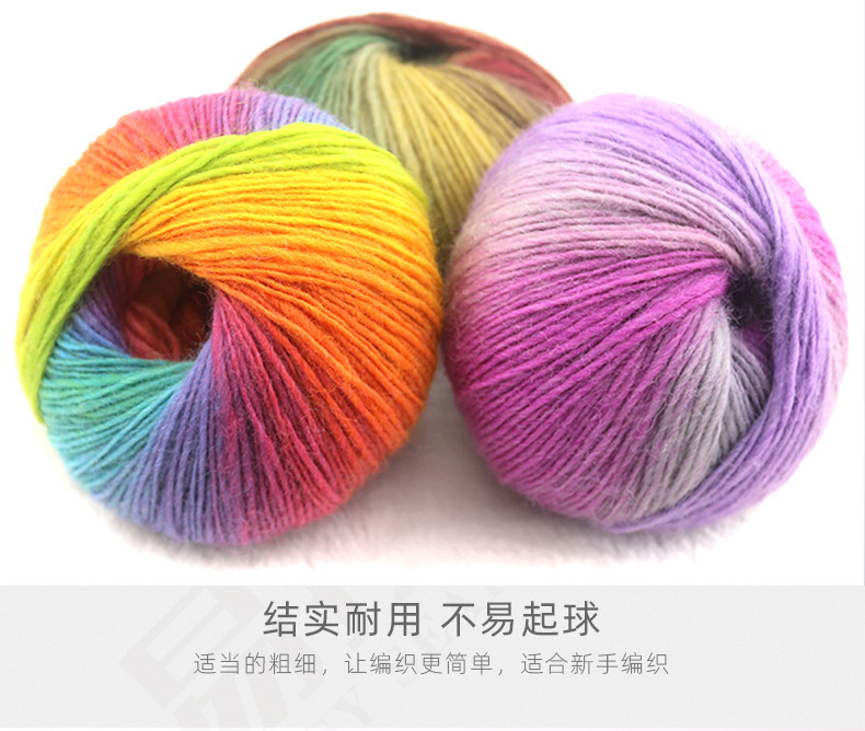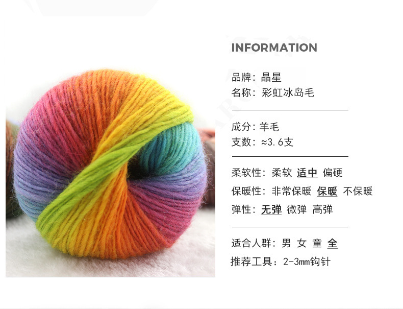 彩虹羊毛线段染冰岛羊毛线手编DIY围巾帽子披肩彩虹中粗羊毛线团