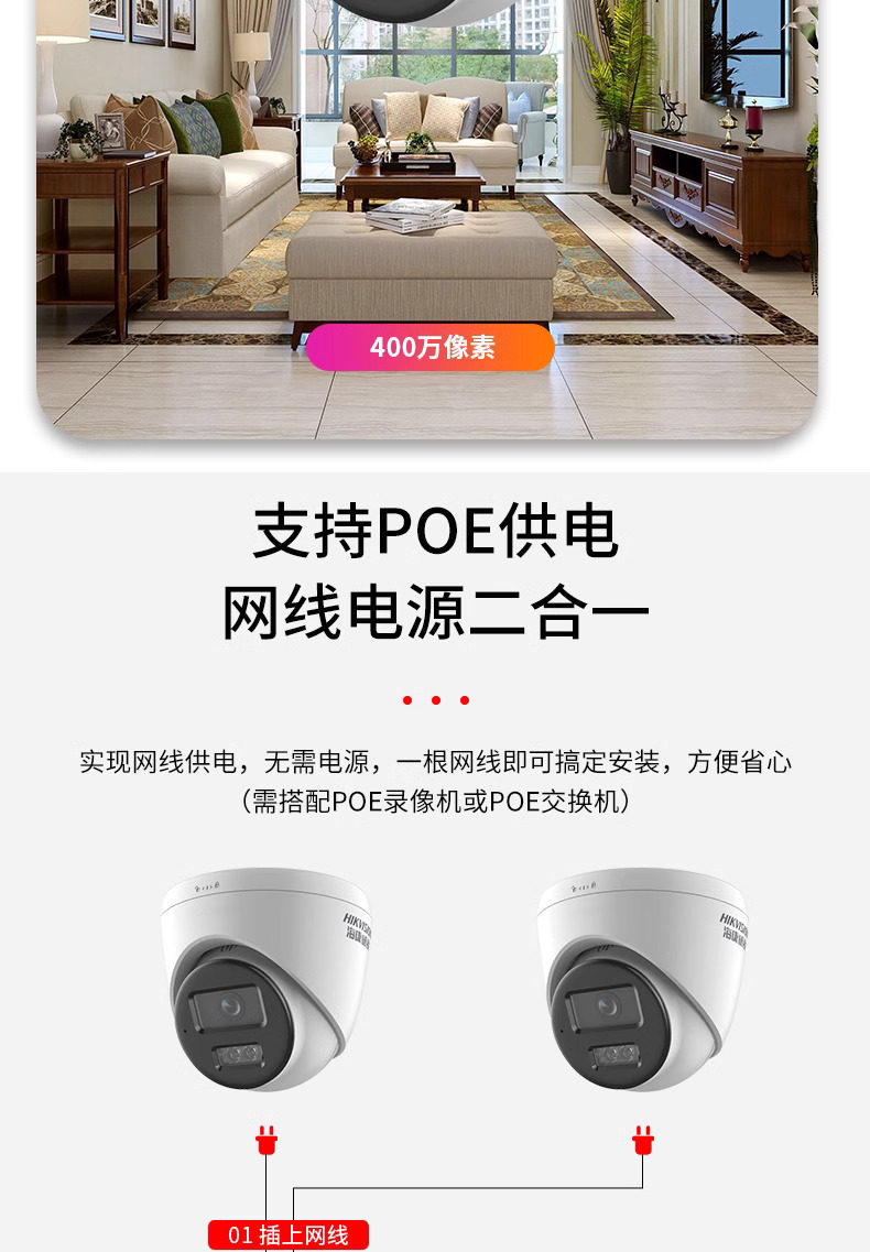 | 网线连接*400万*双光夜视*2.8*NVR硬盘存储*POE供电 | USD $39.54 | 29 table available |