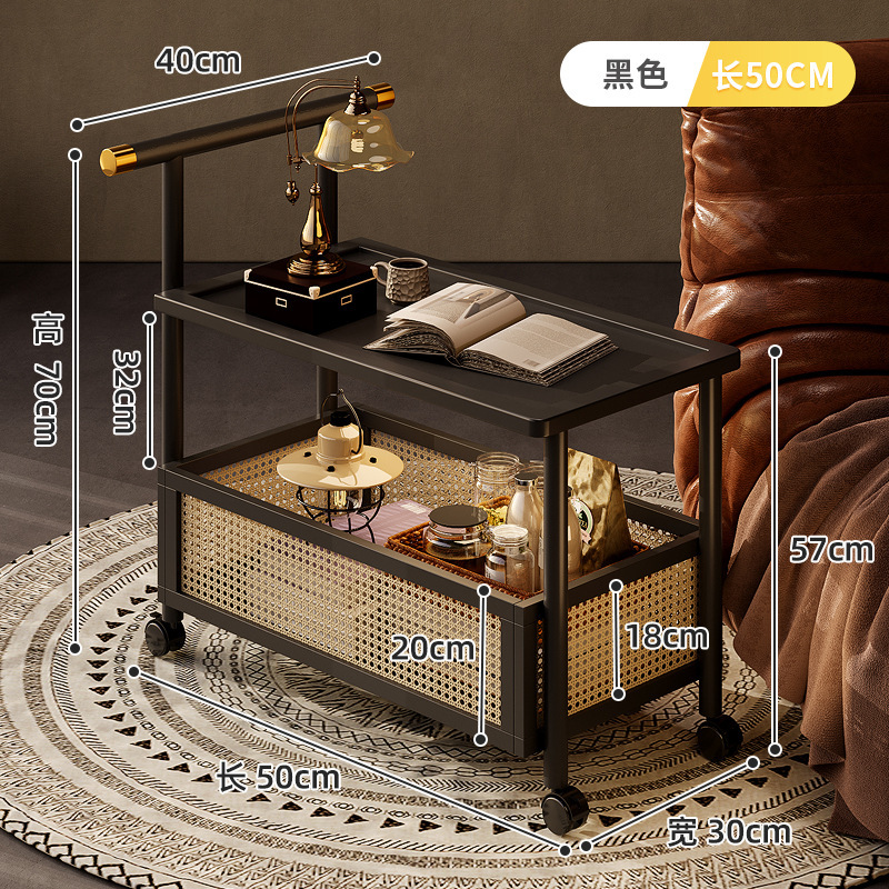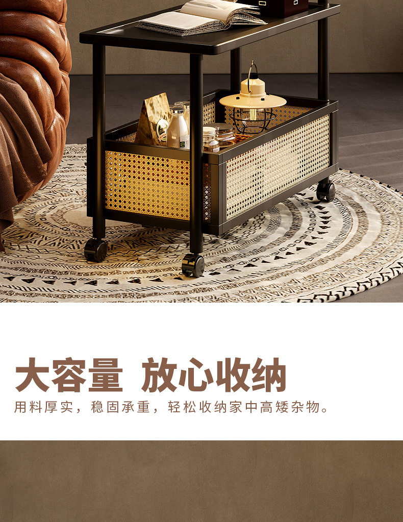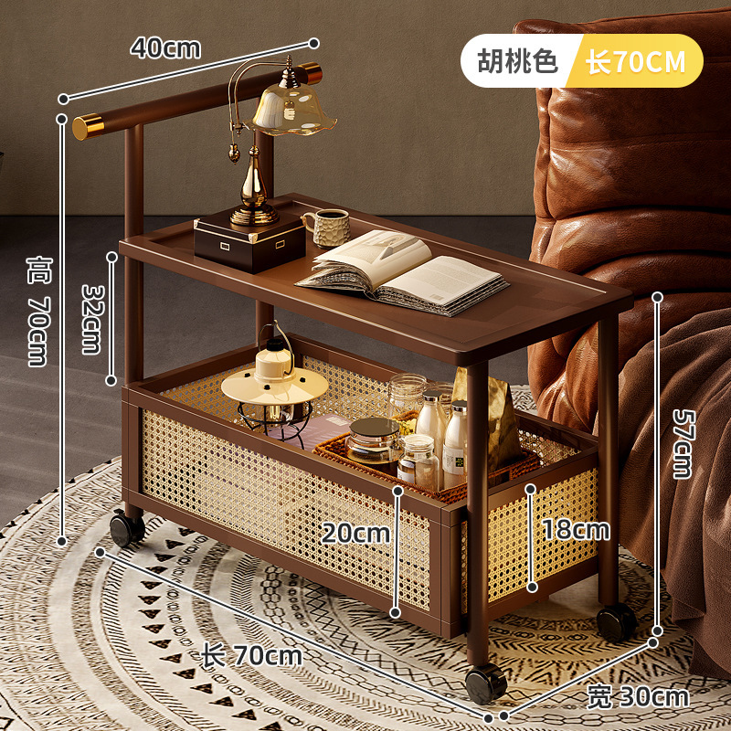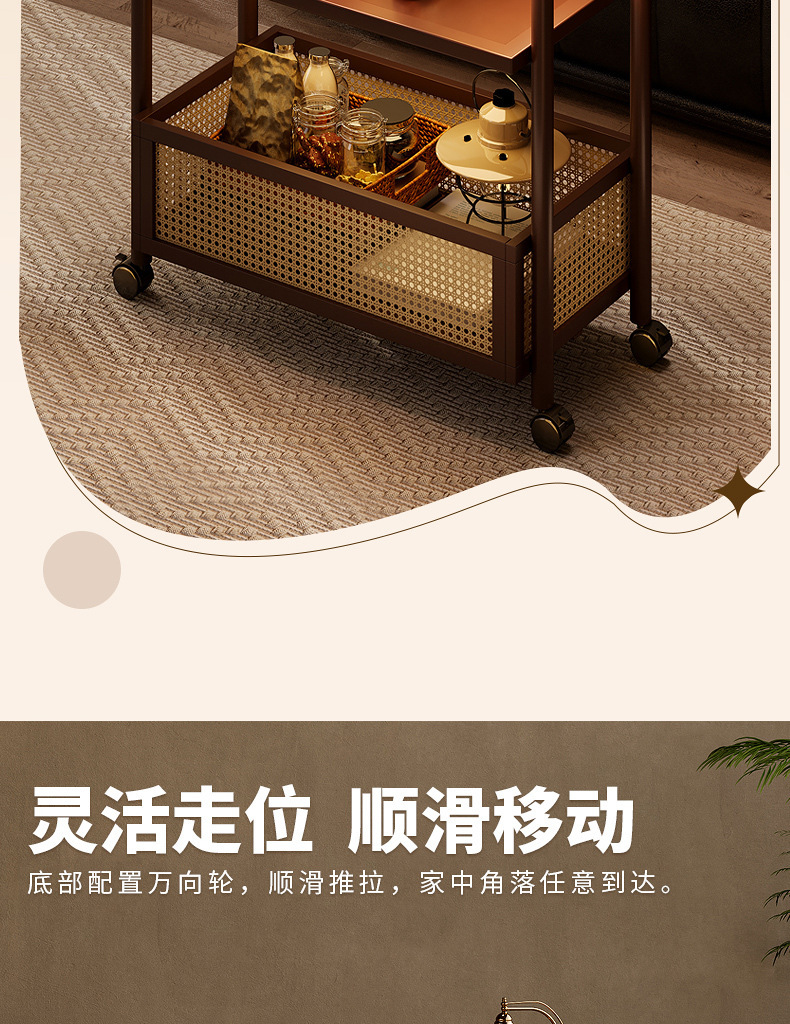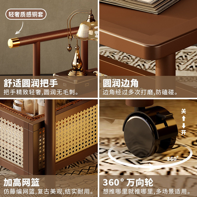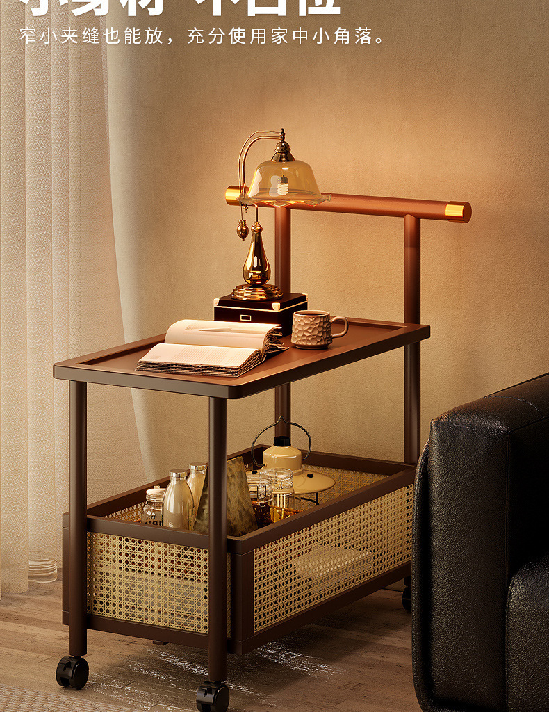高级感中古风茶几沙发边几移动茶几小推边桌茶边几客厅实木小推车