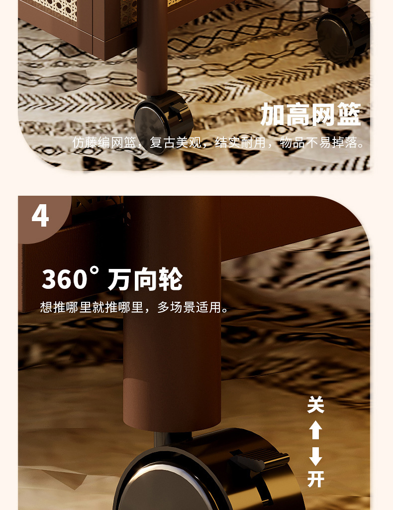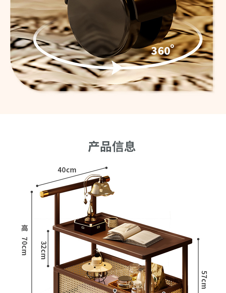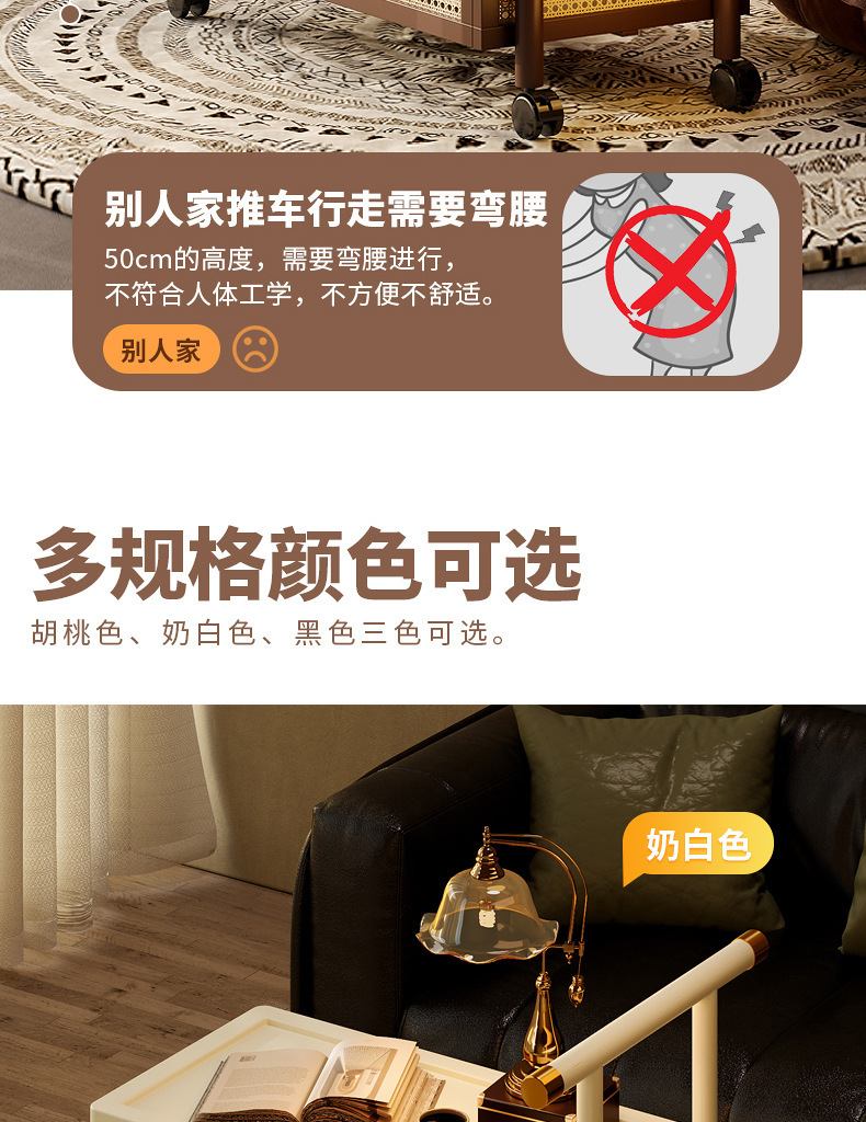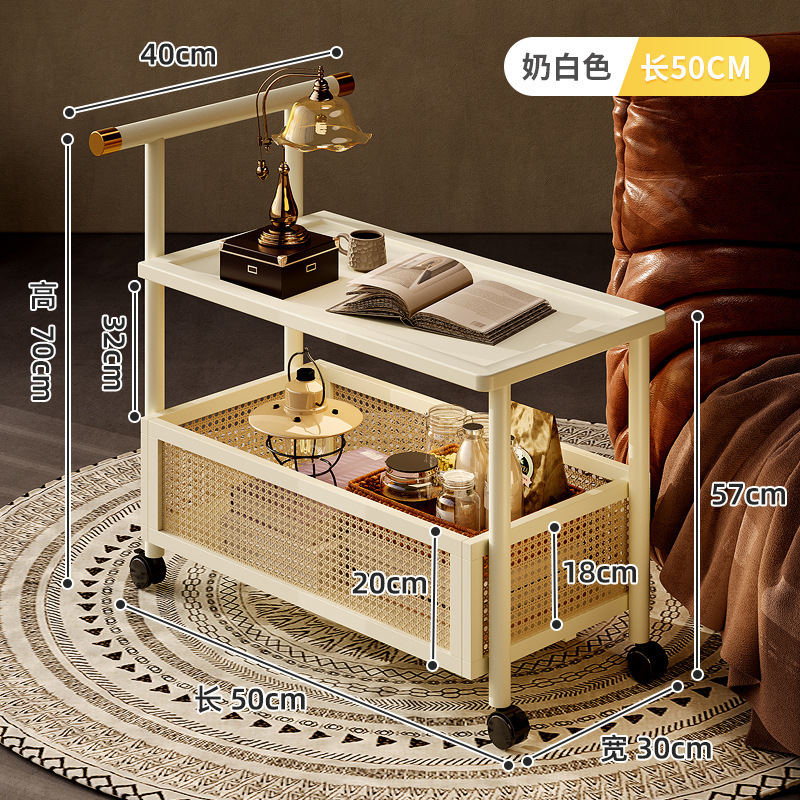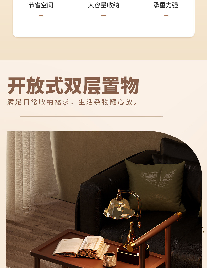高级感中古风茶几沙发边几移动茶几小推边桌茶边几客厅实木小推车
