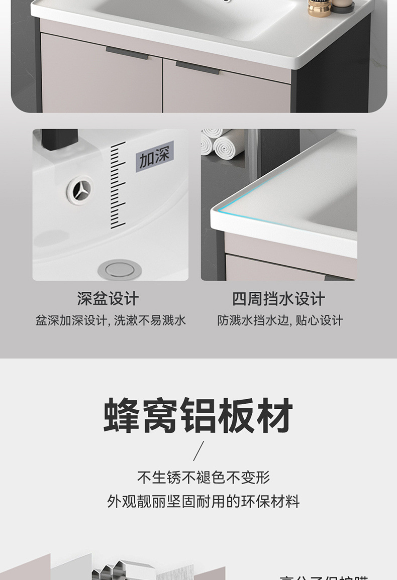 加厚蜂窝太空铝浴室柜组合卫生间洗手盆一体陶瓷洗脸池洗漱台跨境