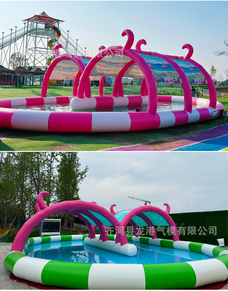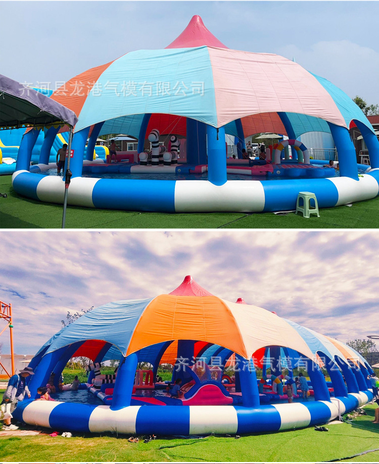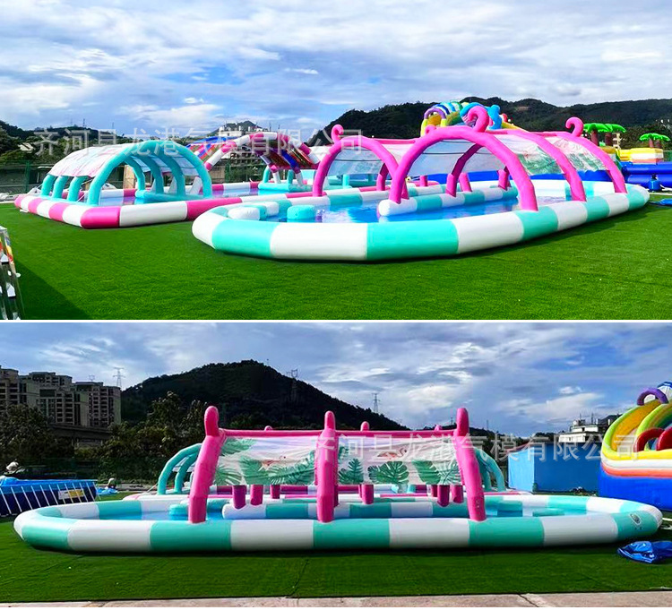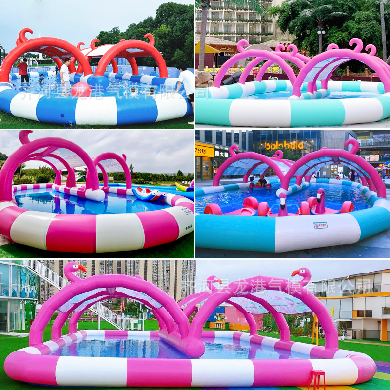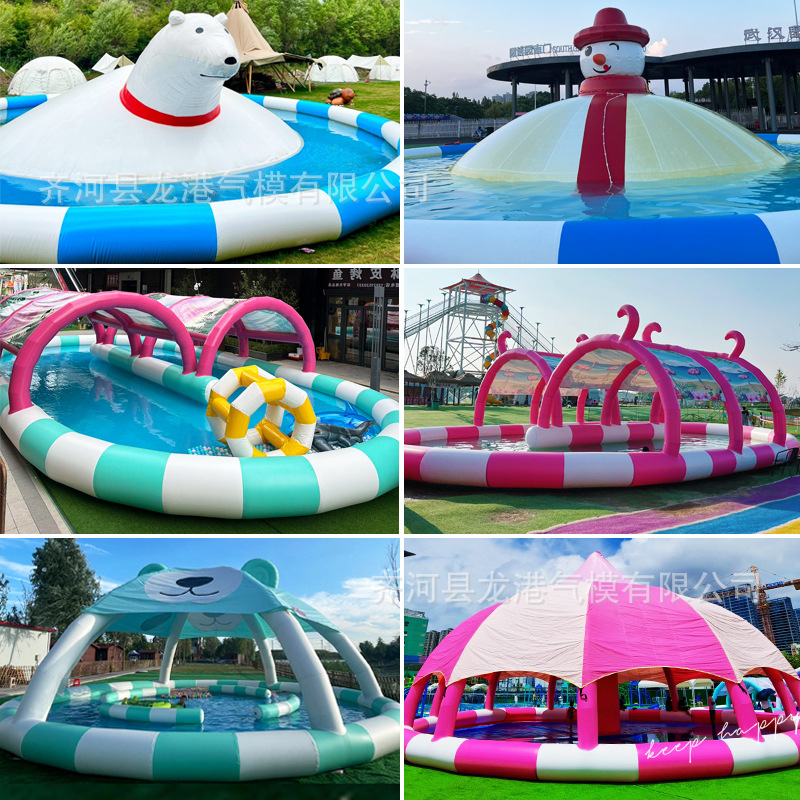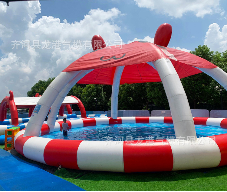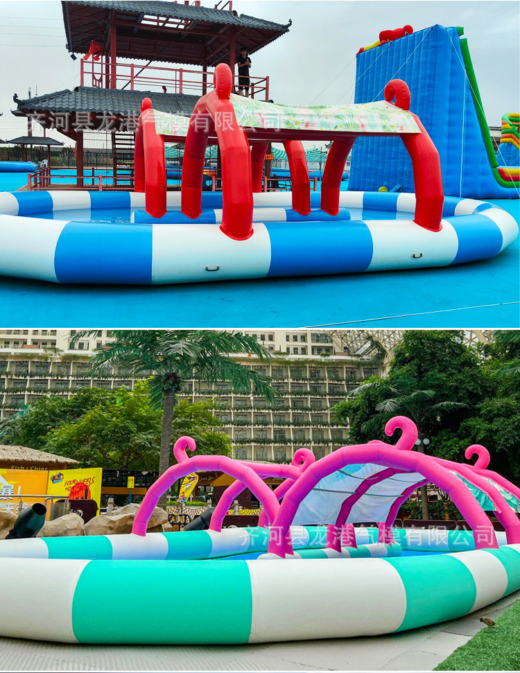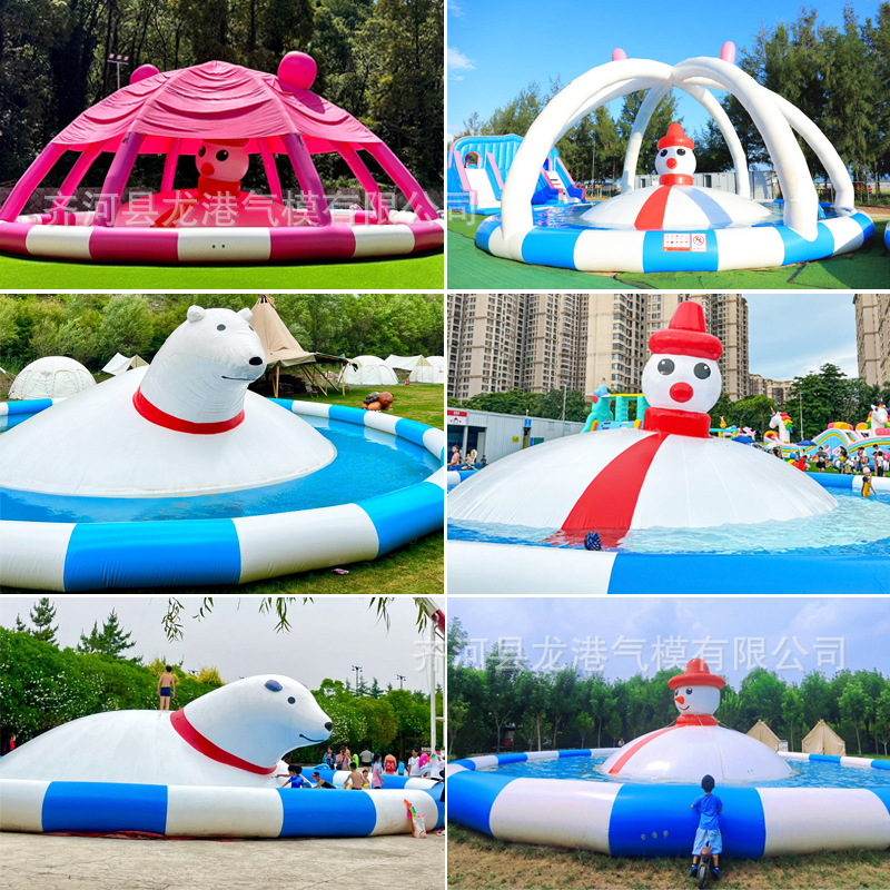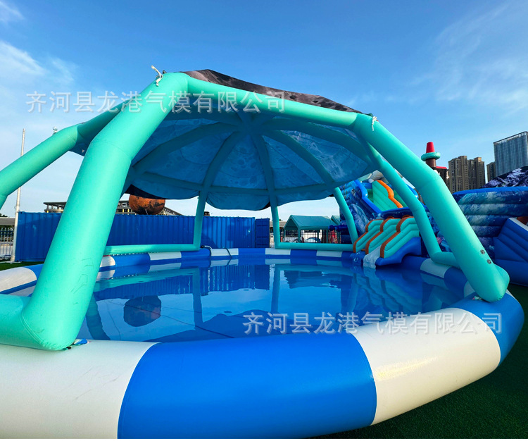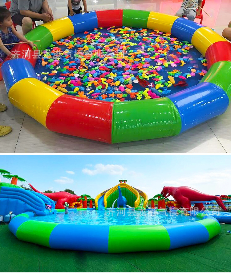 大型充气水池儿童泳池水上乐园遮阳滑梯户外摆摊钓鱼商用移动沙池
