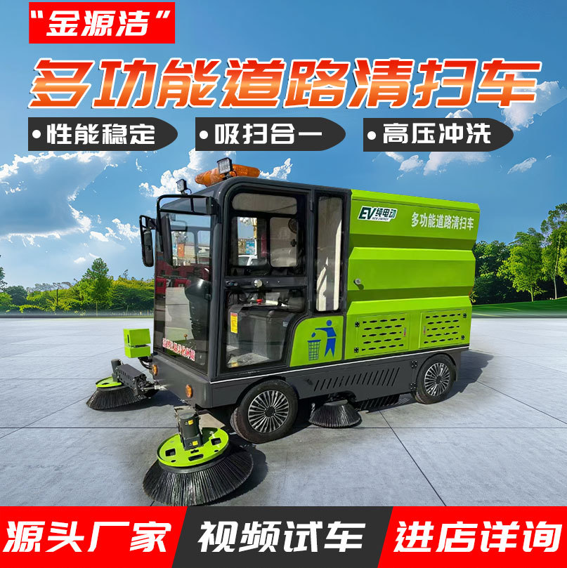 工业清洁设备全封闭电动扫地车 道路街道洒水吸尘多功能扫地车