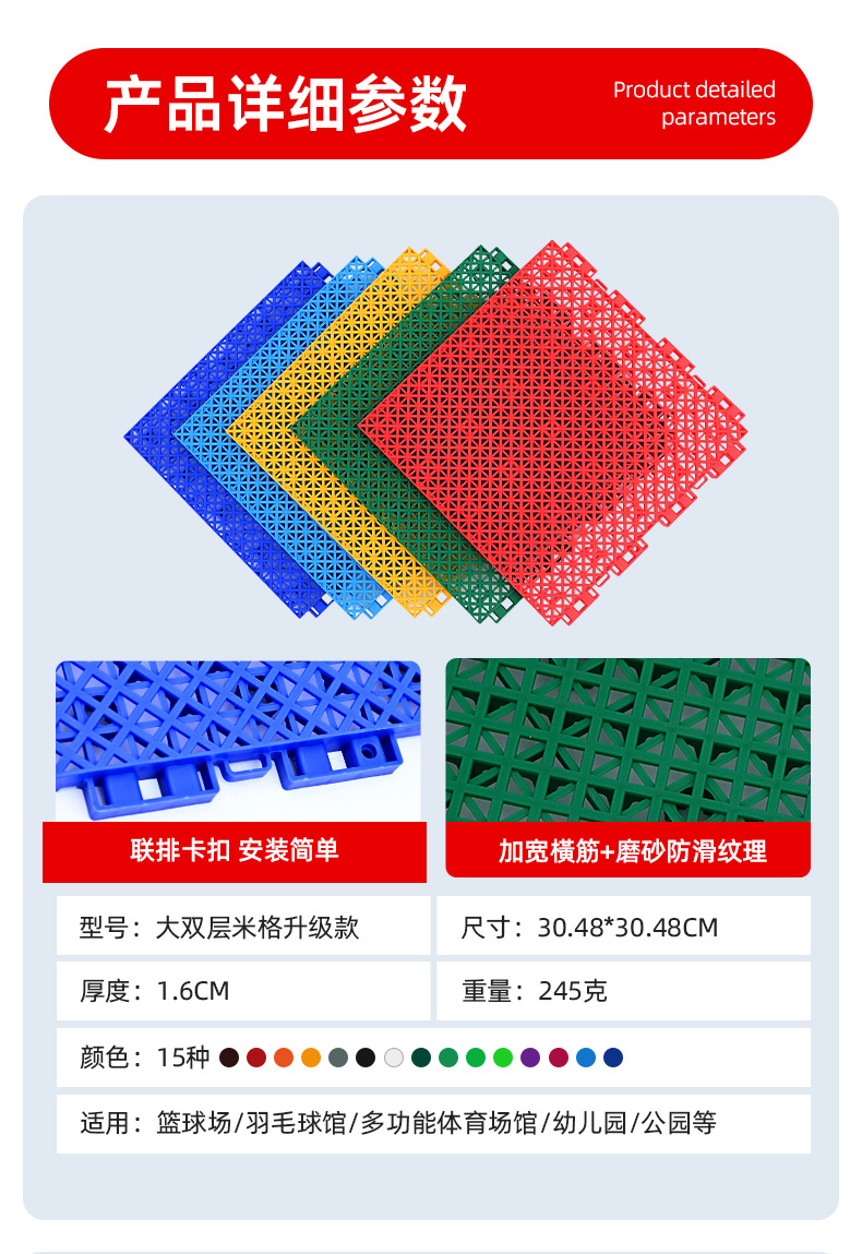 加厚篮球场室外悬浮地板幼儿园学校操场拼接运动羽毛球场悬浮地板