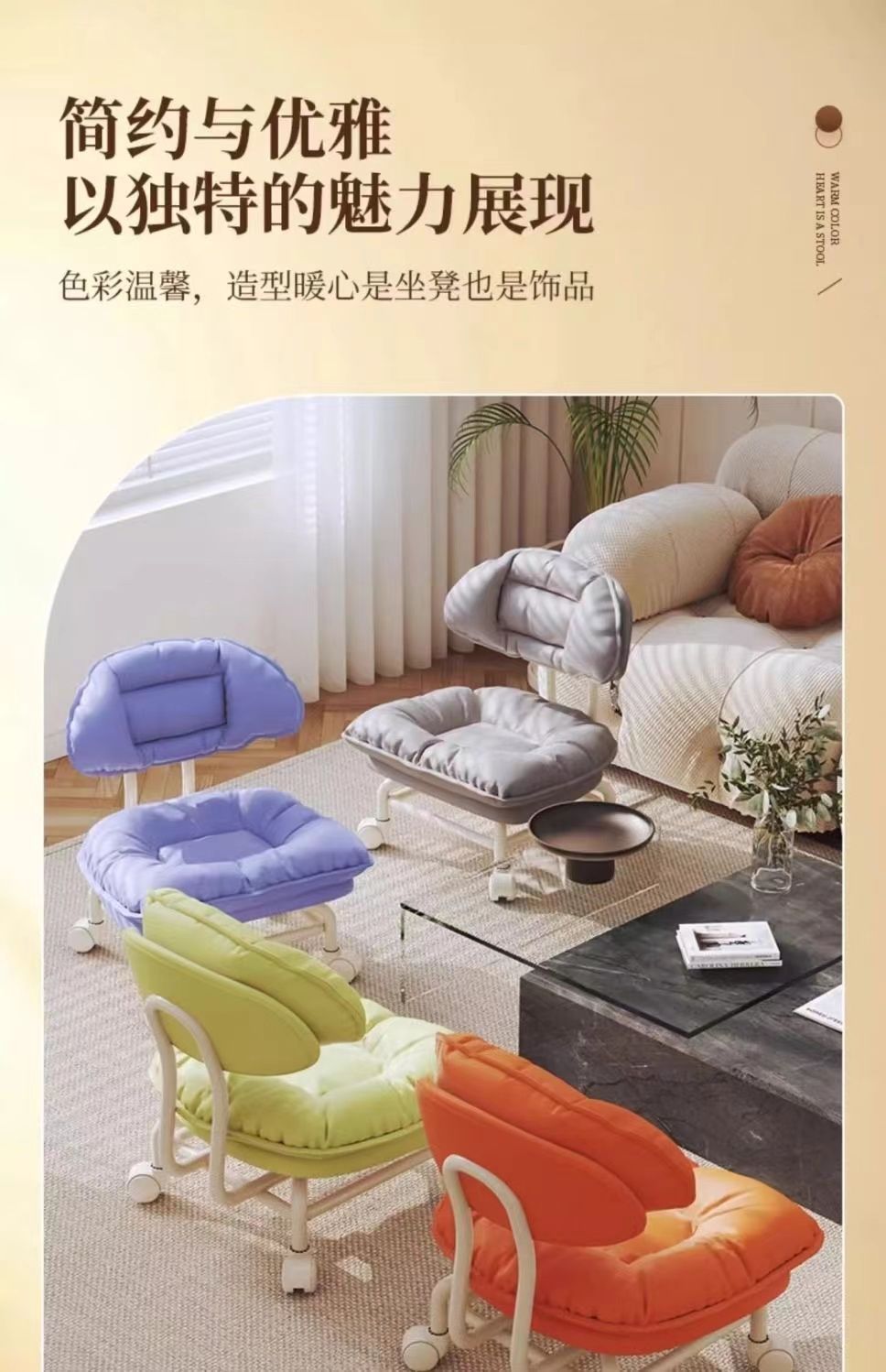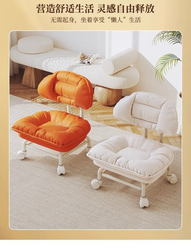 网红懒人靠背椅子家用板凳万向轮圆凳带娃神器小凳子滑轮矮凳子