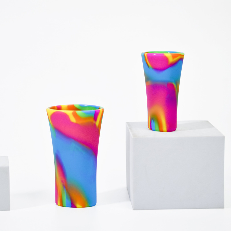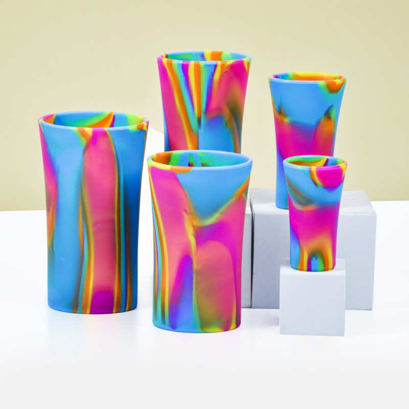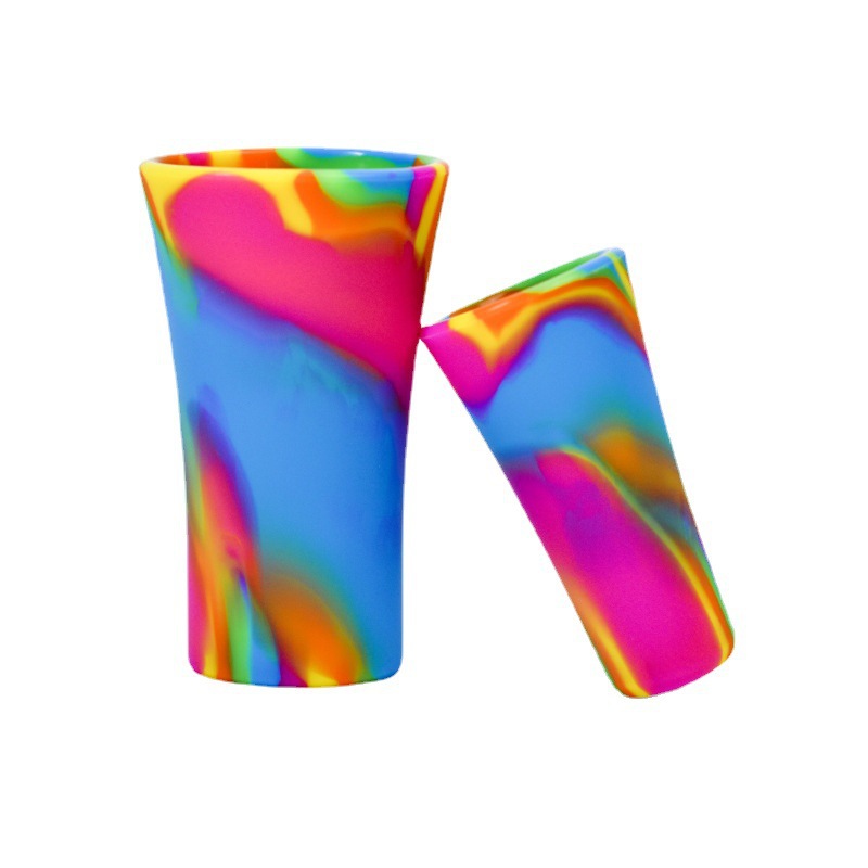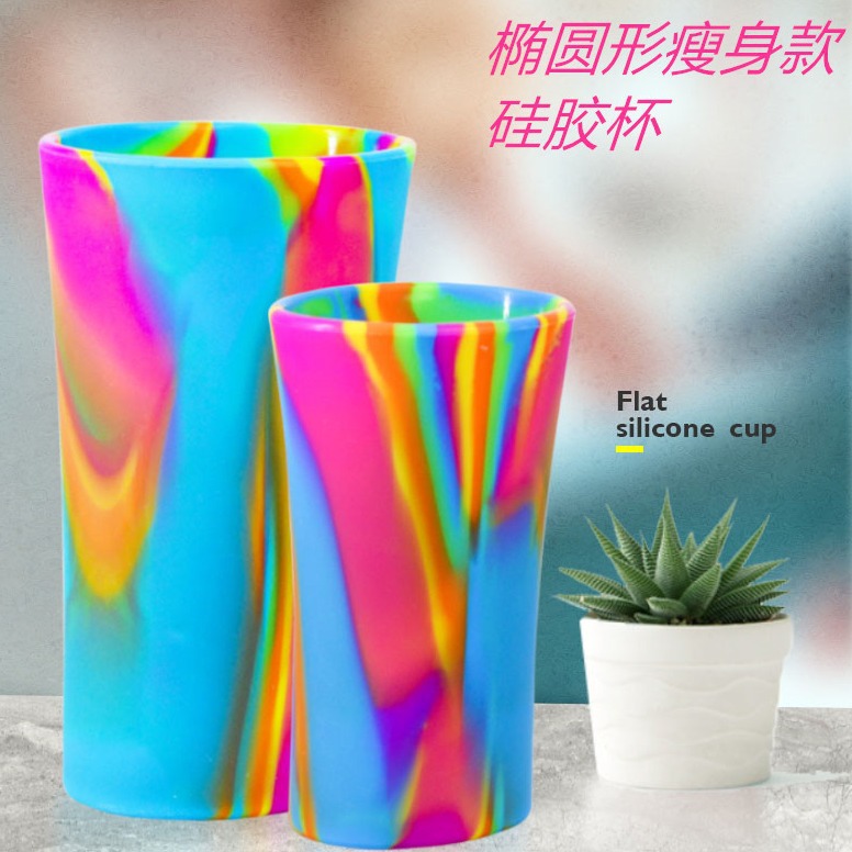 跨境新款防摔硅胶红酒杯食品级儿童硅胶杯 彩虹混色椭圆形茶杯