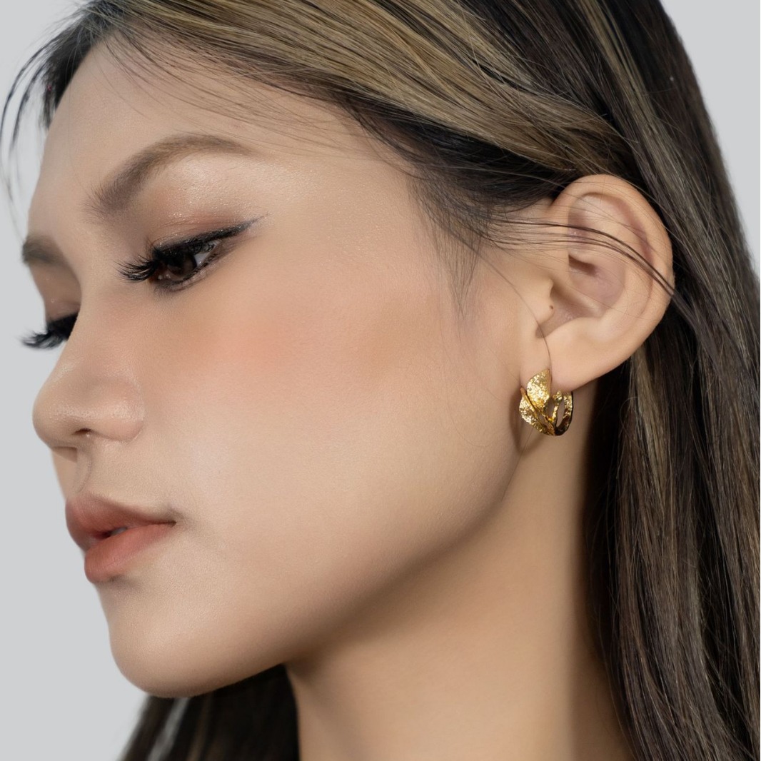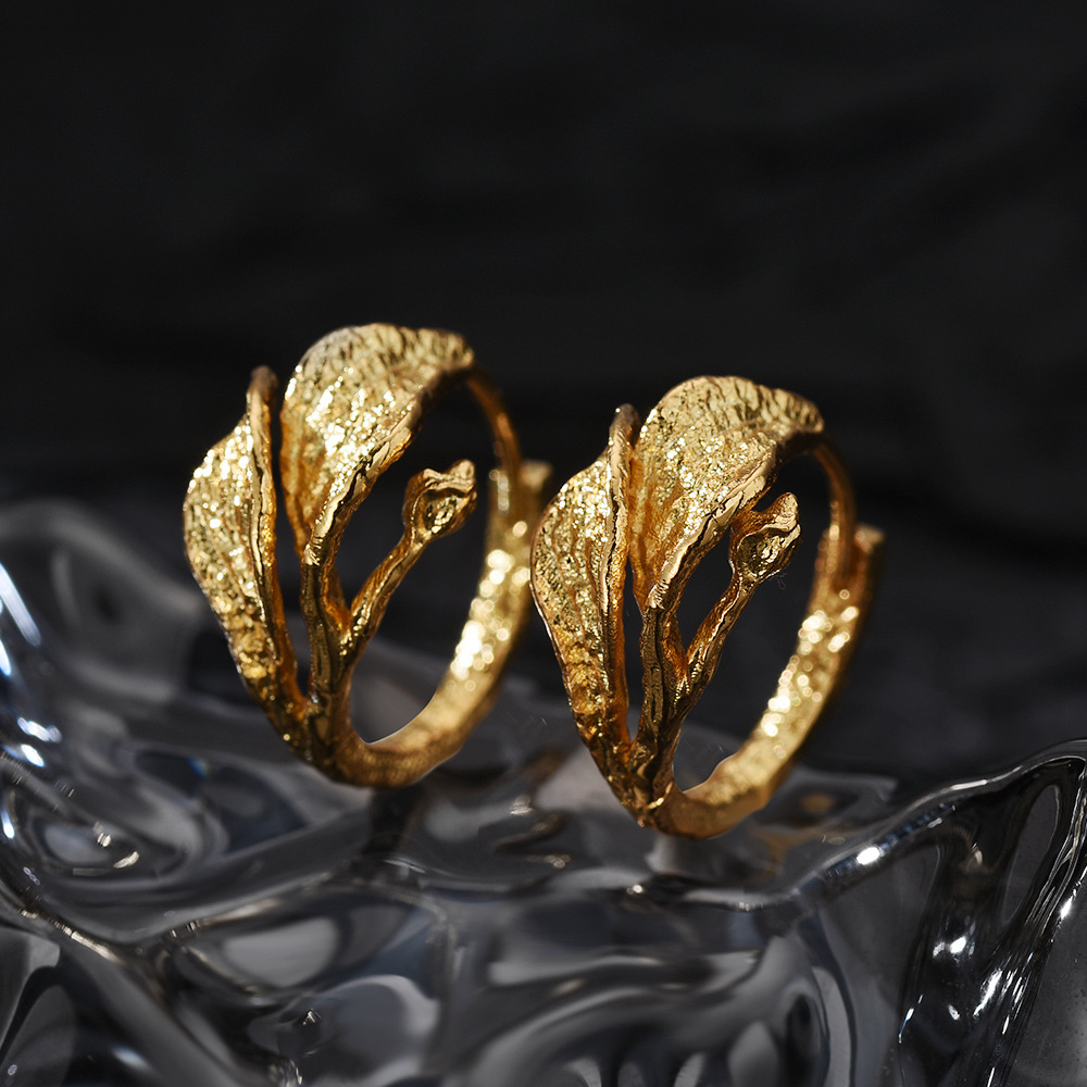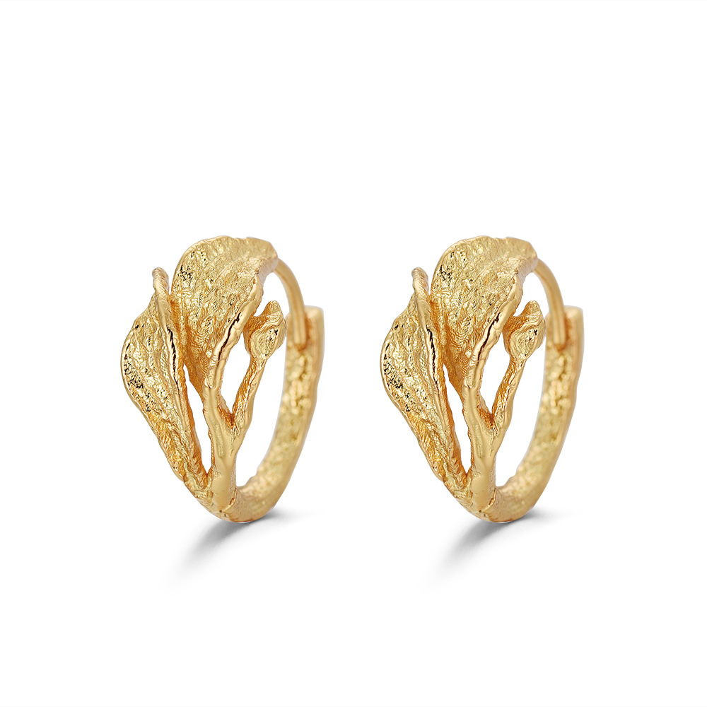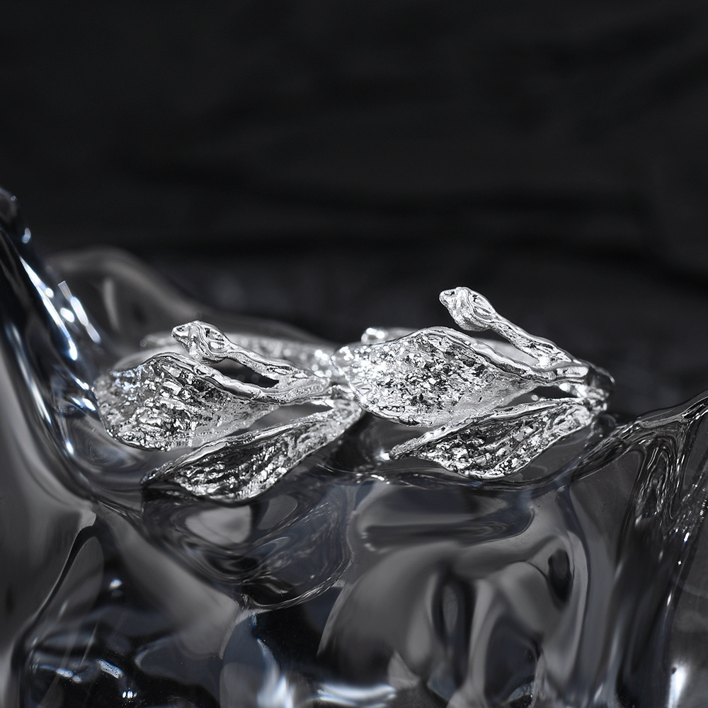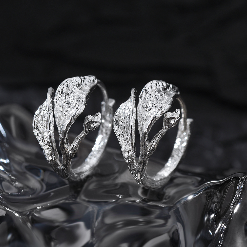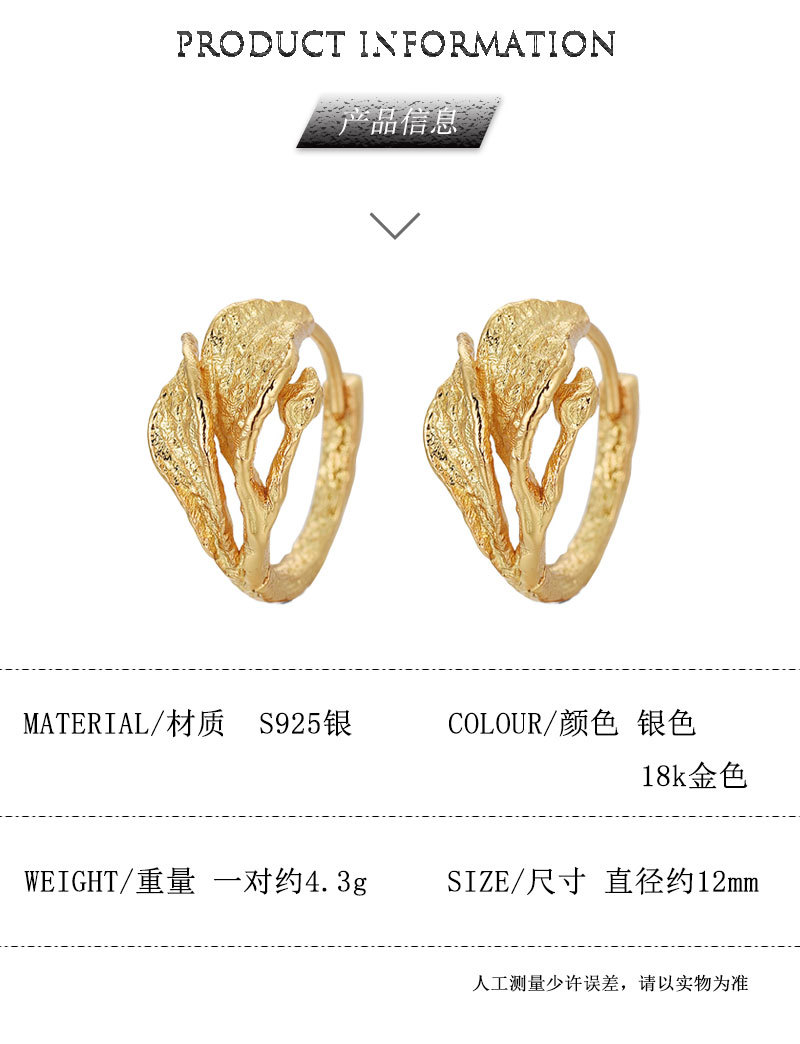 树叶耳环S925纯银原创小众肌理高级感复古个性风耳饰中古风耳扣女