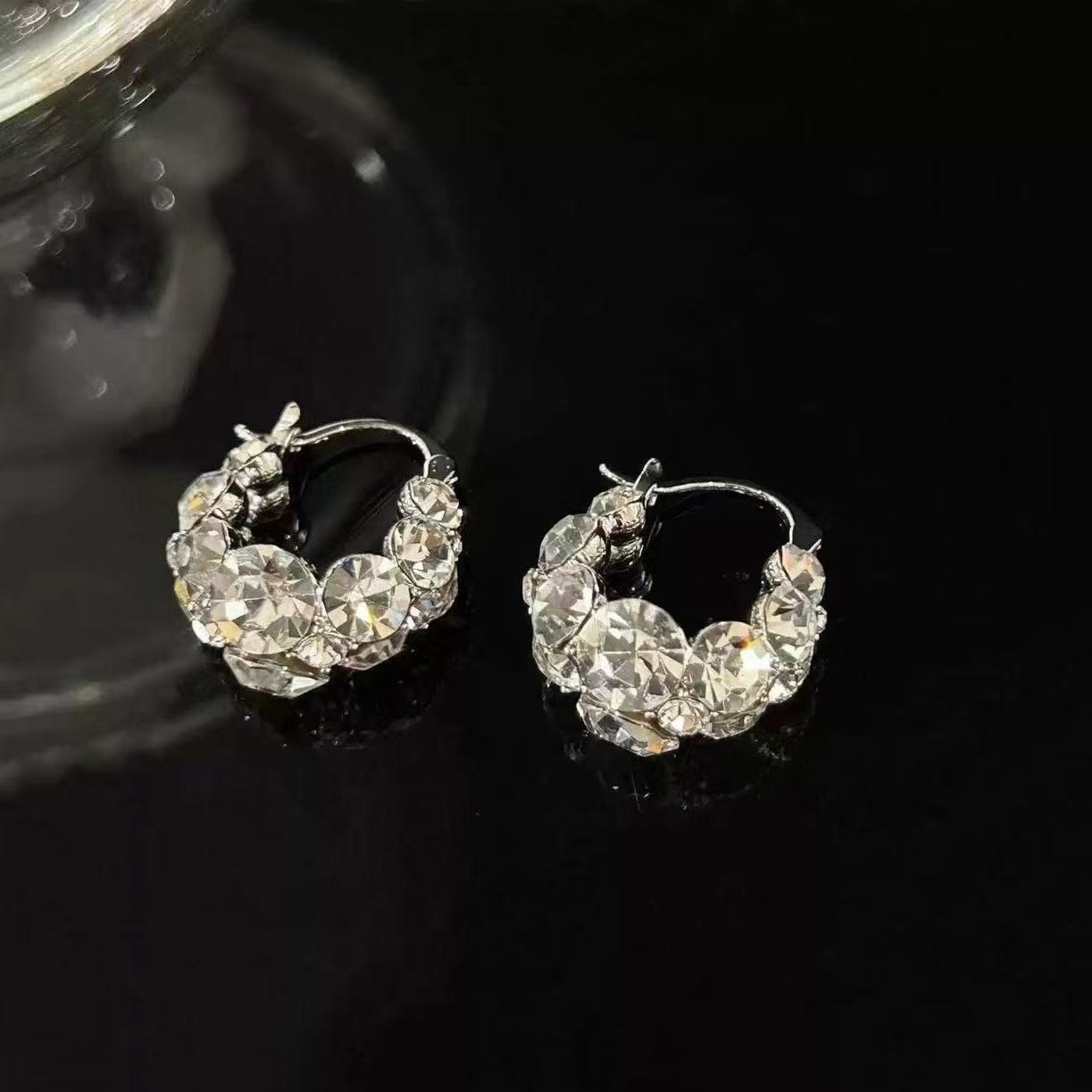 耳环新款气质轻奢高级感百搭满钻大气耳扣耳饰
