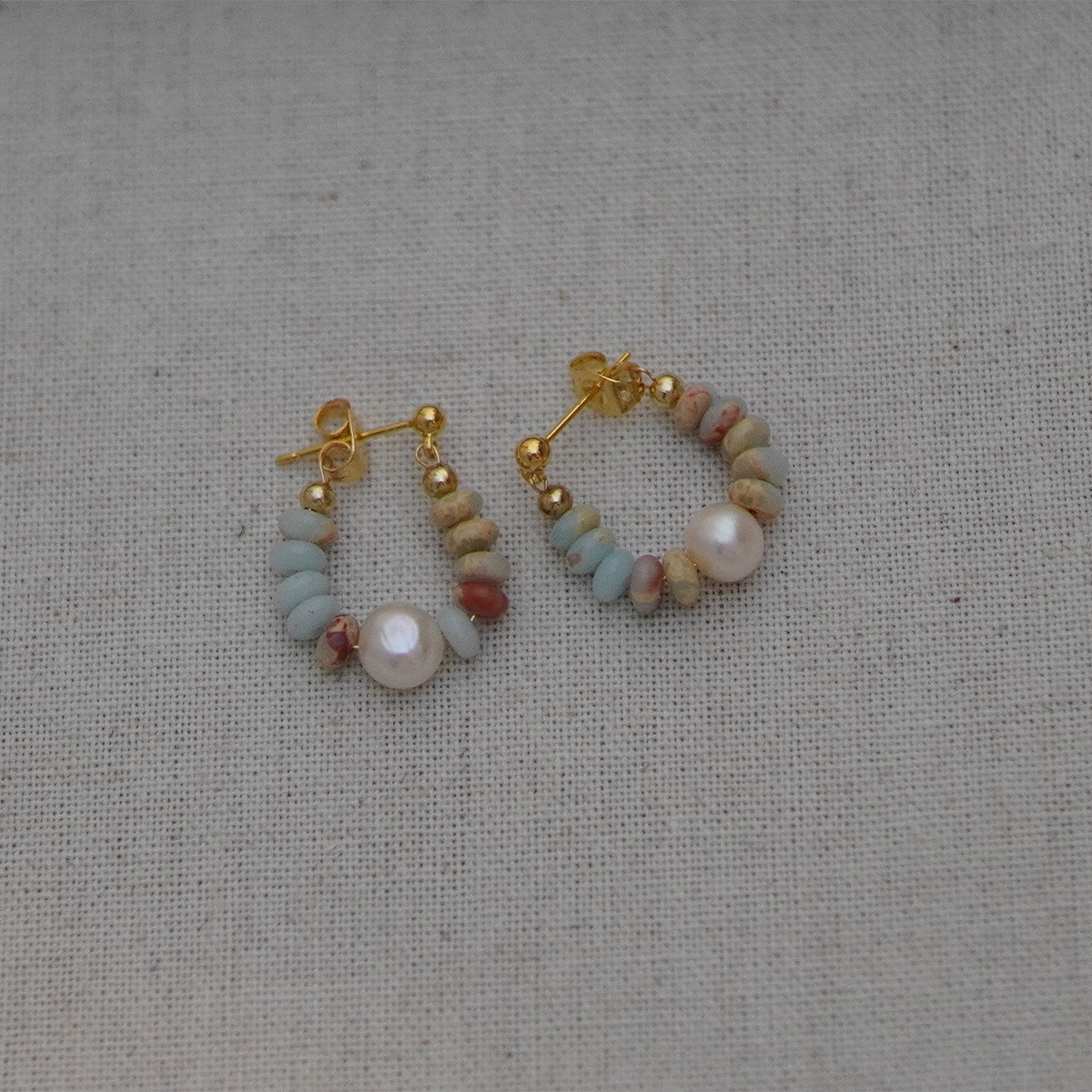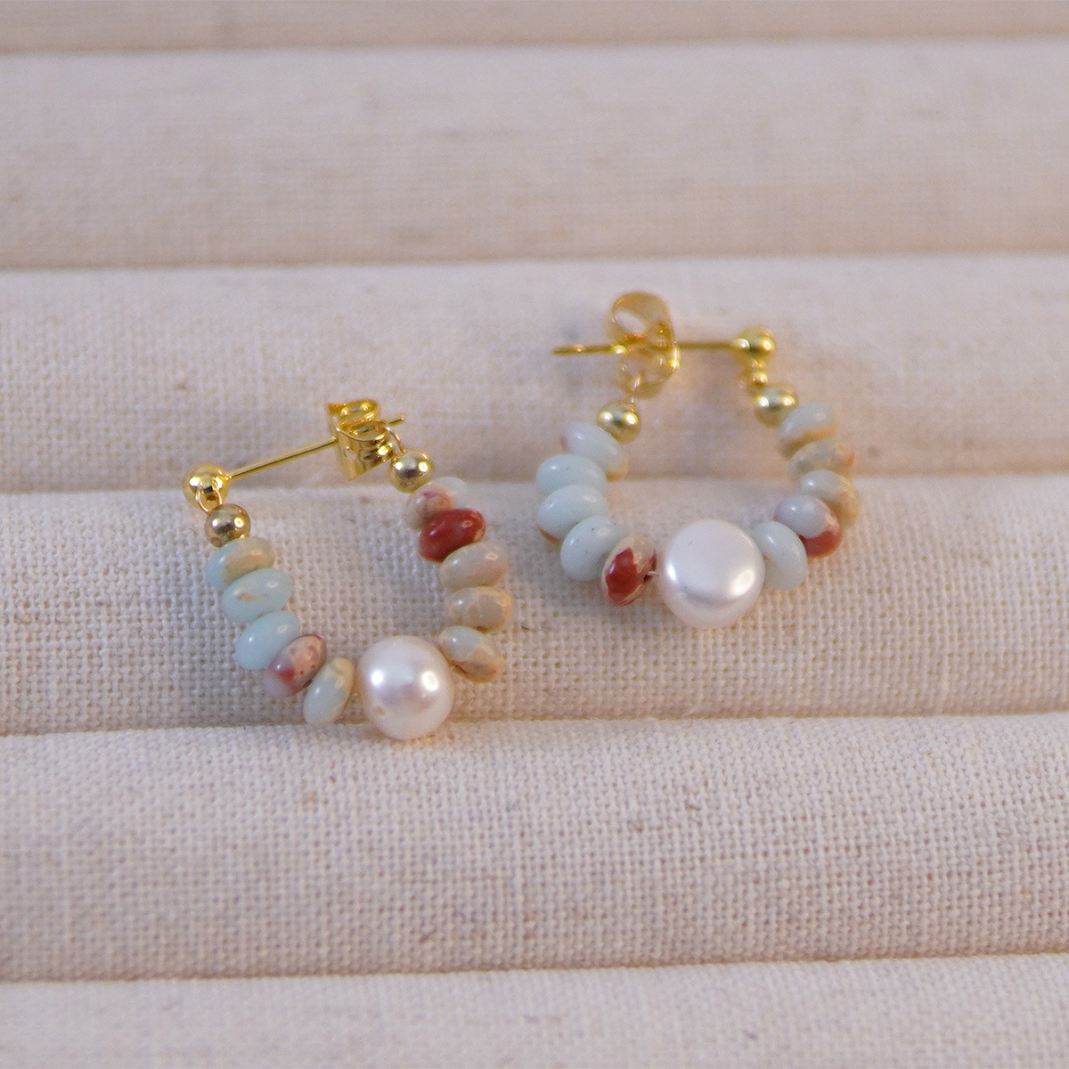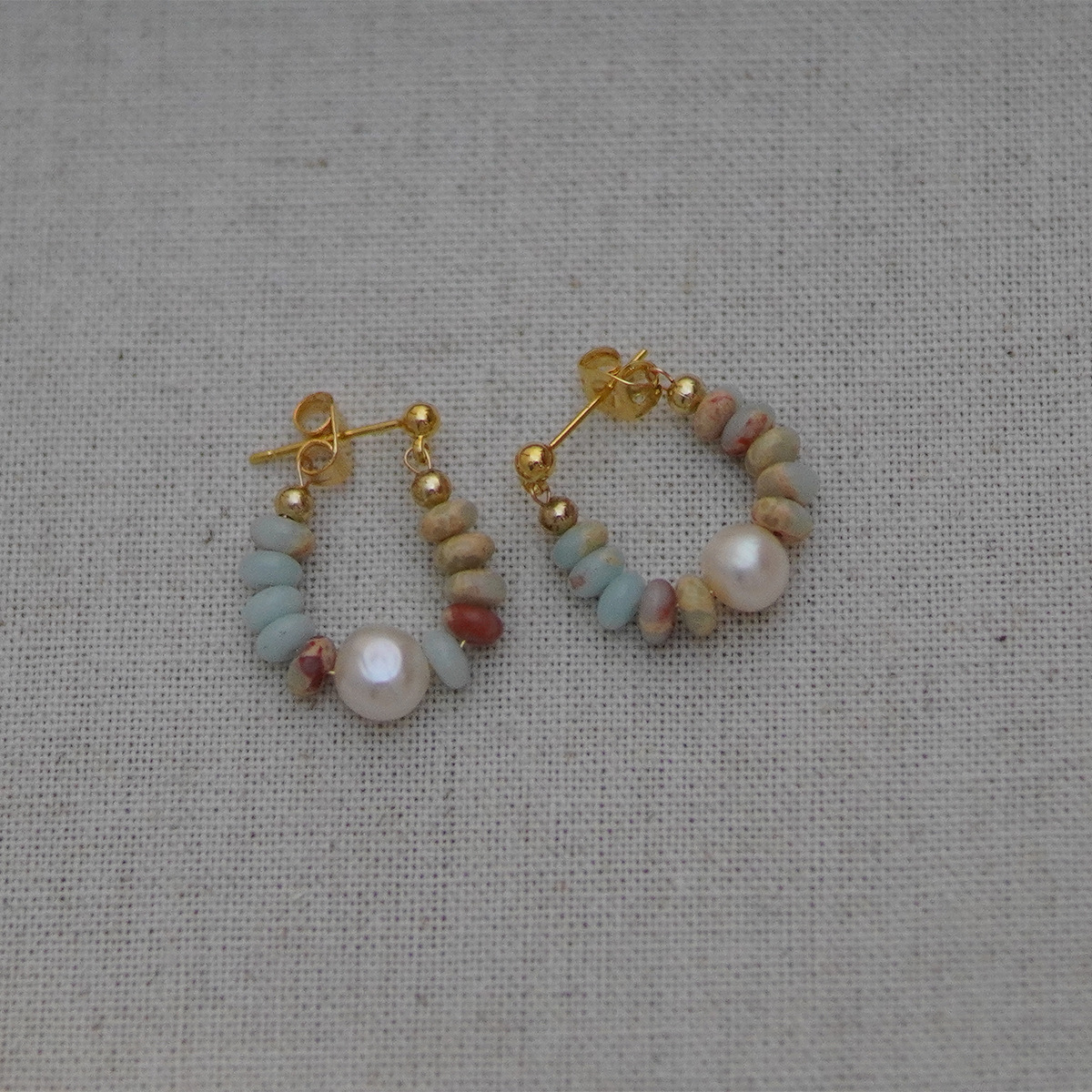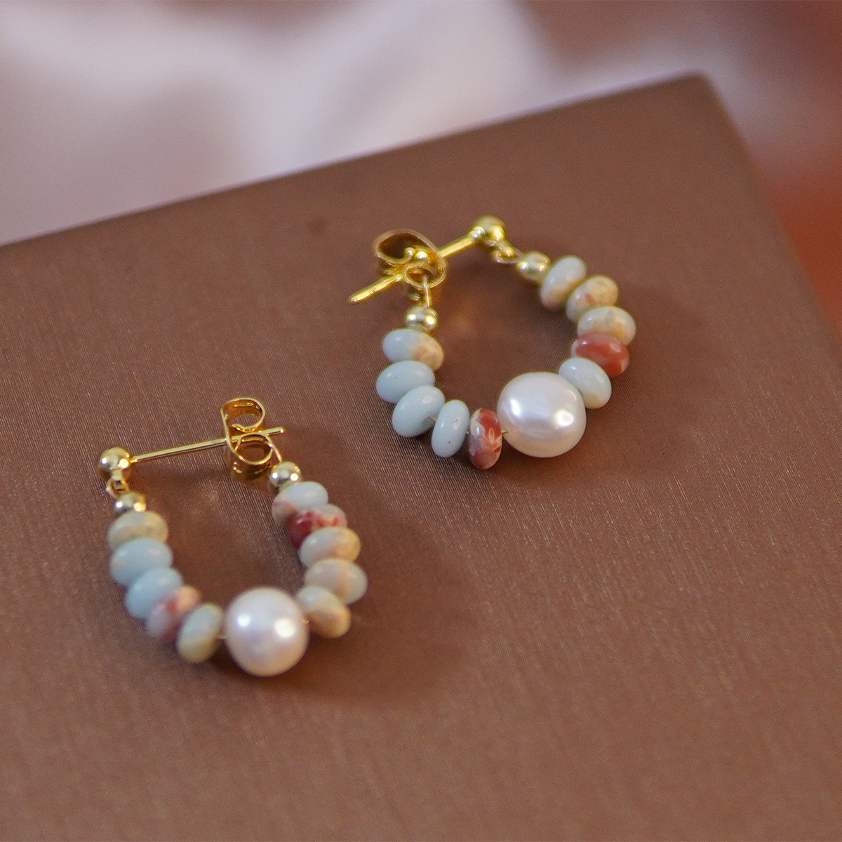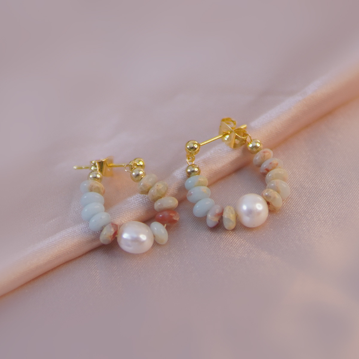 寿山石淡水珍珠耳环耳圈耳饰小众设计感简约时尚韩版韩式耳环批发