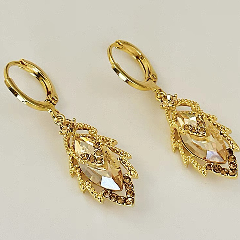 新款高级感轻奢风简约小众金色锆石叶子耳扣女美拉德耳环气质耳饰