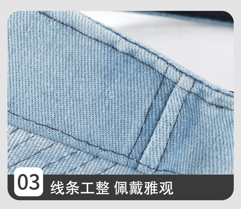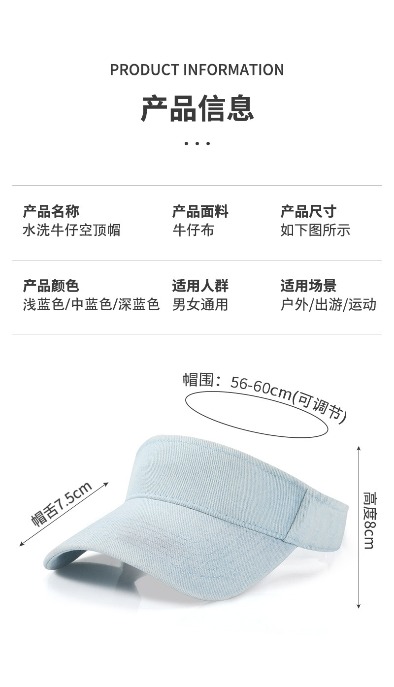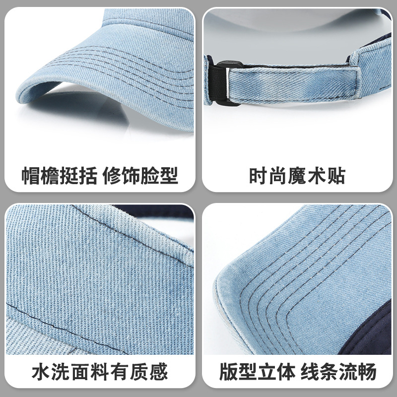 春夏季帽子女水洗做旧空顶帽防晒遮阳跑步帽运动透气牛仔无顶帽男