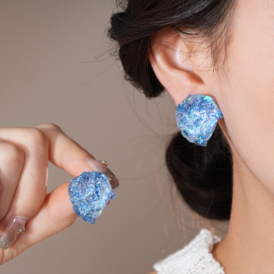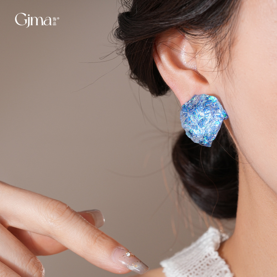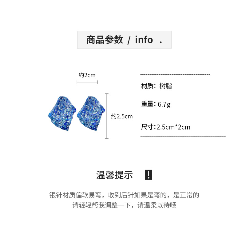 银针欧美复古不规则树脂耳钉个性小众设计感耳环轻奢高级感耳饰女