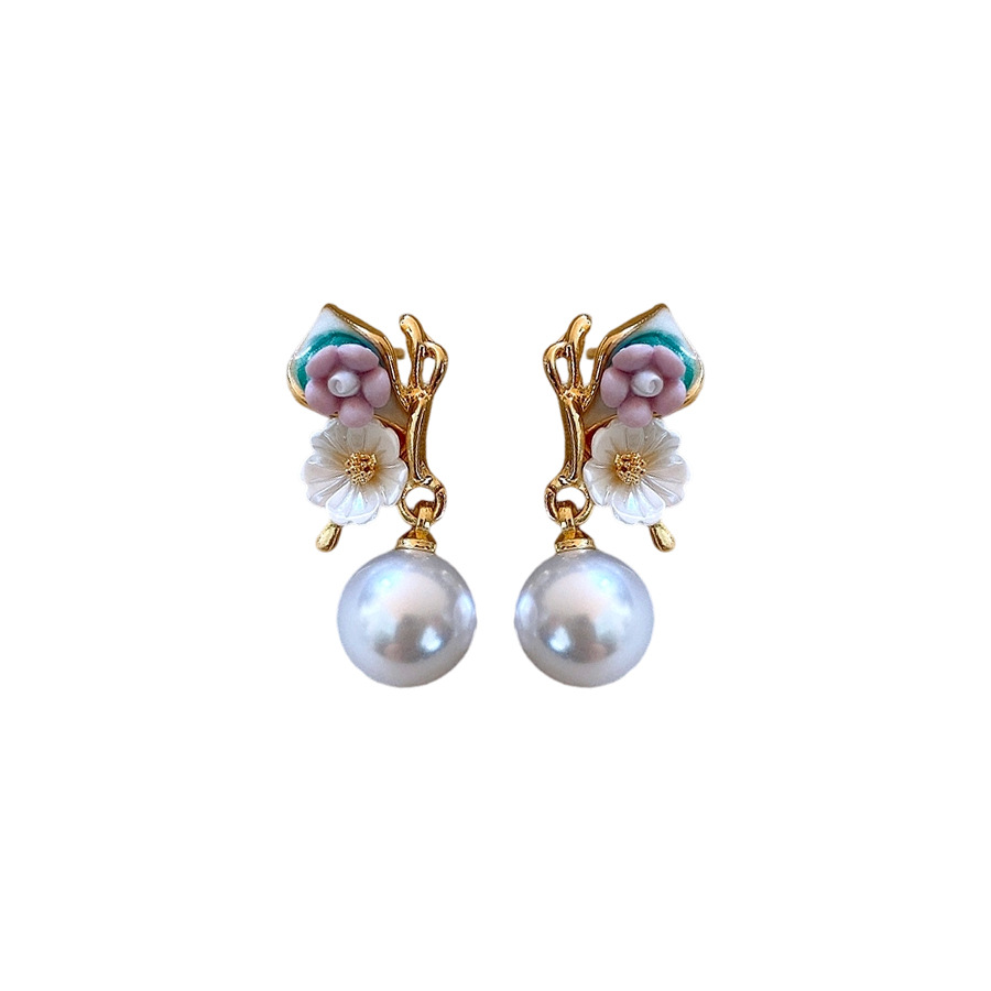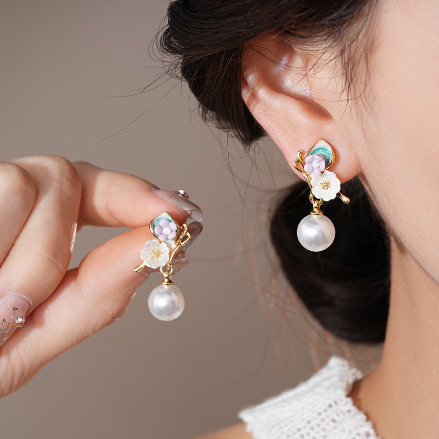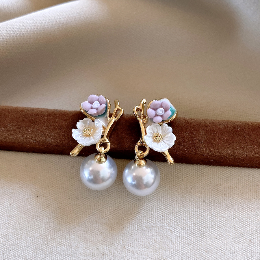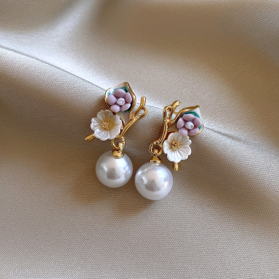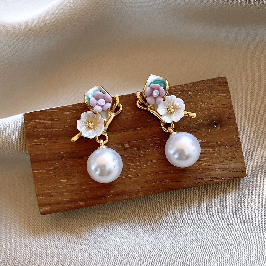 银针小清新甜美花朵珍珠耳环法式复古气质耳钉轻奢高级感耳饰批发