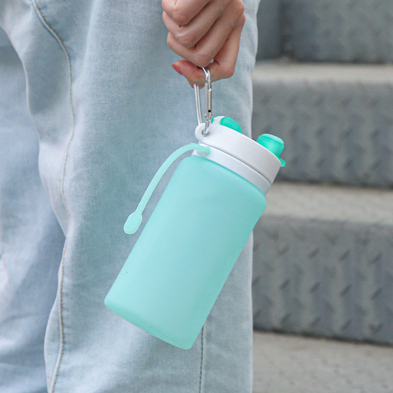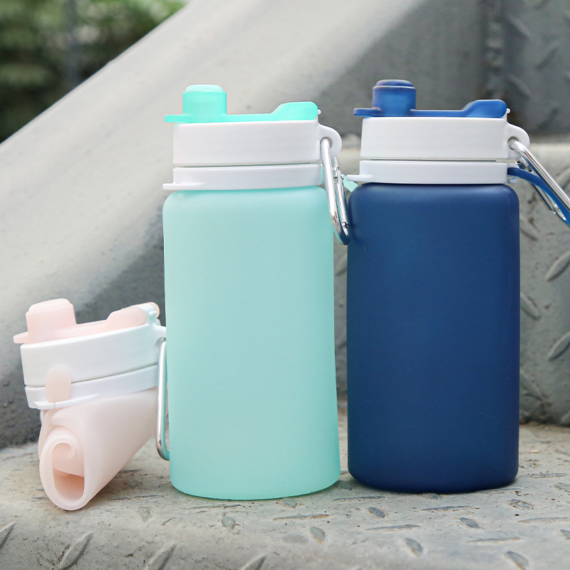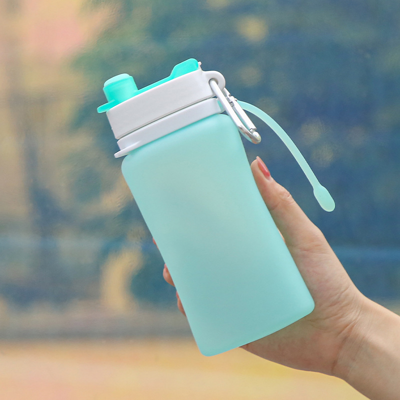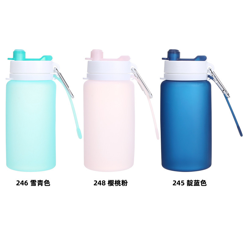 亚马逊硅胶折叠杯便携骑行户外运动水杯550ml耐高温水壶礼品水瓶