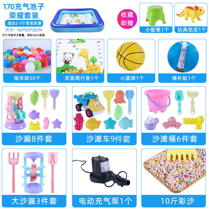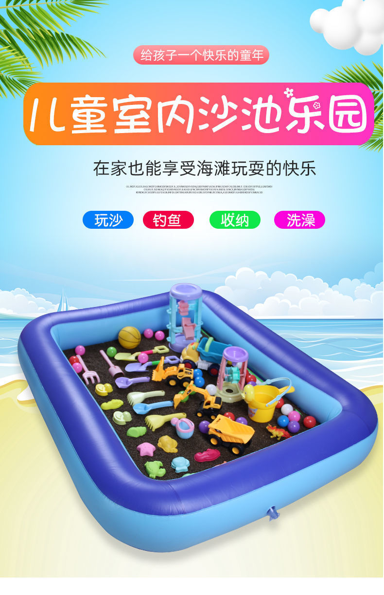 儿童沙滩玩具充气池套装室内决明子彩石沙子宝宝沙池组合家用围栏