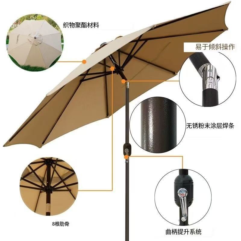 户外休闲遮阳庭院太阳伞高端豪华花园伞露台可转向直杆中柱伞批发