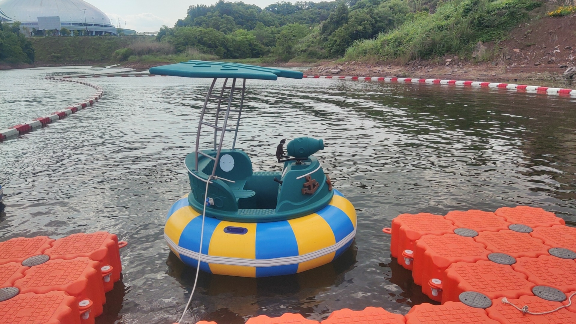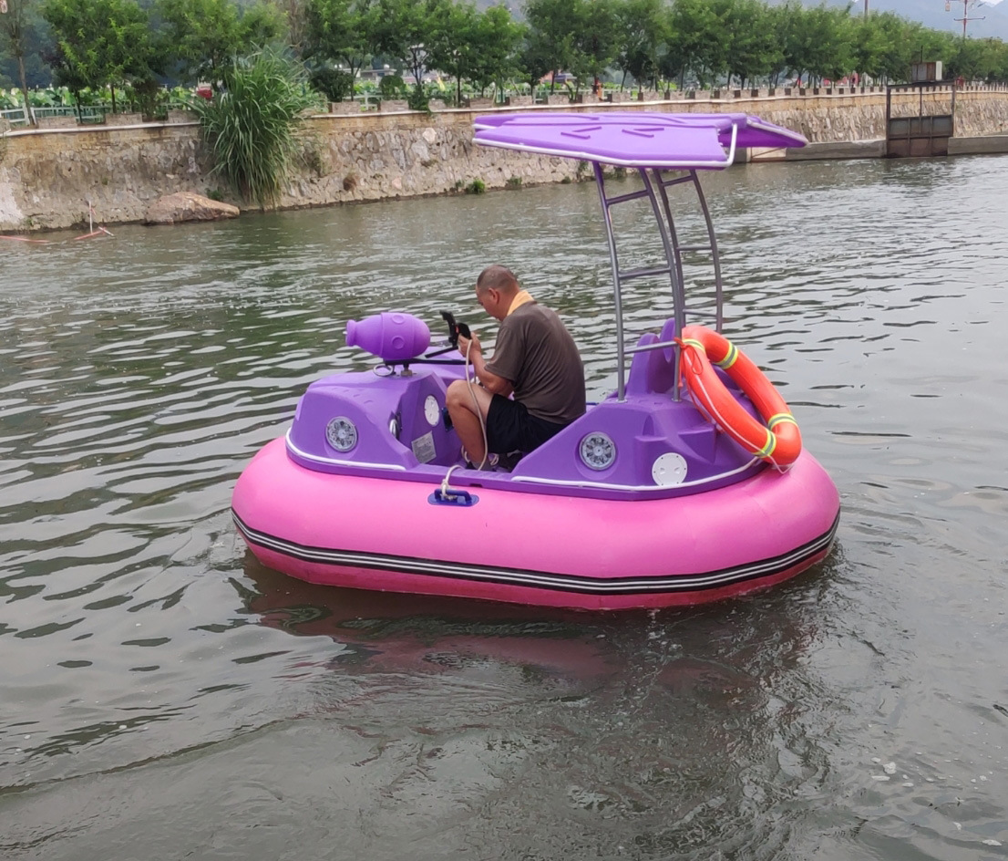充气电动碰碰船 厂家直销聚乙烯带水枪遥控景区游乐电动碰碰船