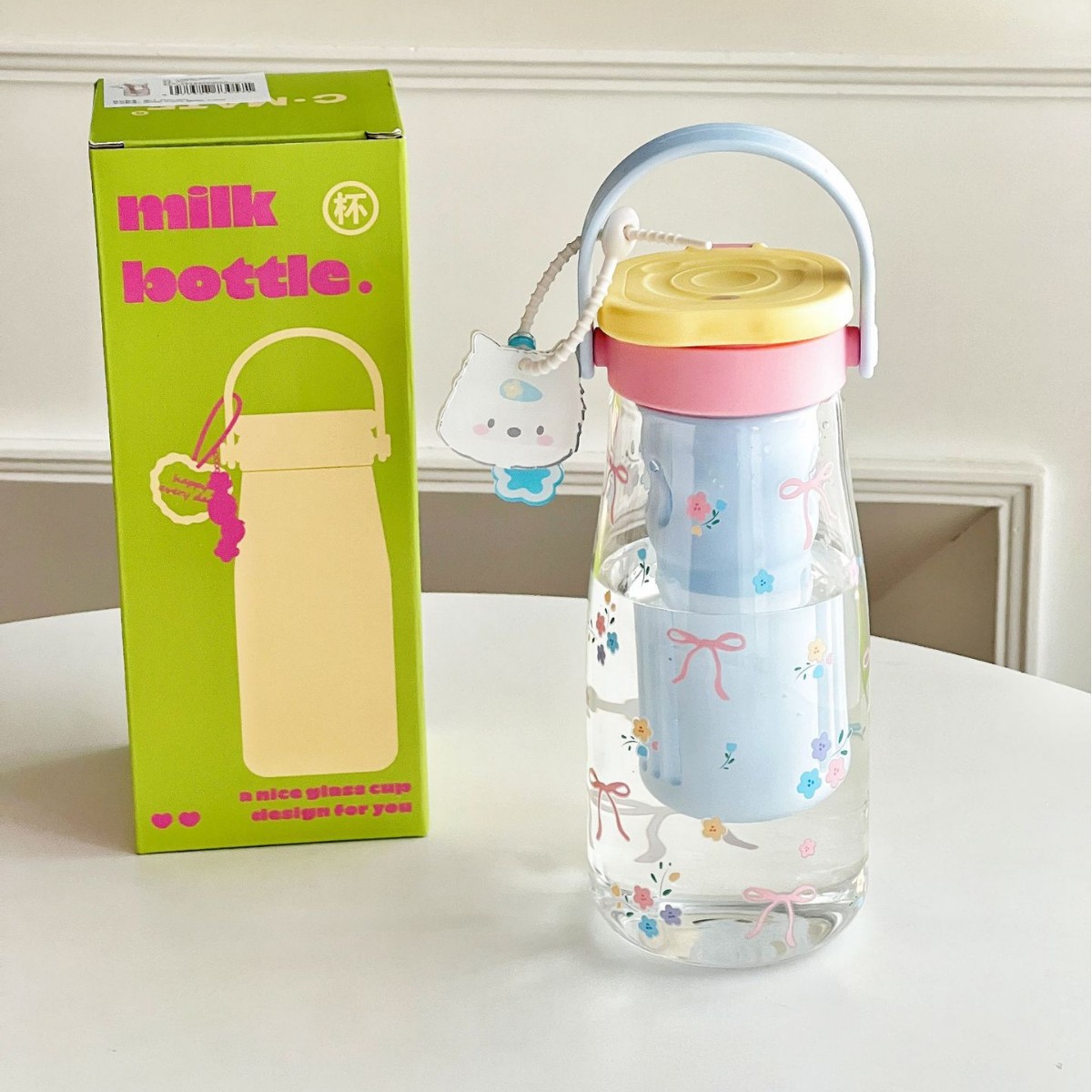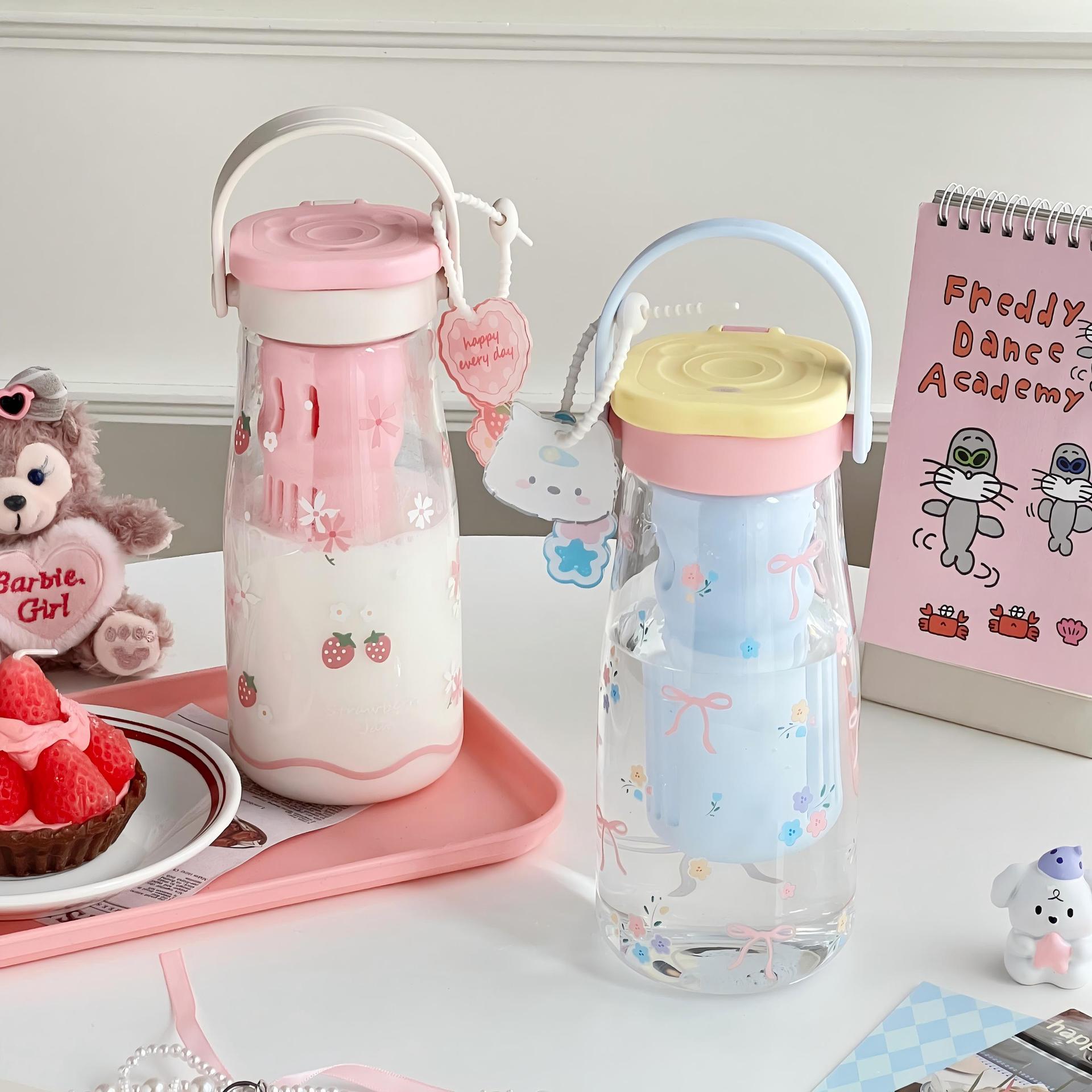 简约冷萃花茶杯水杯女生便携茶水分离杯吸管玻璃杯高颜值泡茶杯