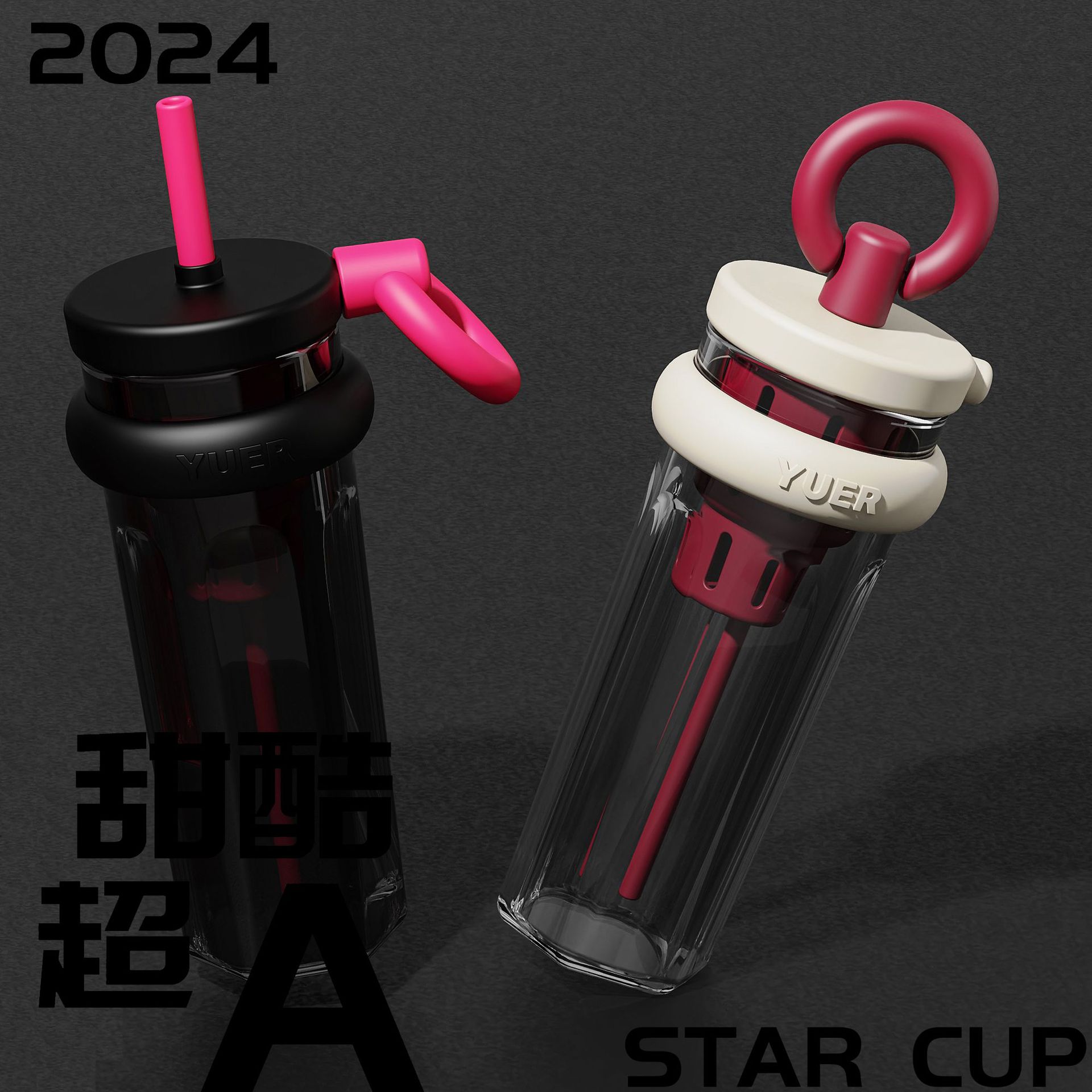 轻奢高级水杯女生高颜值吸管杯子大容量耐高温便携学生夏季塑料杯