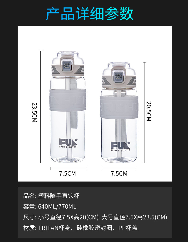 户外运动塑料水杯大容量男tritan水壶夏季耐高温便携吨吨桶批发