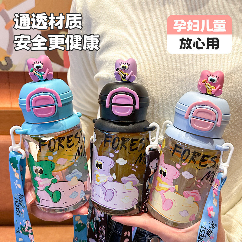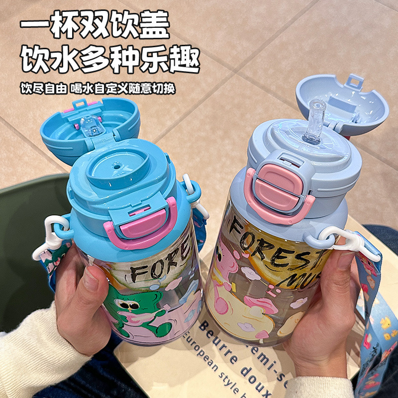 塑料水杯夏季一盖双饮吸管杯儿童男女学生高颜值便携夏季随手杯子