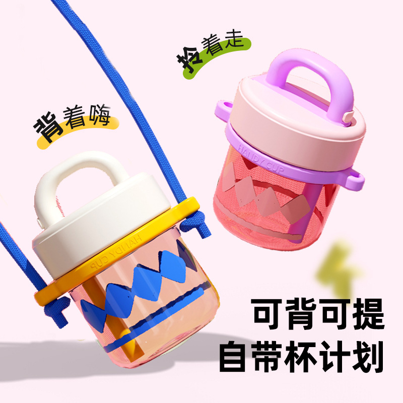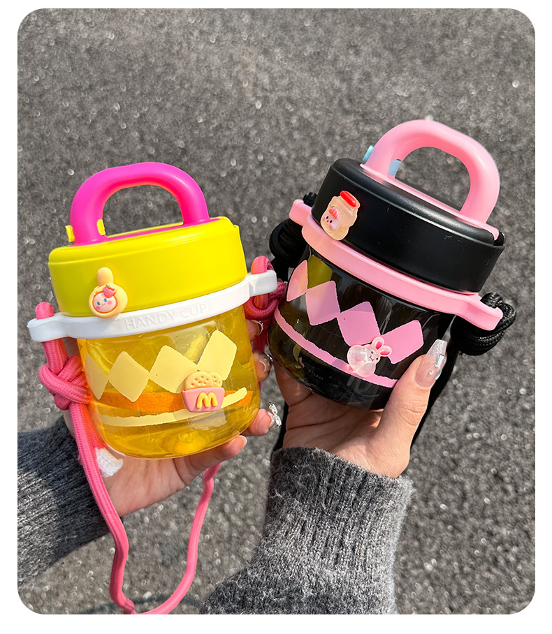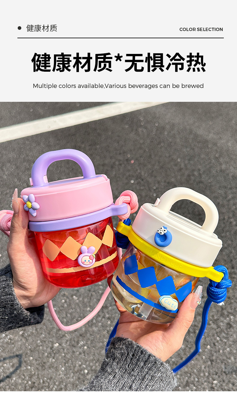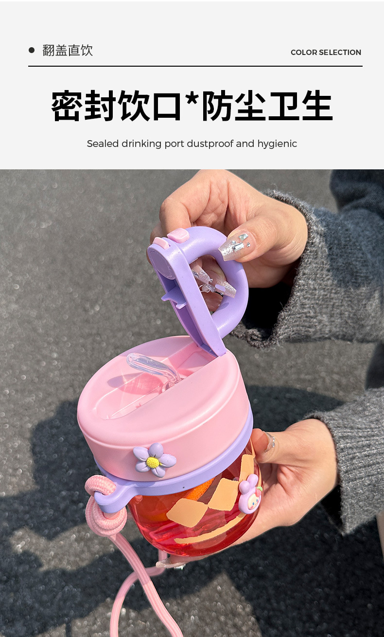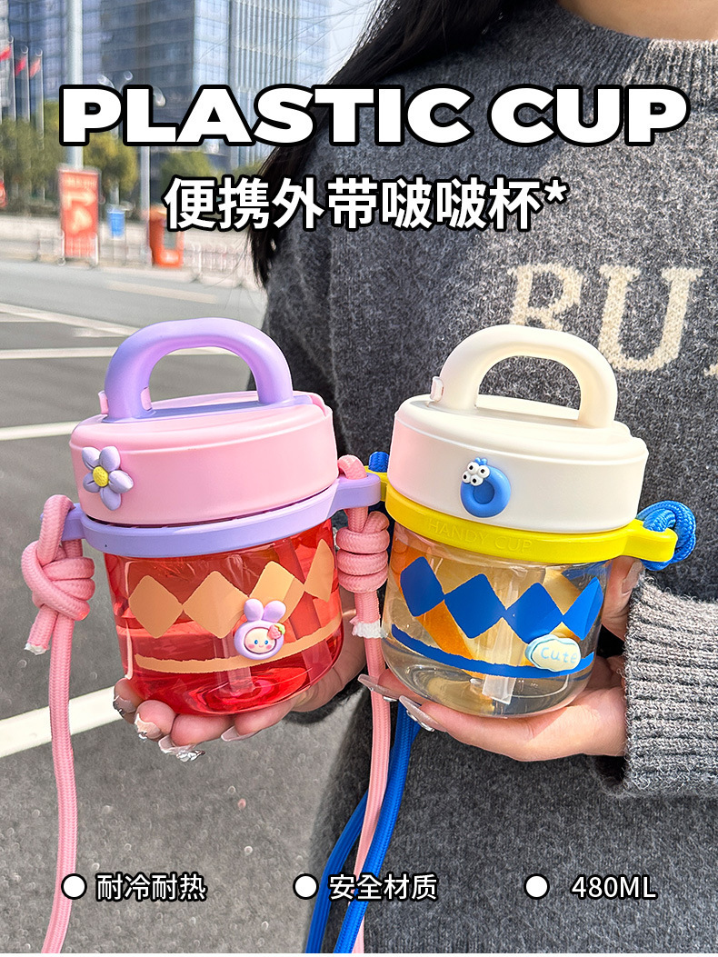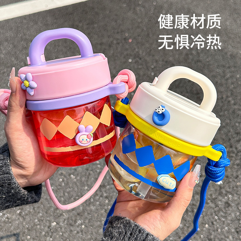 儿童水杯女生高颜值吸管塑料杯加厚可爱便携式学生耐高温耐水壶