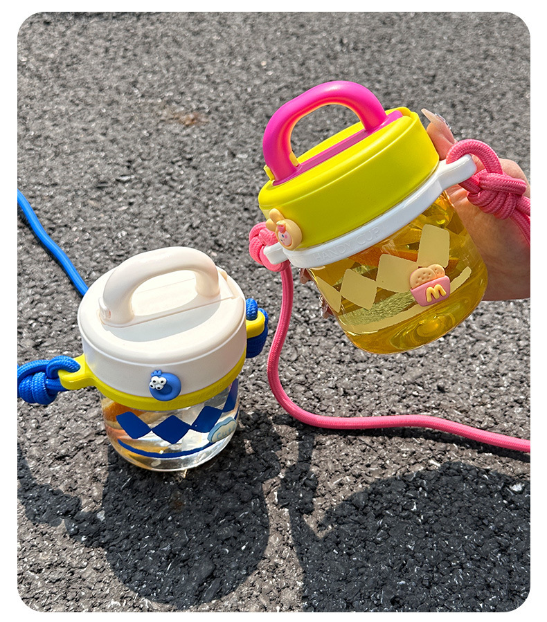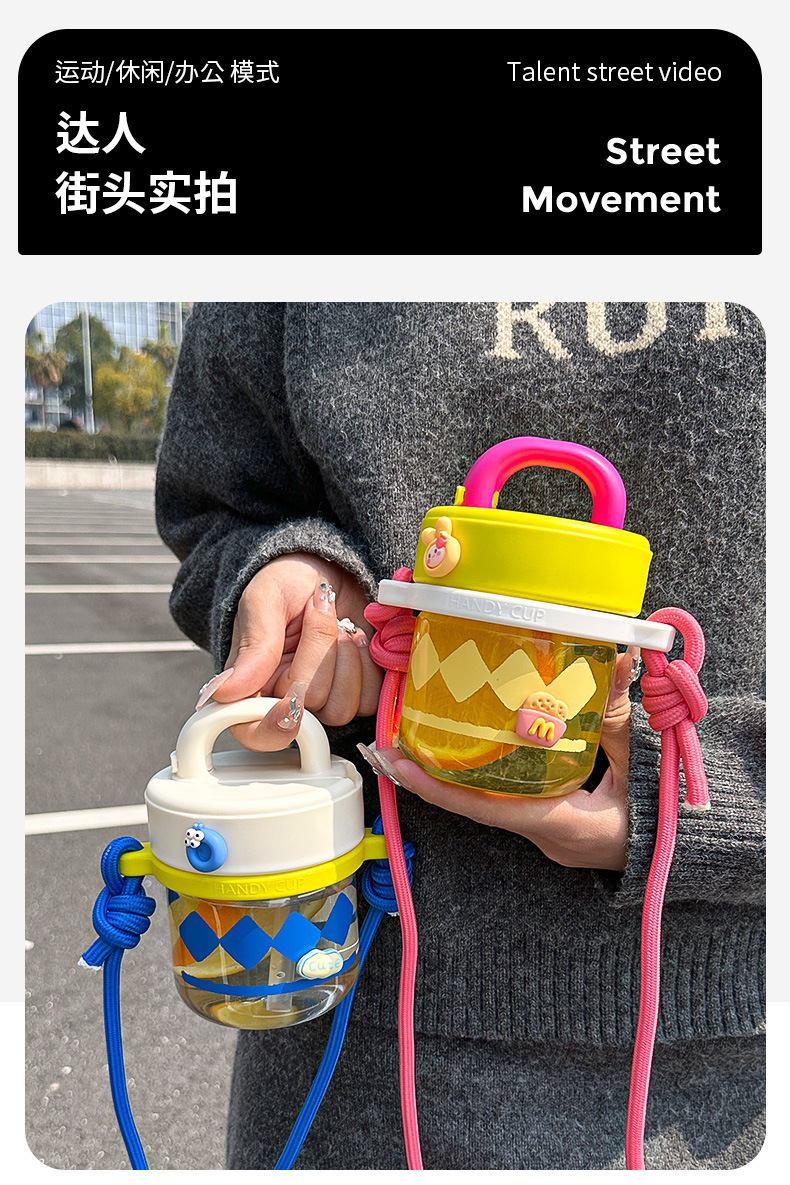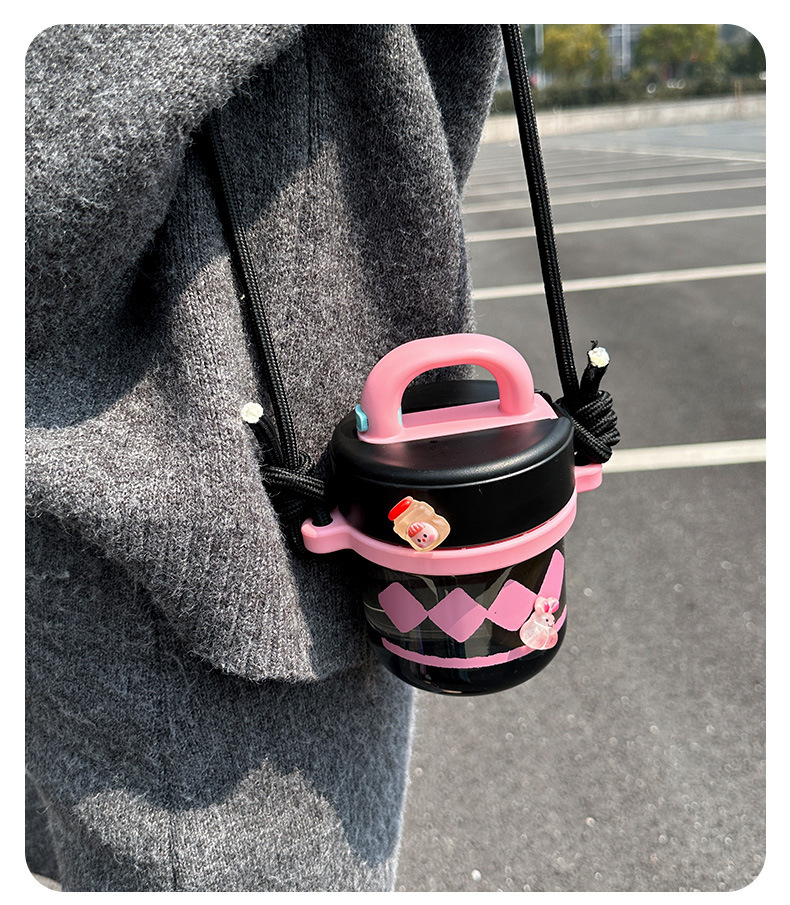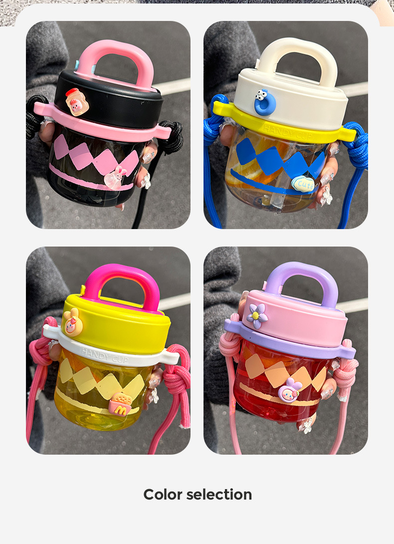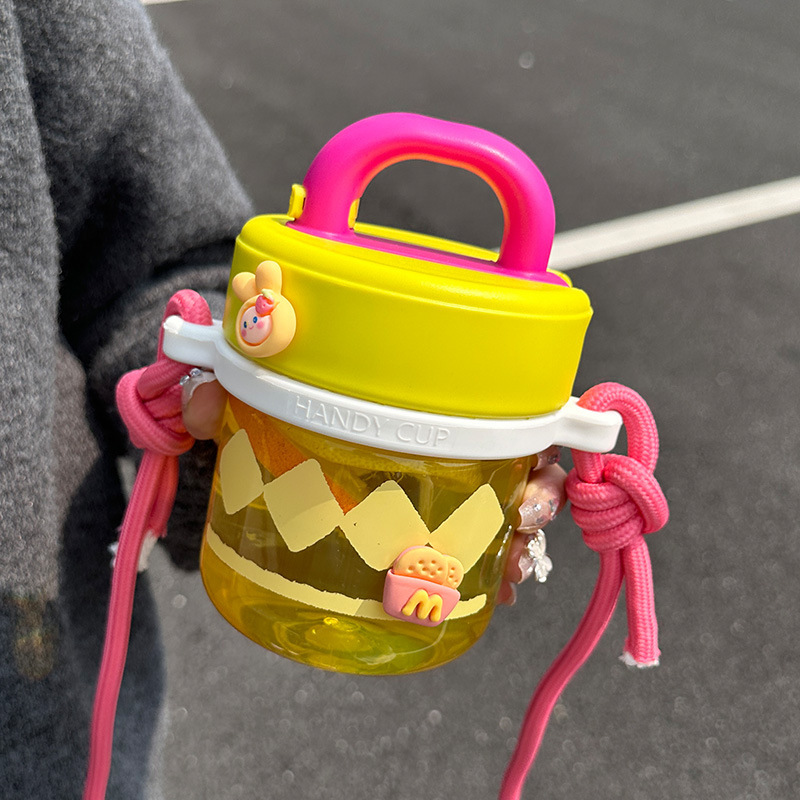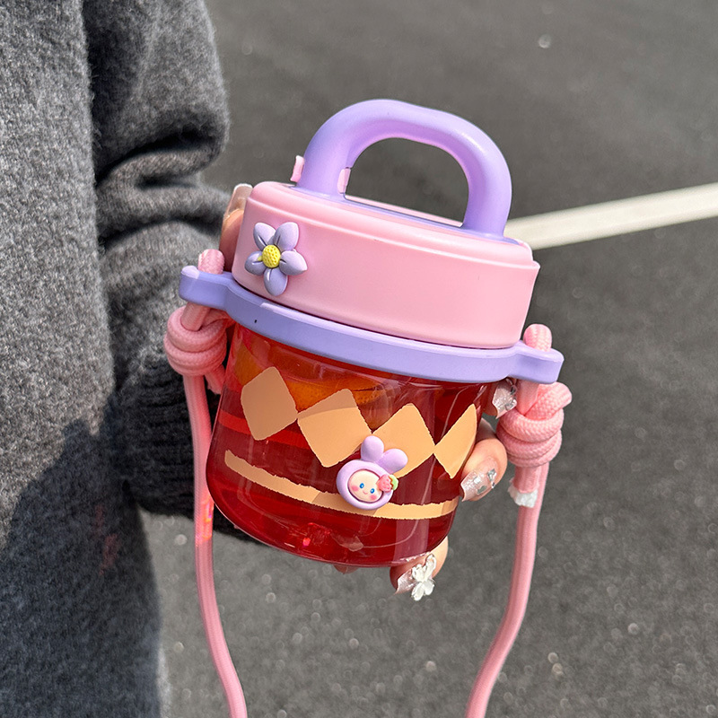 儿童水杯女生高颜值吸管塑料杯加厚可爱便携式学生耐高温耐水壶