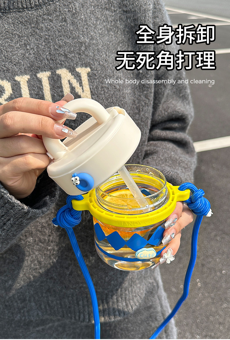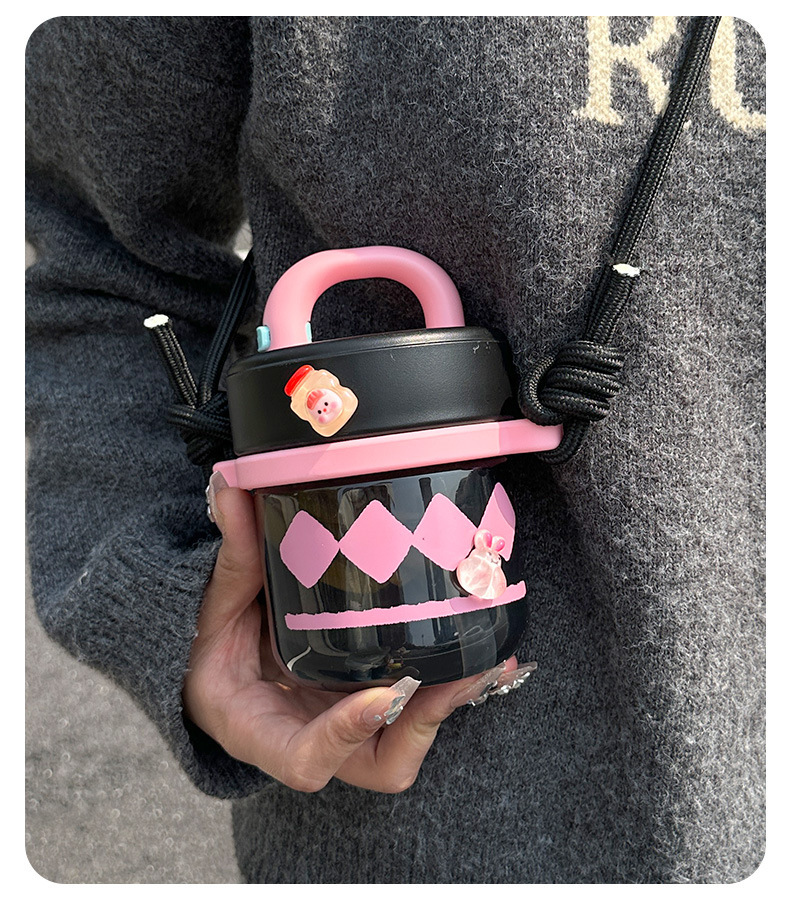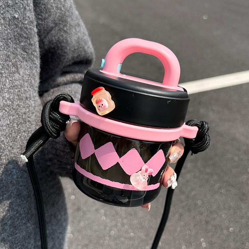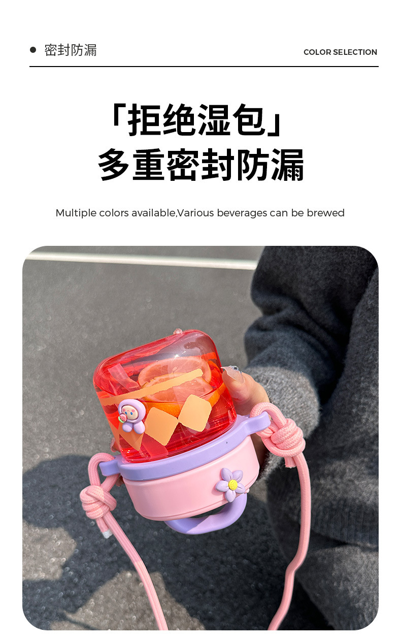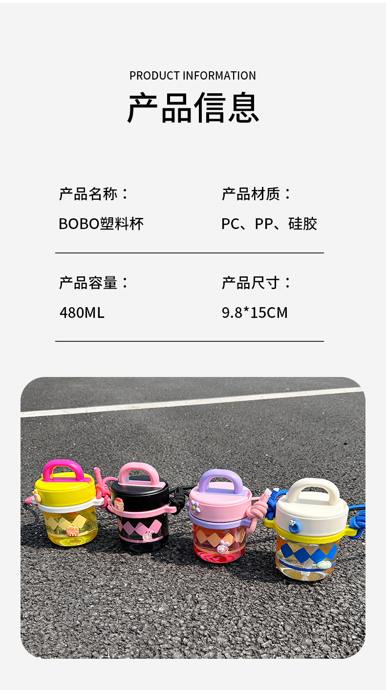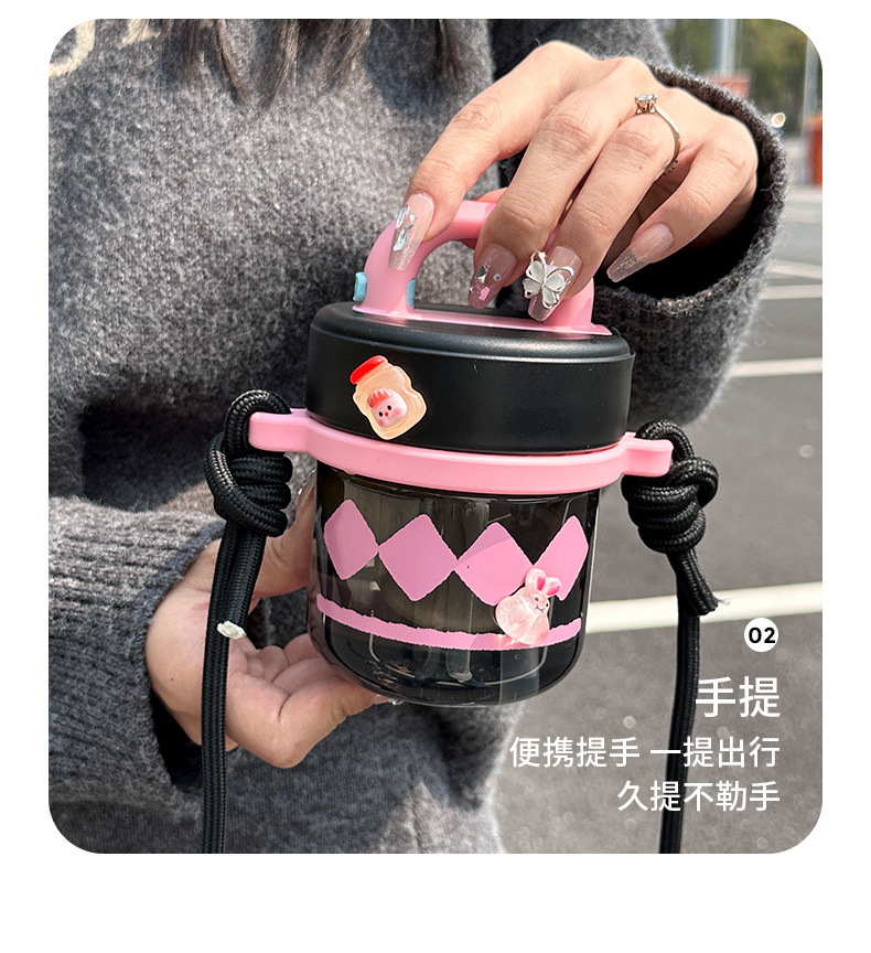 儿童水杯女生高颜值吸管塑料杯加厚可爱便携式学生耐高温耐水壶