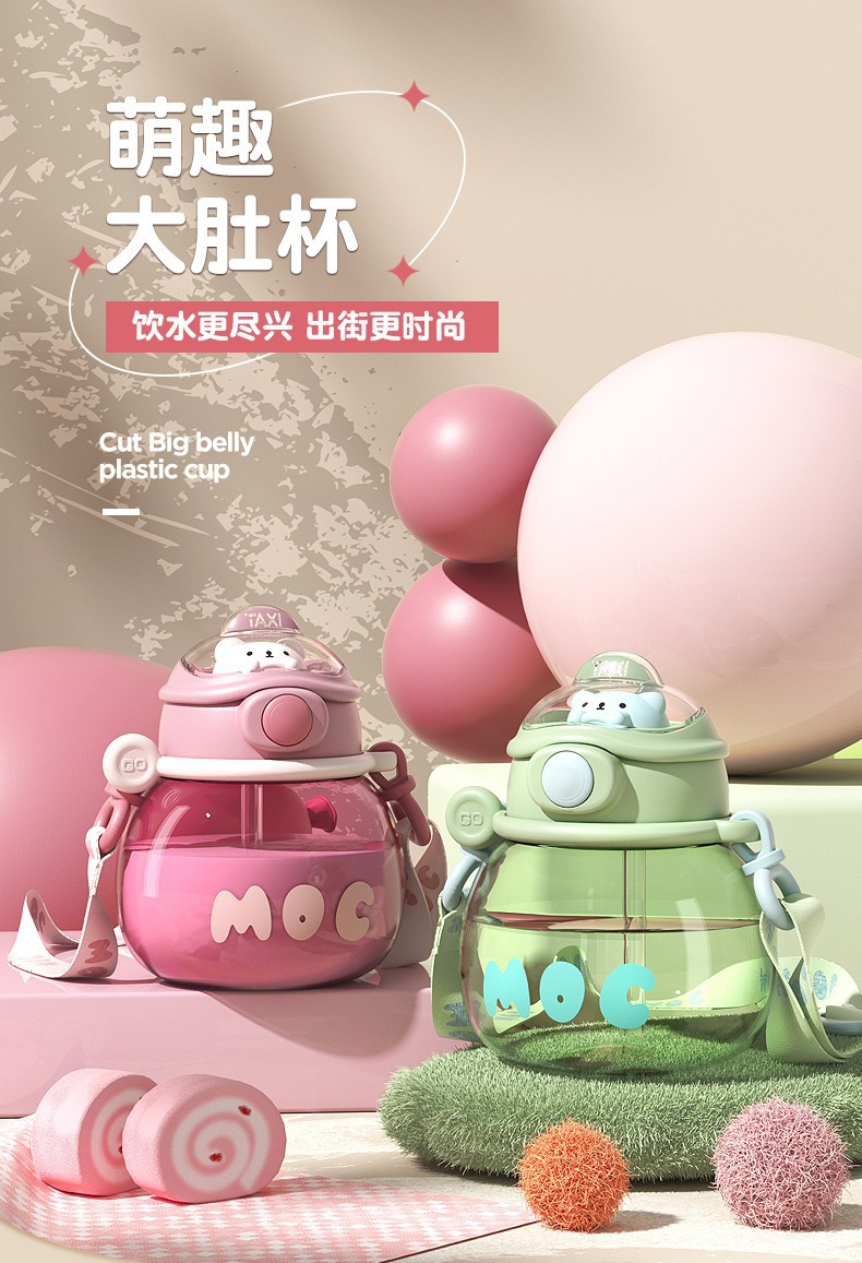 可爱儿童大肚杯女生水杯夏季耐高温高颜值防摔网红便携塑料杯子
