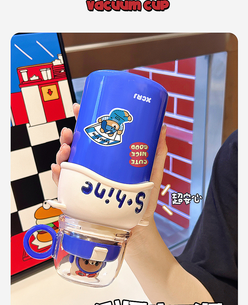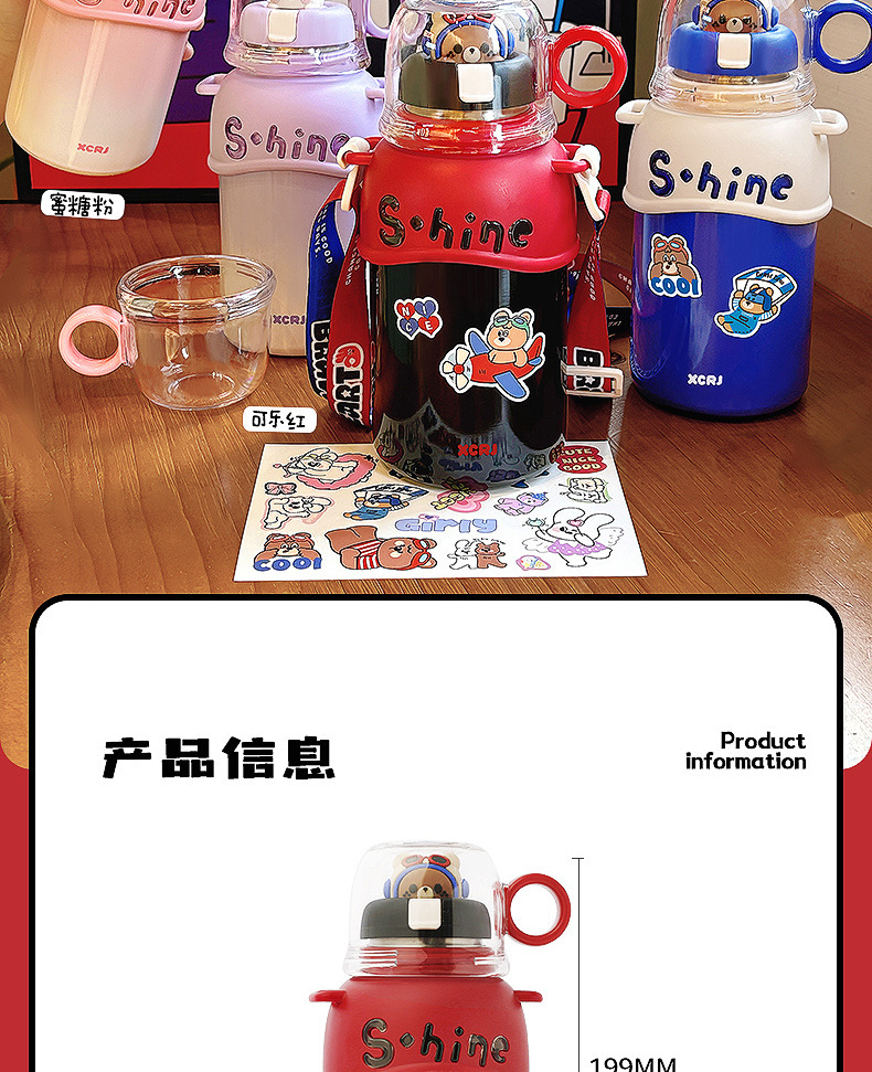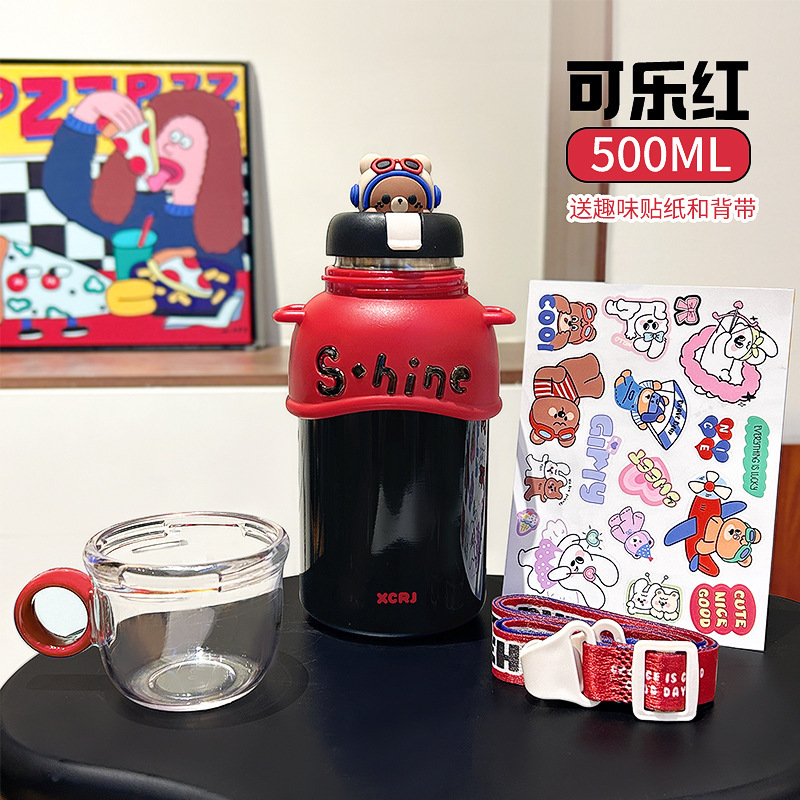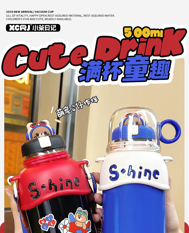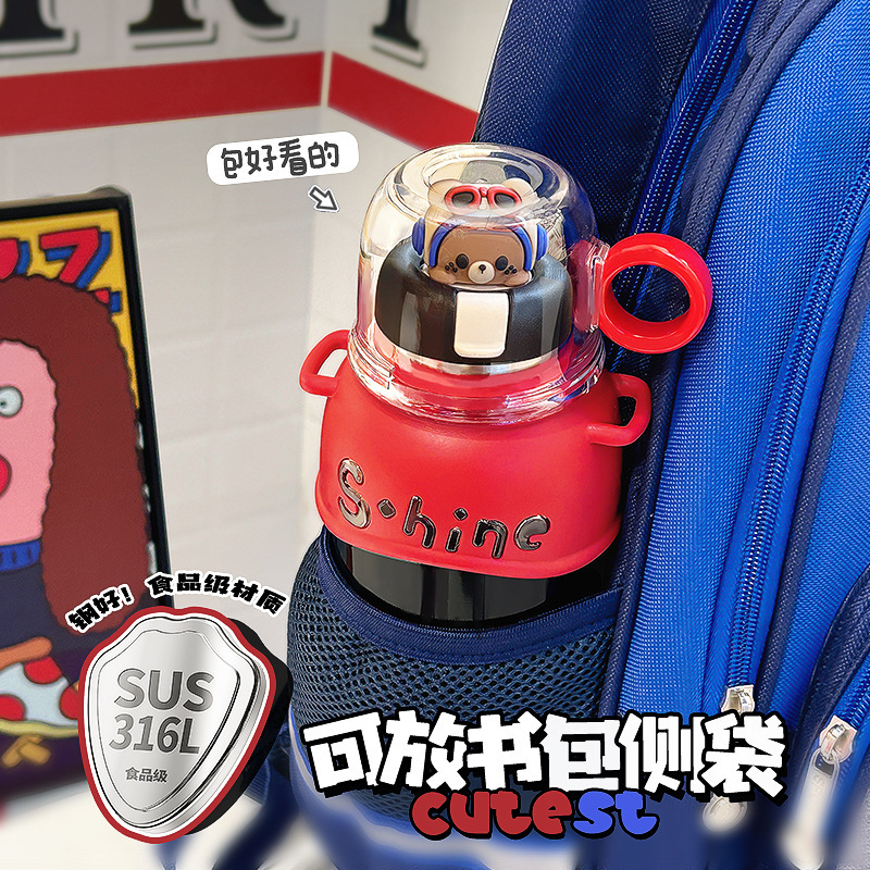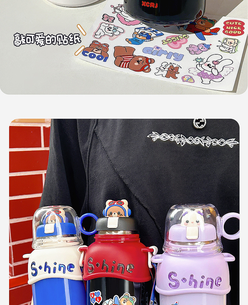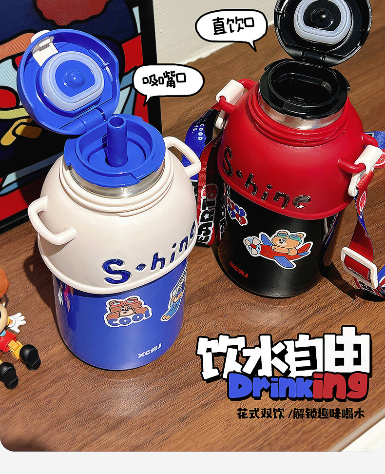 2024新款儿童保温杯大容量杯子高颜值双饮杯可爱卡通水杯带吸管