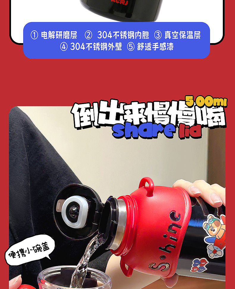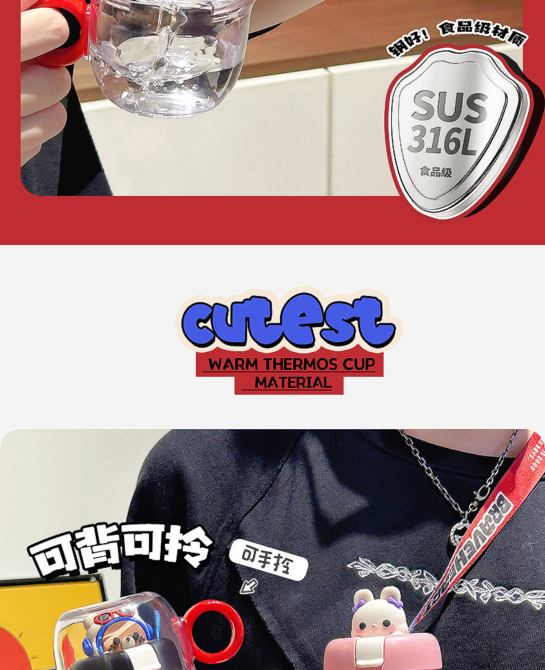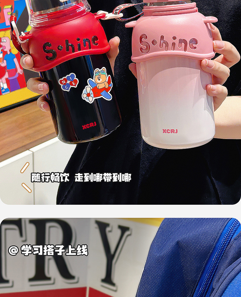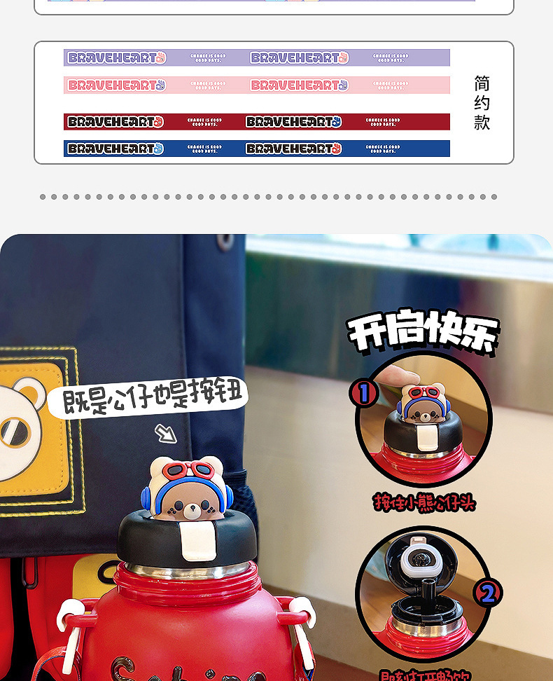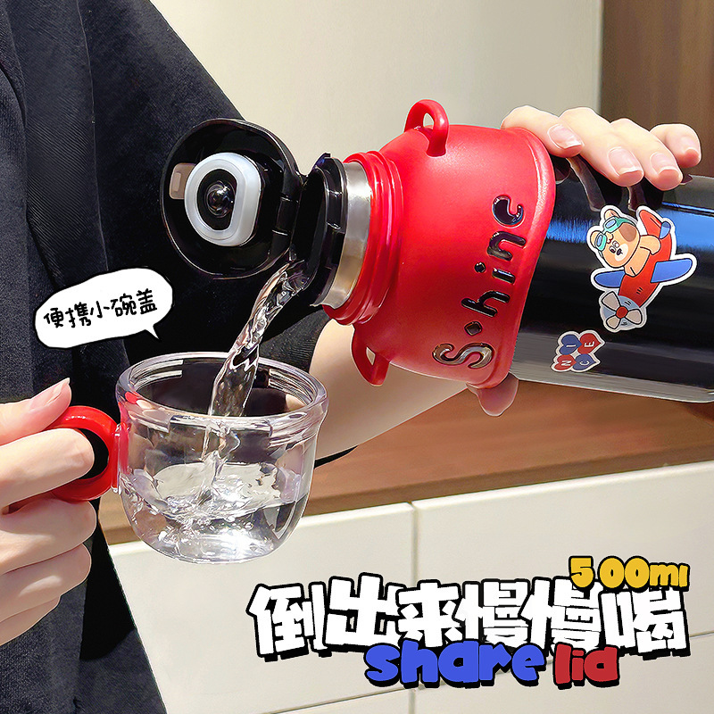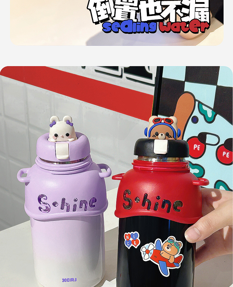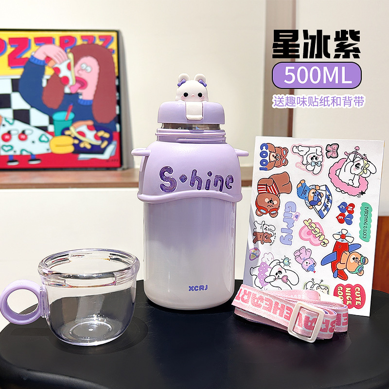 2024新款儿童保温杯大容量杯子高颜值双饮杯可爱卡通水杯带吸管