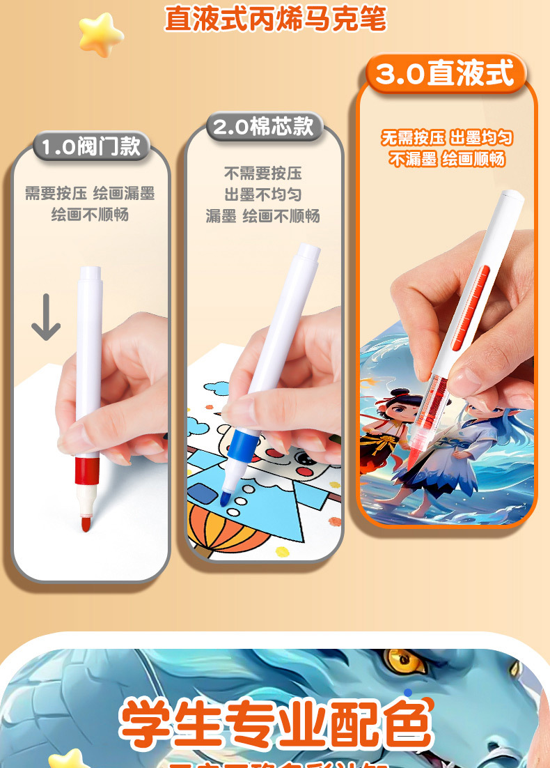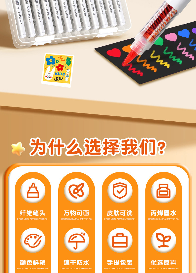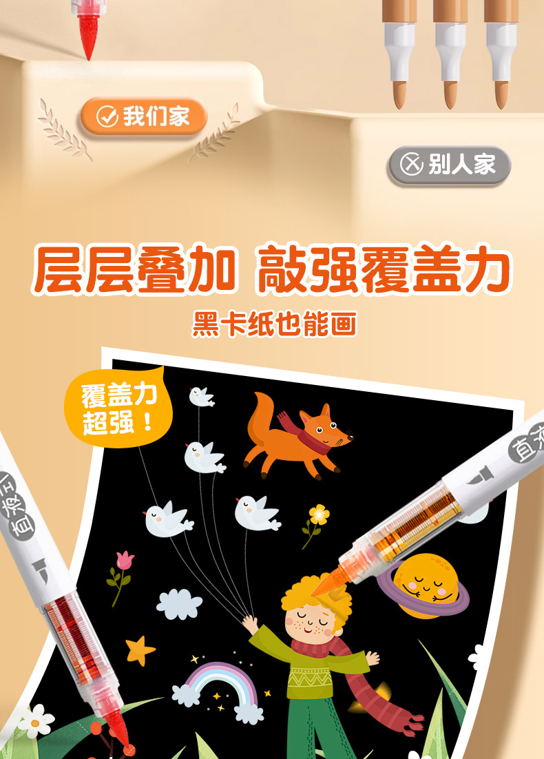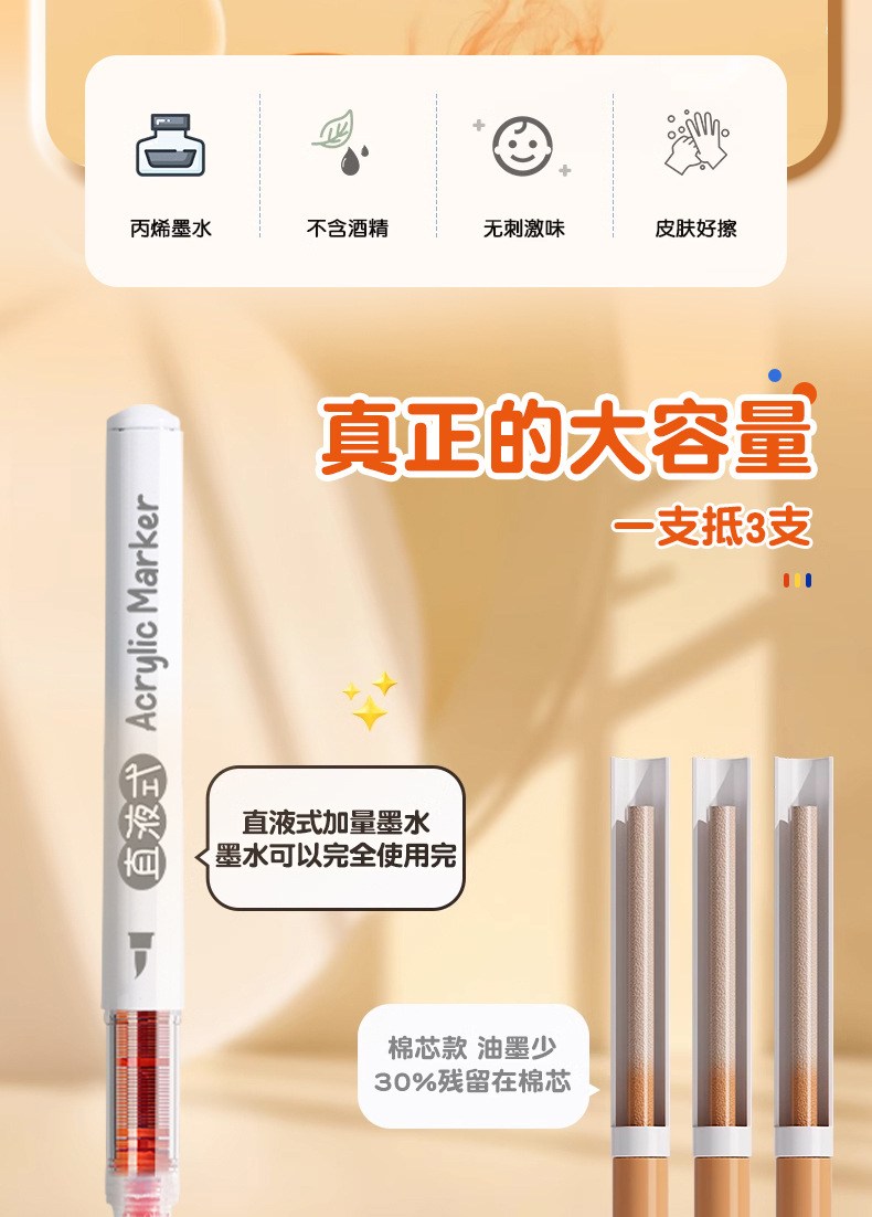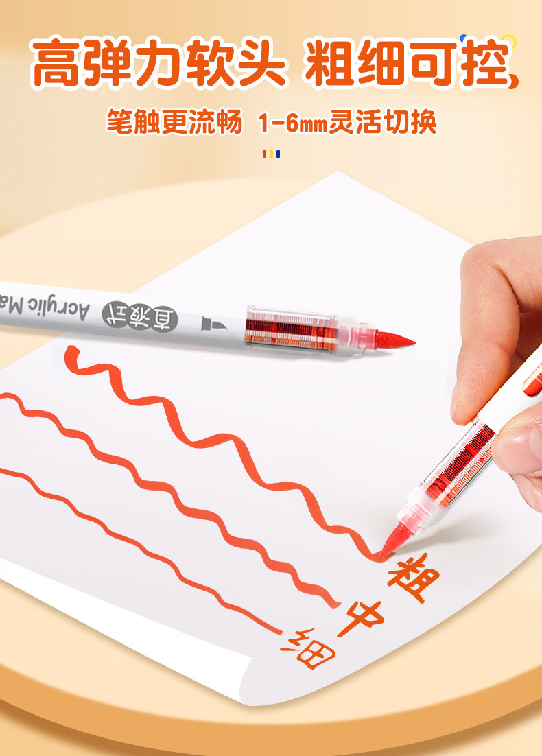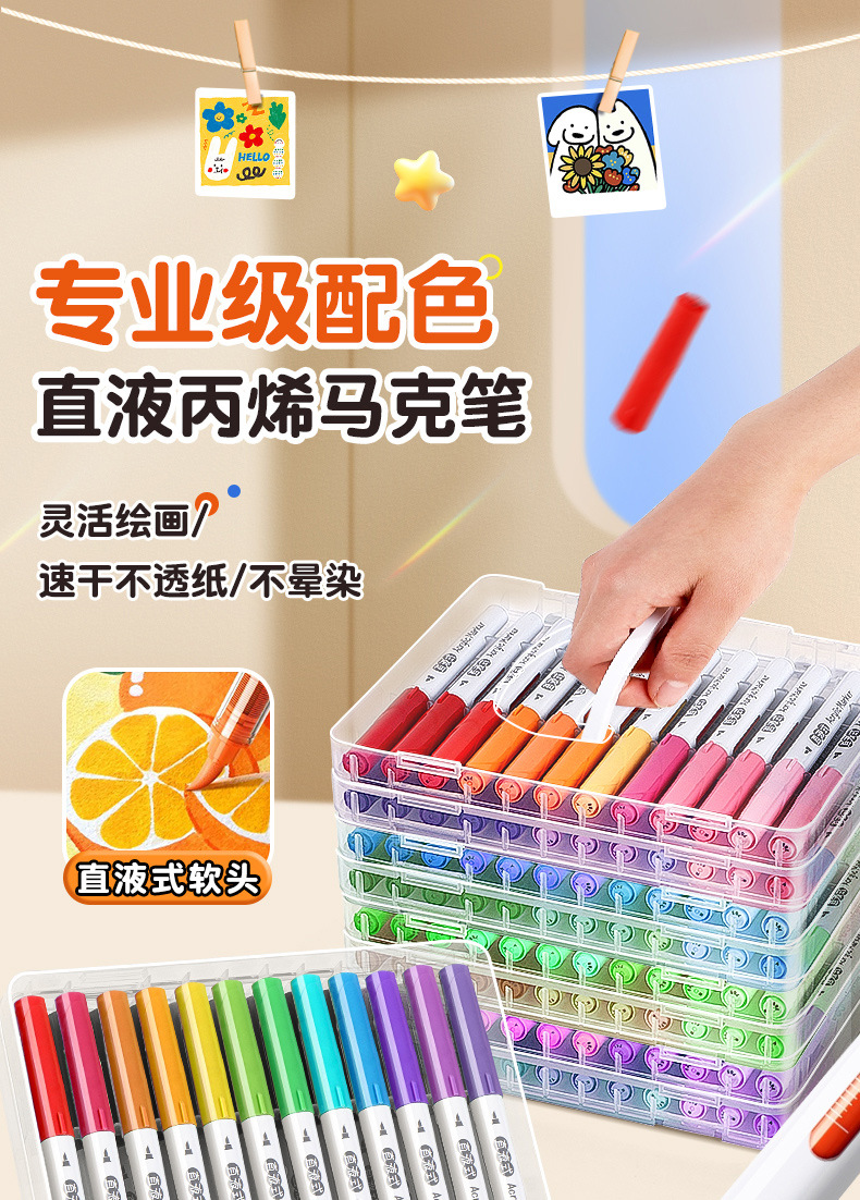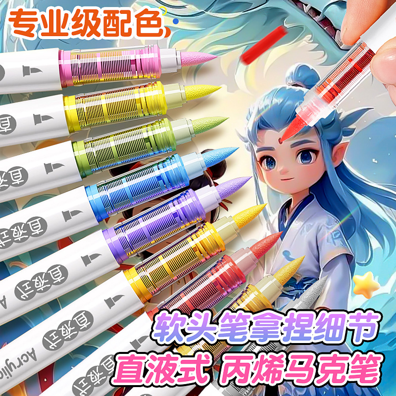 大创直液式软头丙烯马克笔学生美术画画专用强覆盖皮肤可水洗速干