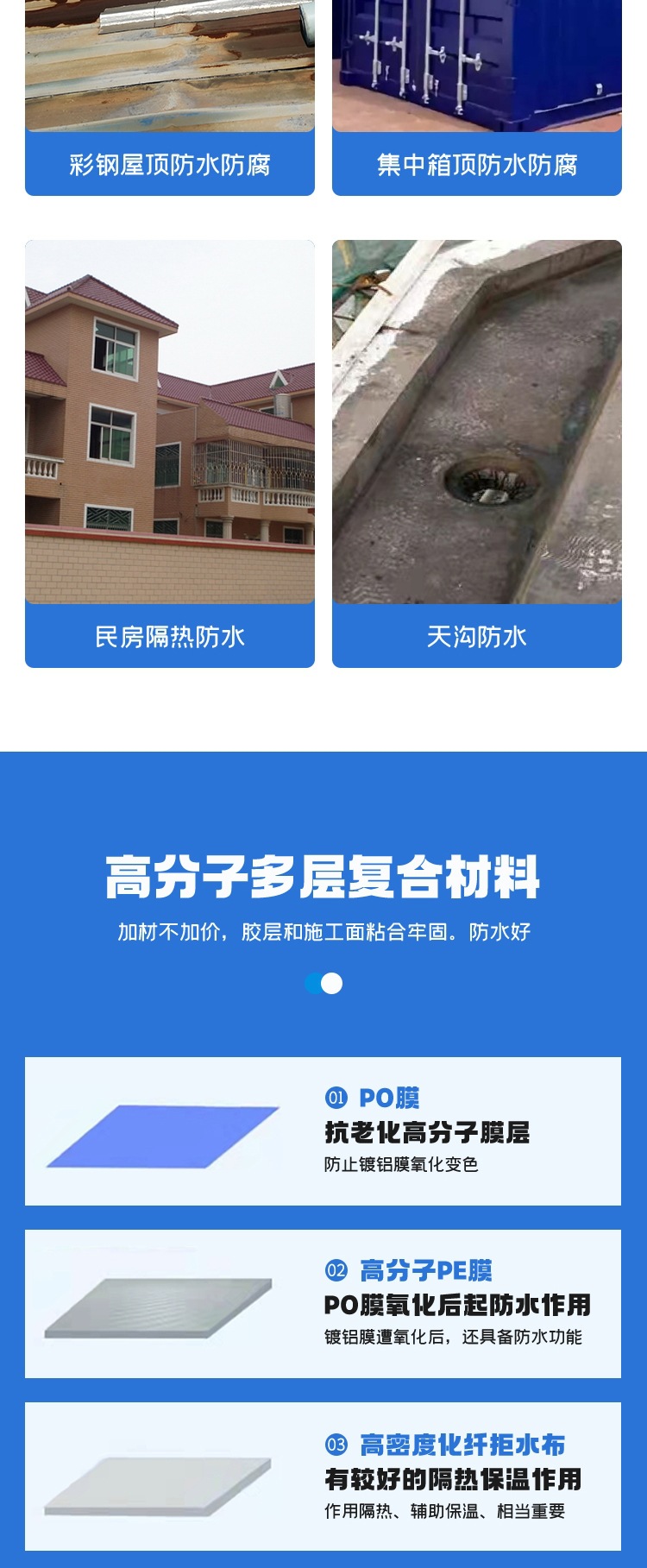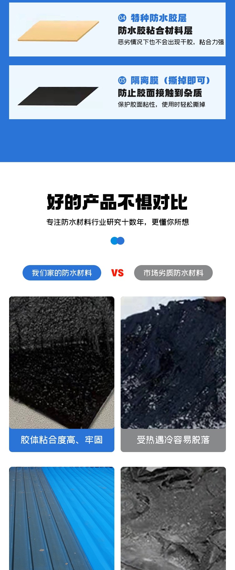 彩钢瓦防水自粘卷材隔热铁皮补漏贴屋顶材料强力维修屋面胶带