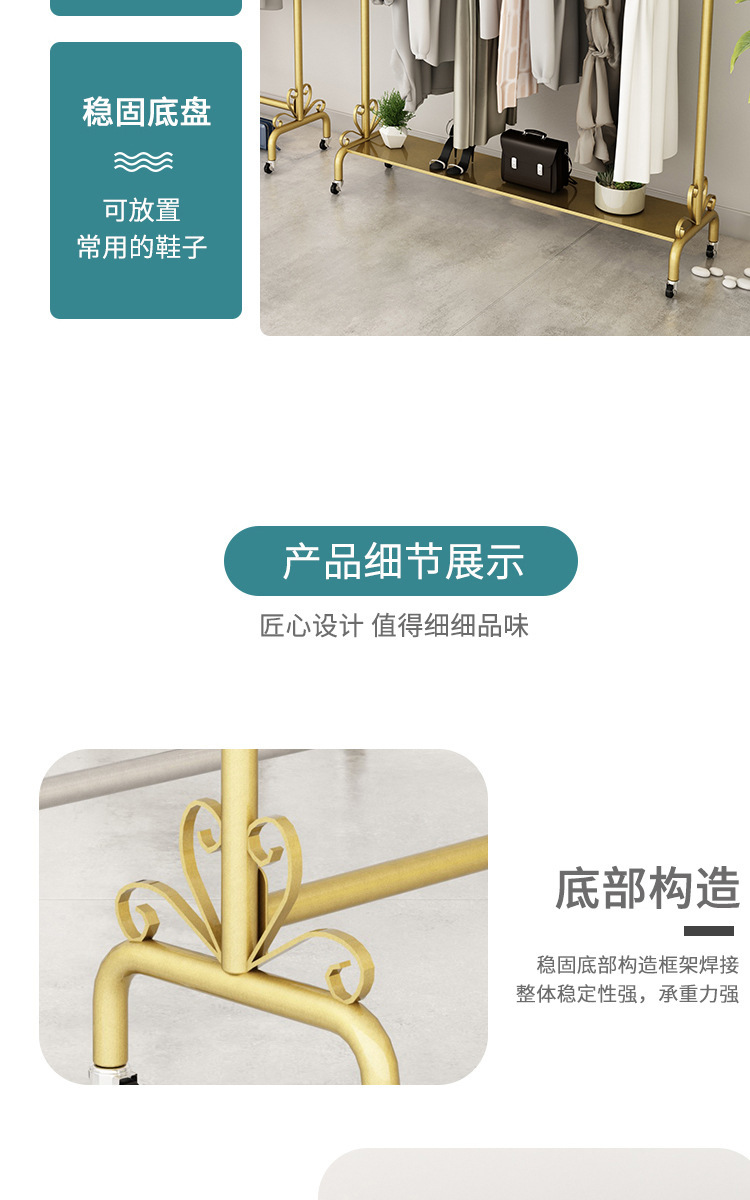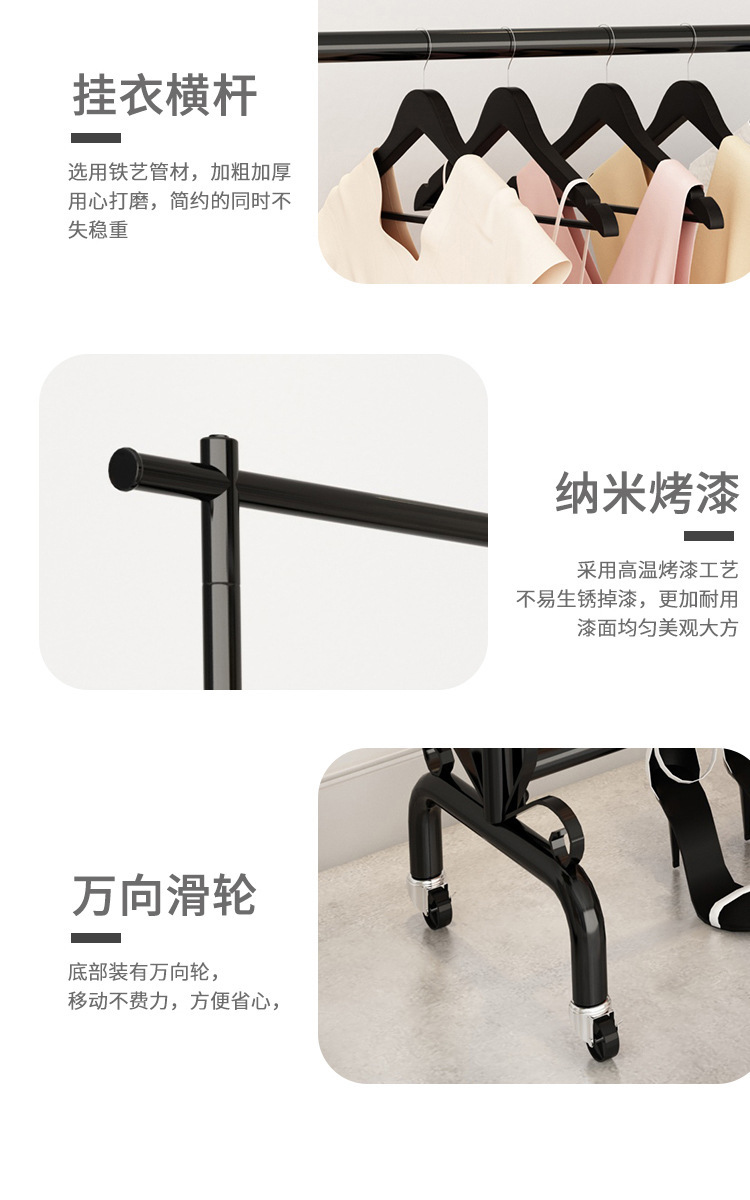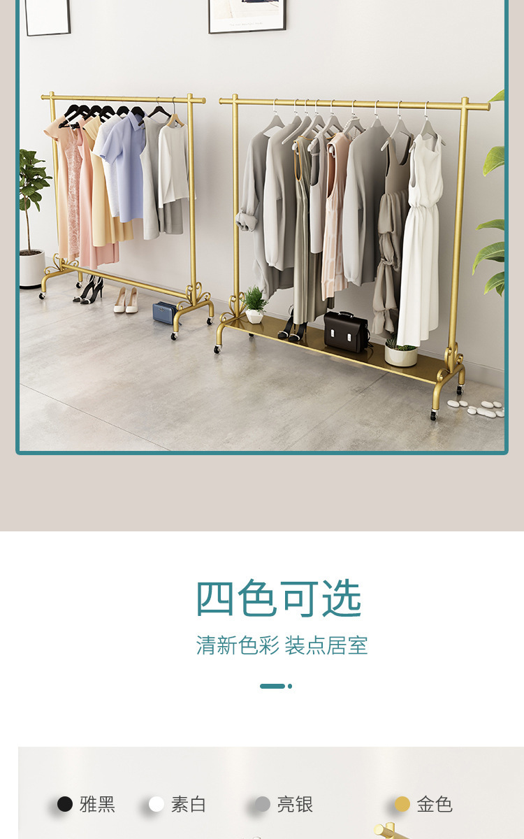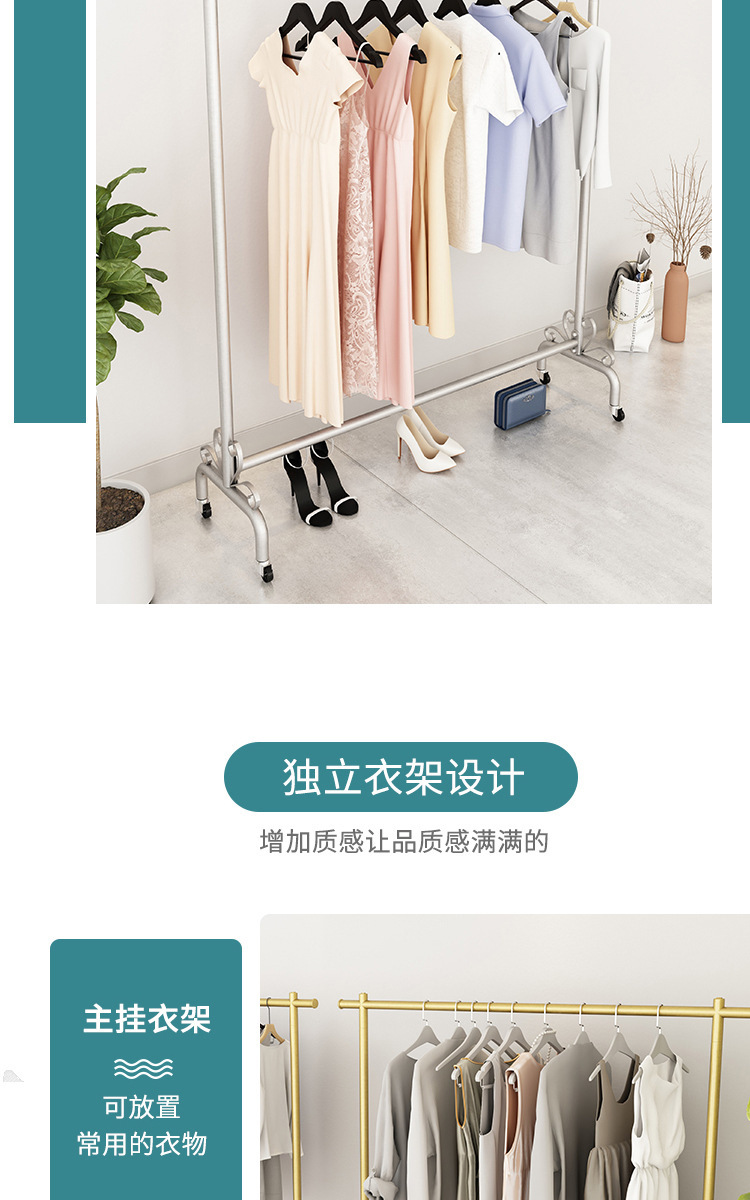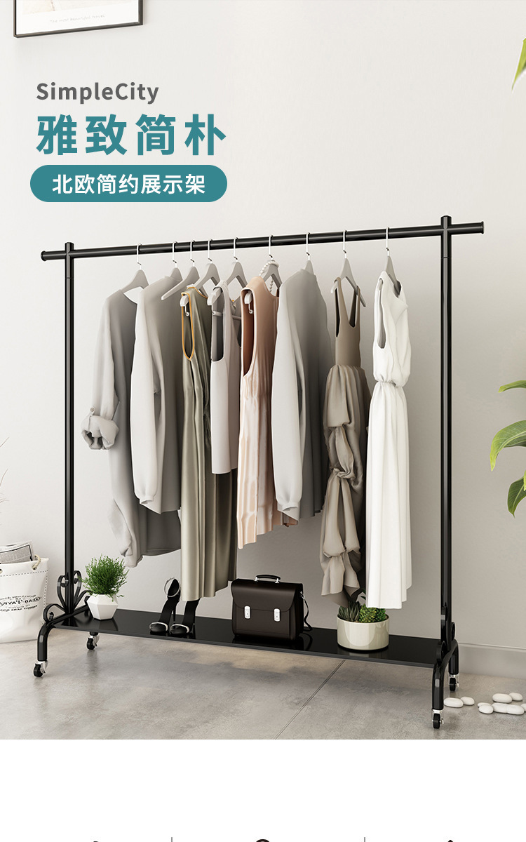 带轮子服装店展示架落地式挂衣杆衣服架女装店货架鞋包架晾衣架