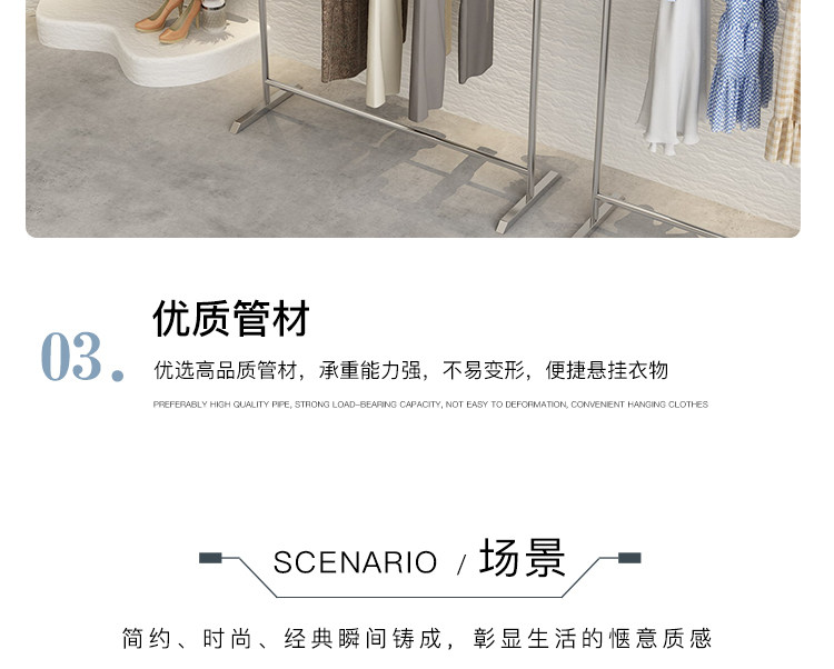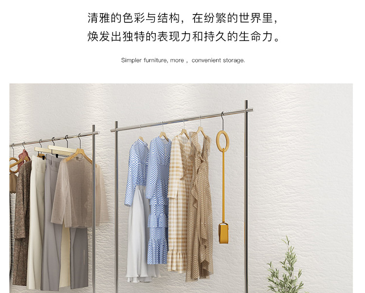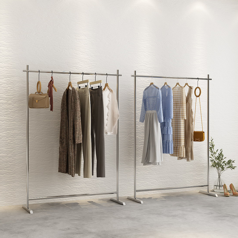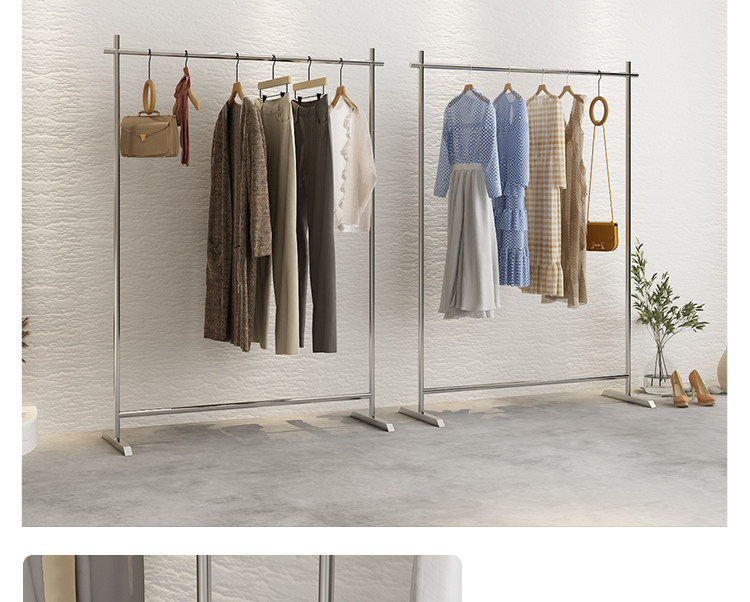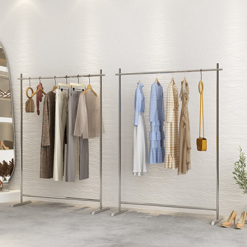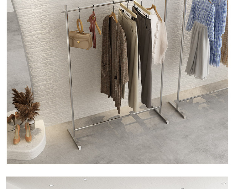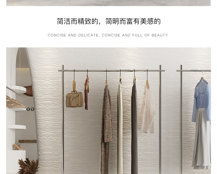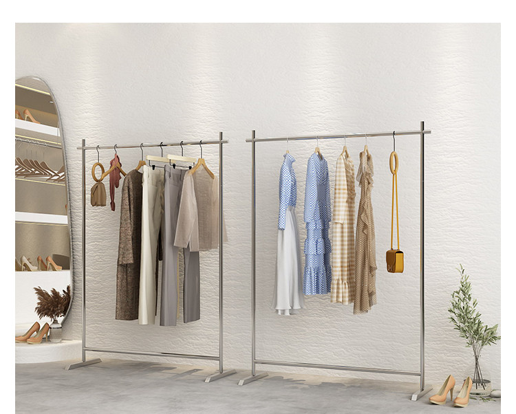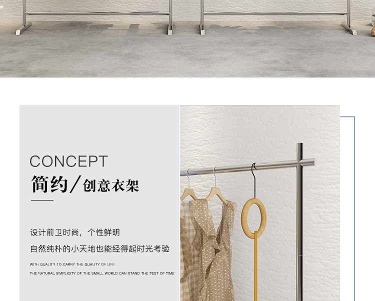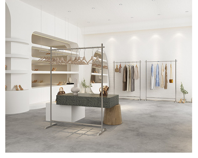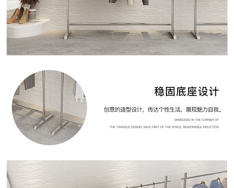 服装店展示架陈列架不锈钢落地式中岛童装女装店拉丝银货架挂衣杆